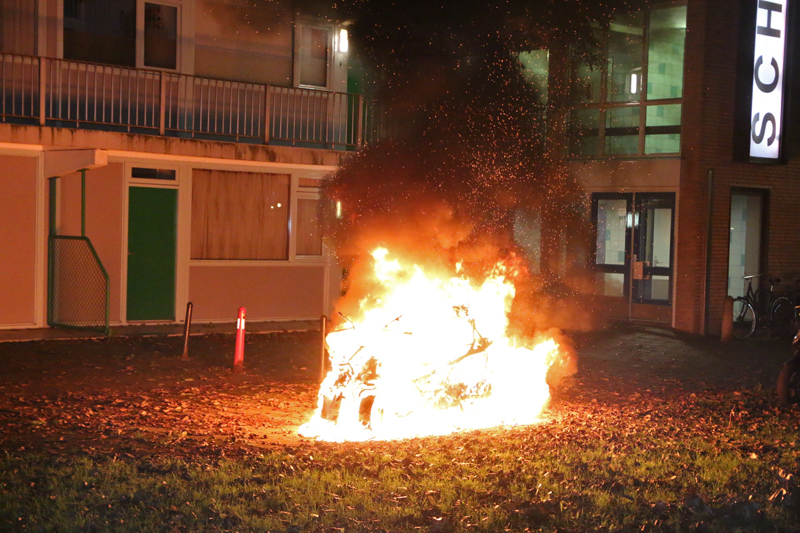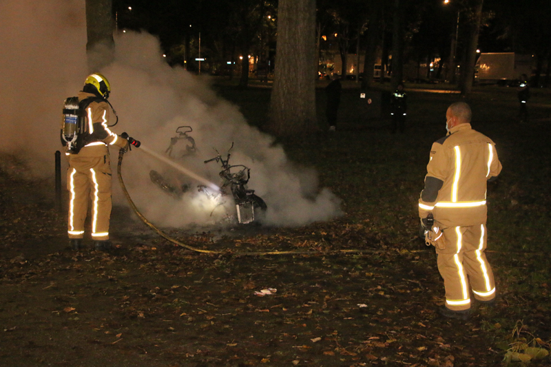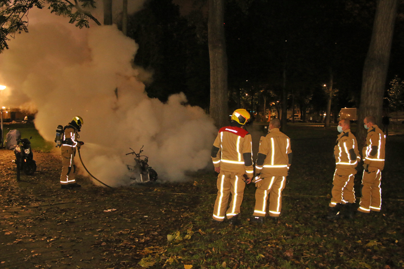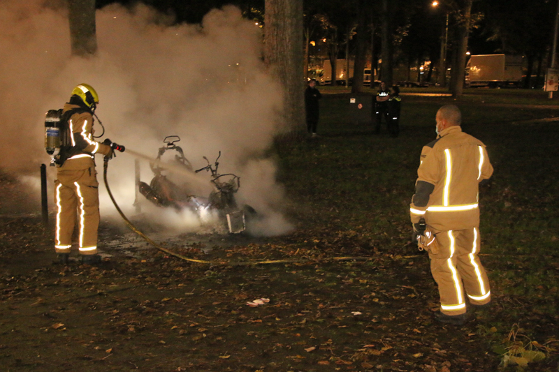 Delft – Aan de Schubertlaan is in de nacht van zondag op maandag 19 oktober een MP3 (motor) in vlammen opgegaan. De bewoners werden wakker van flinke knallen. Dit waren vermoedelijk de banden van de motor die klapten.