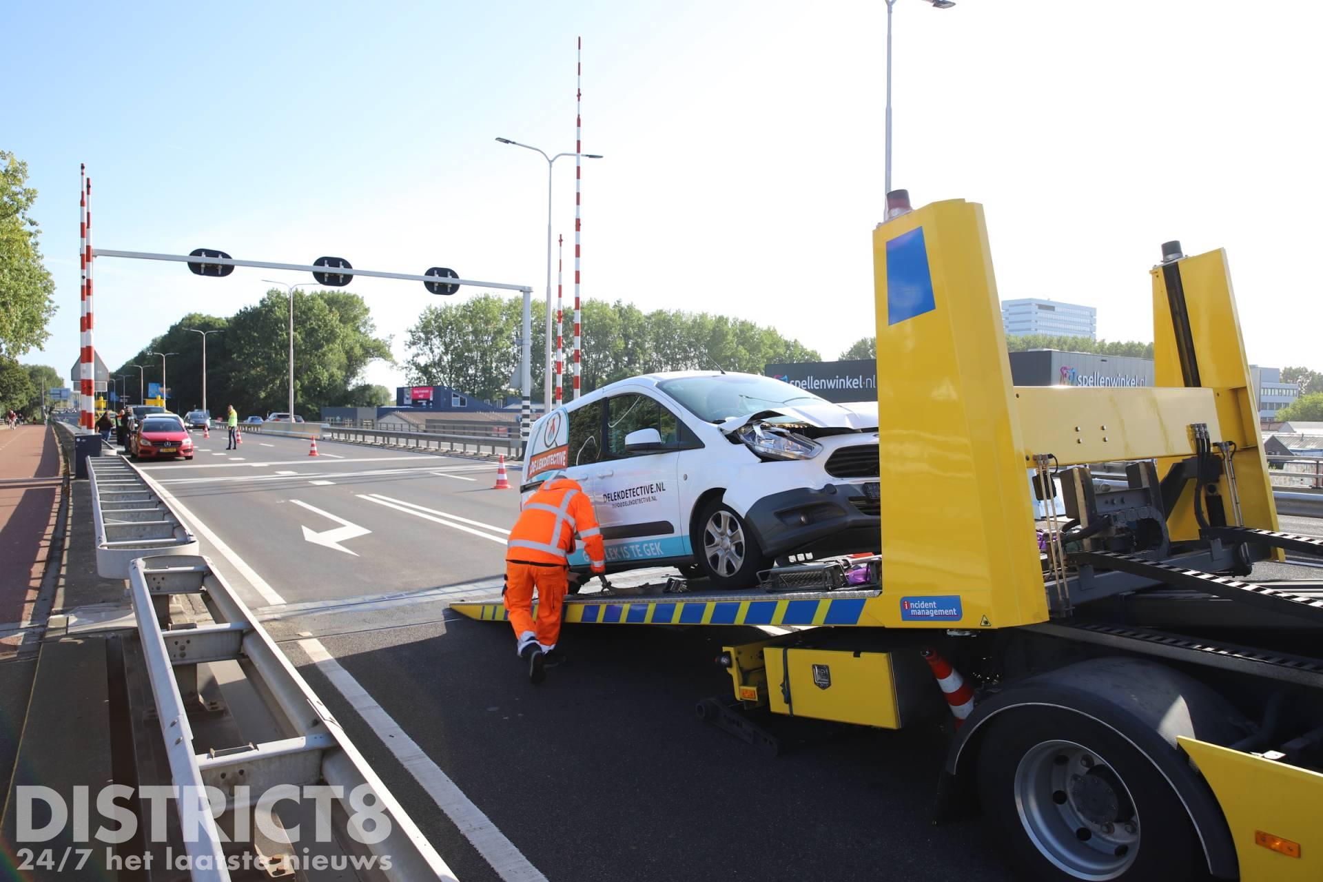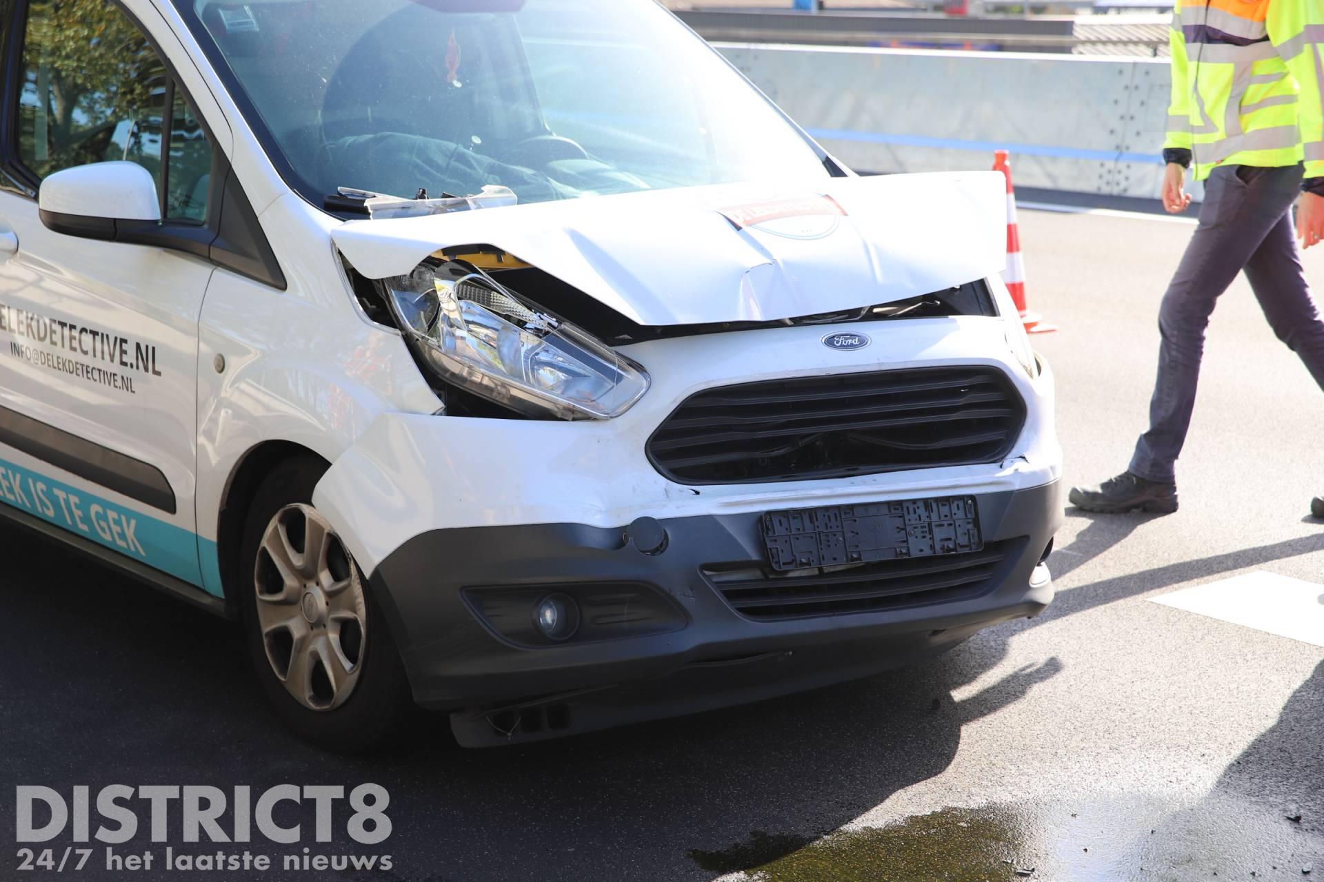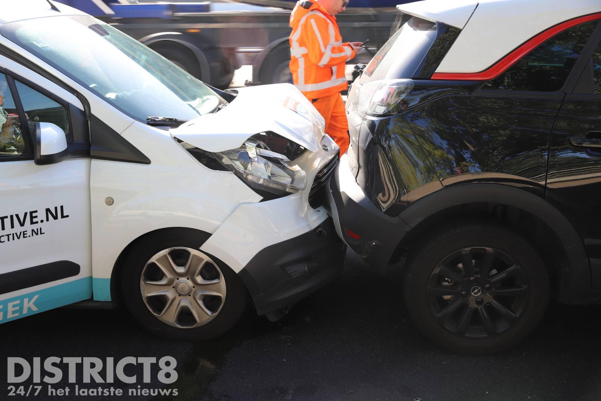 Een berger heeft een bedrijfsbusje met flinke schade afgevoerd. Zover bekend zijn er bij de aanrijding geen gewonden gevallen.