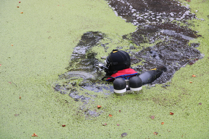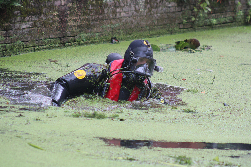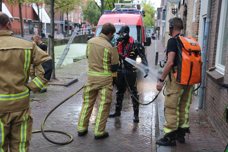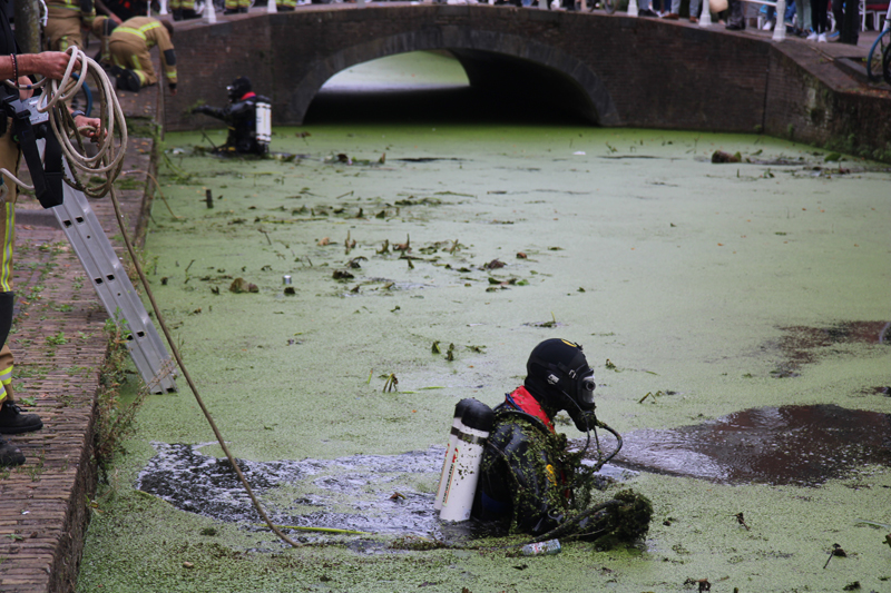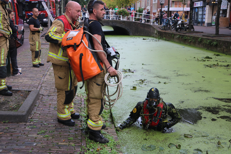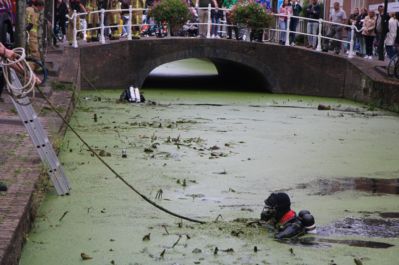 De duikactie van de brandweer trok veel bekijks van voorbijgangers.