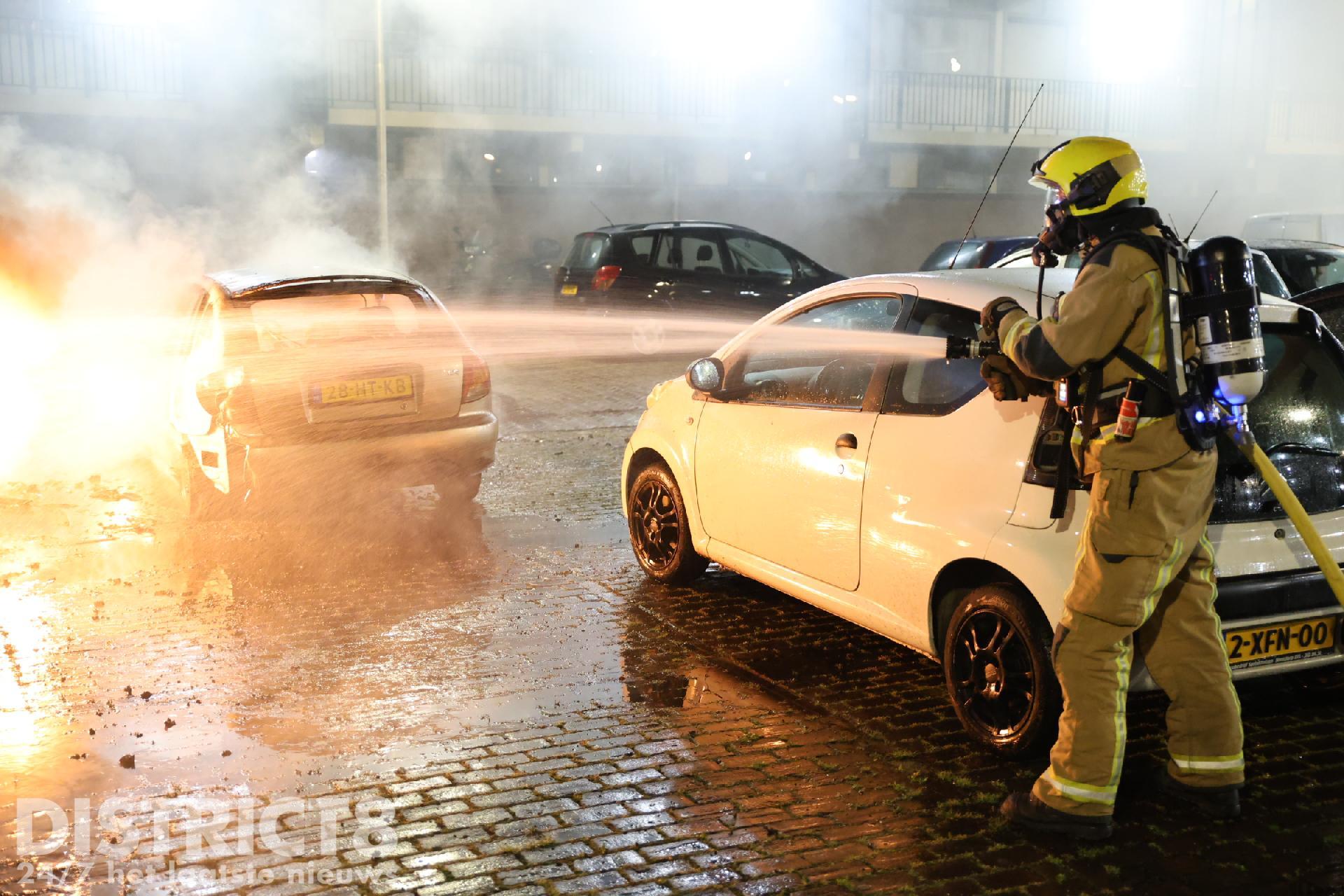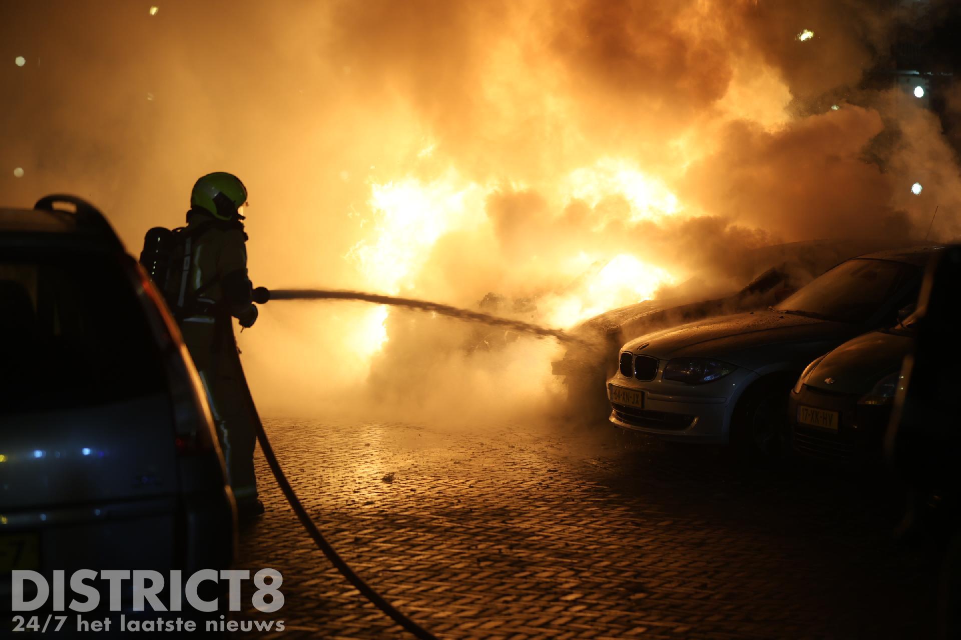 Bij aankomst van de brandweer stonden vier autos volledig in brand en werden omliggende autos al aangestraald. De brandweer is direct begonnen met het blussen van de vlammenzee, dit koste veel bluswater en tijd. Tijdens het blussen werden op de motorkap van een auto op de parkeerplaats twee grote flessen met brandstof en grote lonten aangetroffen. De brandweer heeft gelukkig kunnen voorkomen dat de vlammen deze flessen zouden bereiken met alle gevolgen van dien.