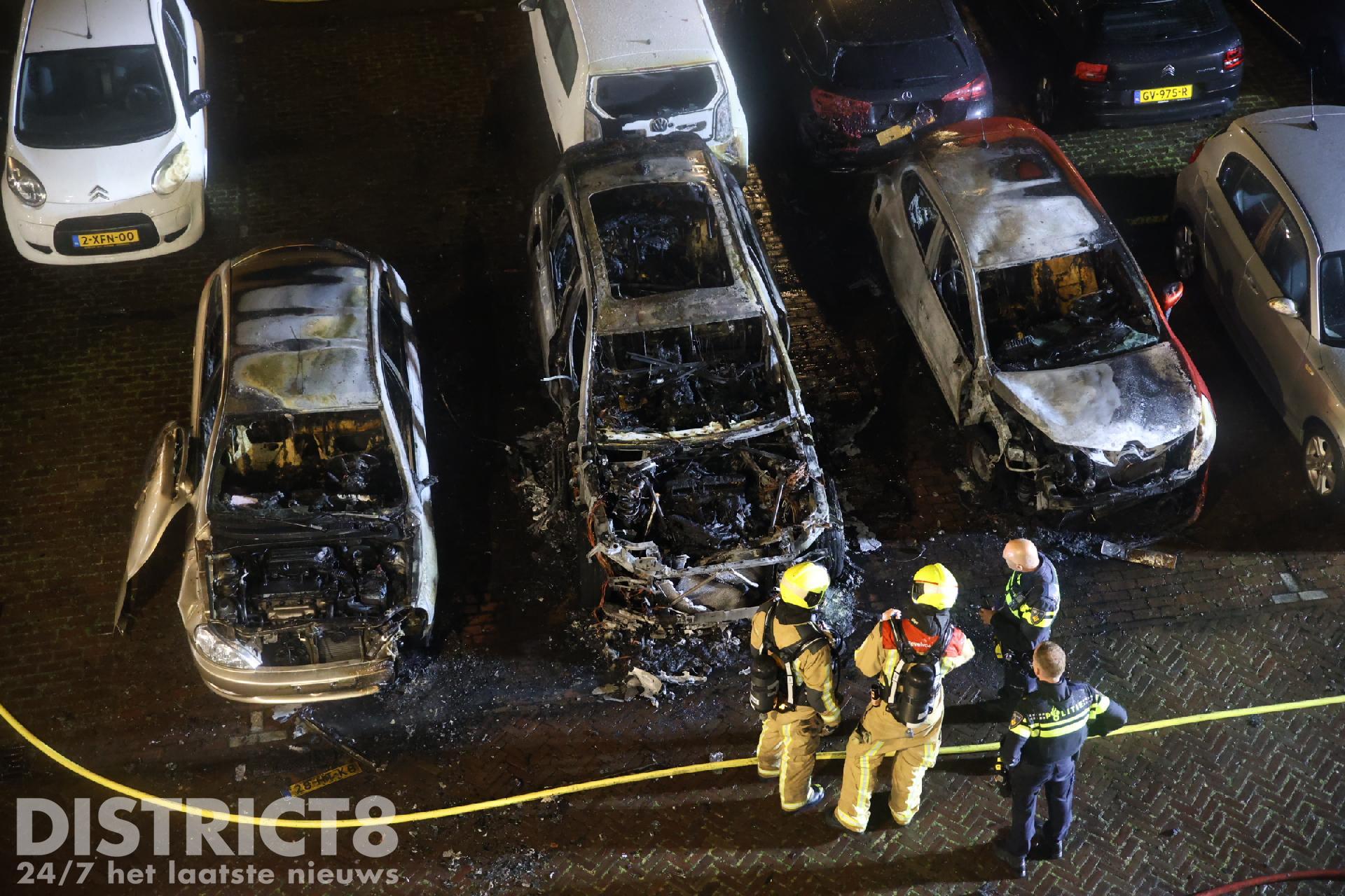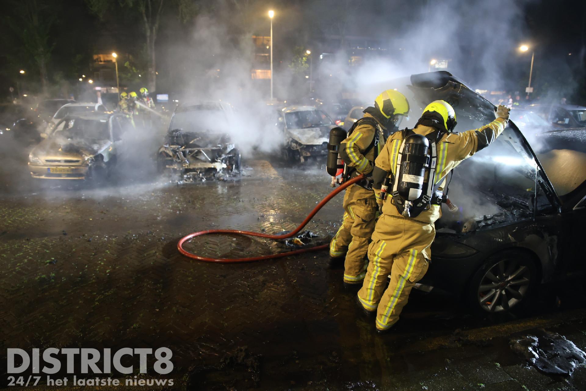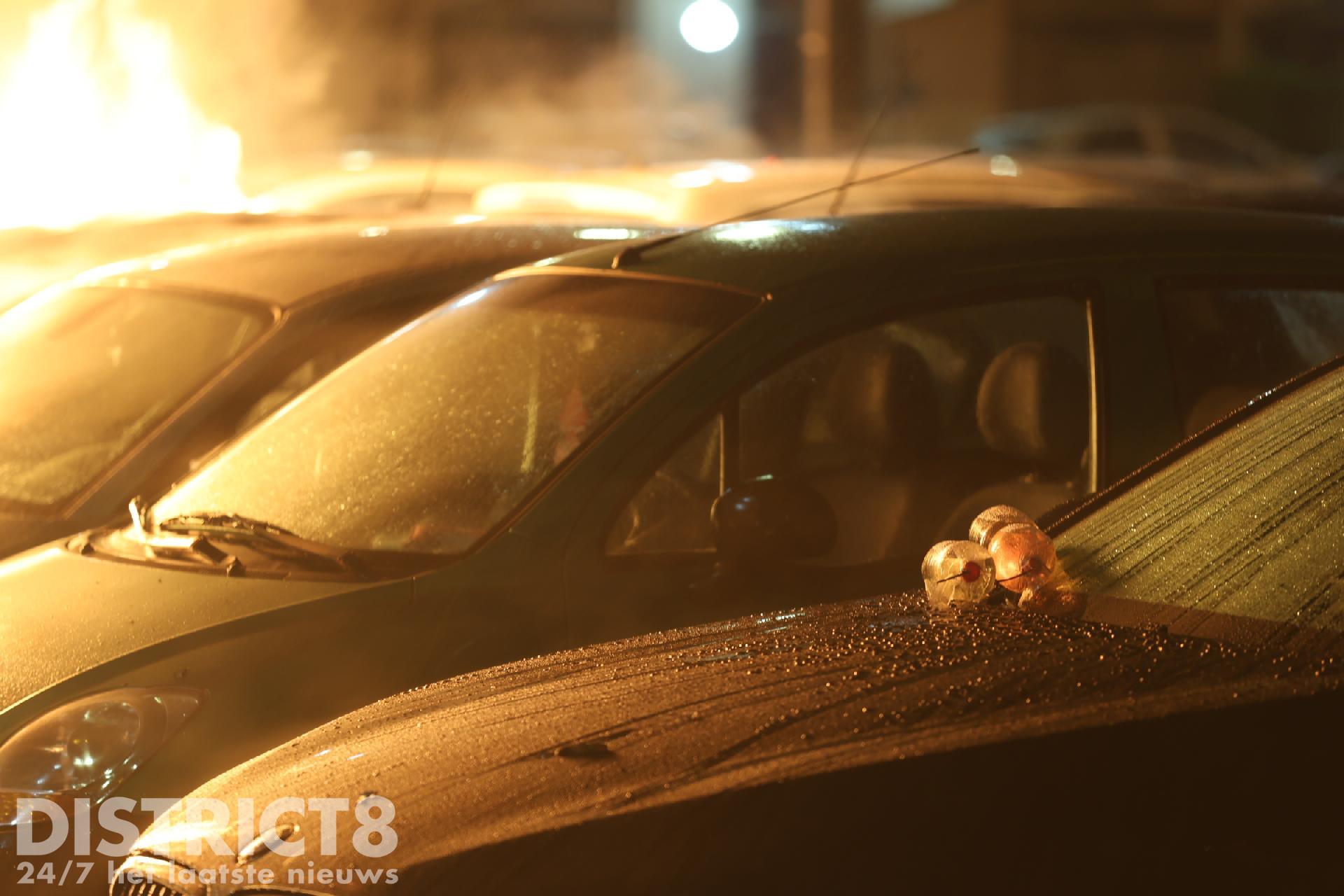 Inmiddels stonden tientallen bewoners en auto-eigenaren geëmotioneerd toe te kijken hoe de brandweer alle brandende voertuigen aan het blussen waren, toen werd ook de enorme ravage zichtbaar op de parkeerplaats. In totaal brandde vier voertuigen volledig uit op liepen vijf andere voertuigen enorme brandschade op. De politie heeft de flessen brandstof veiliggesteld voor nader onderzoek, hierbij worden ook getuigen gehoord.