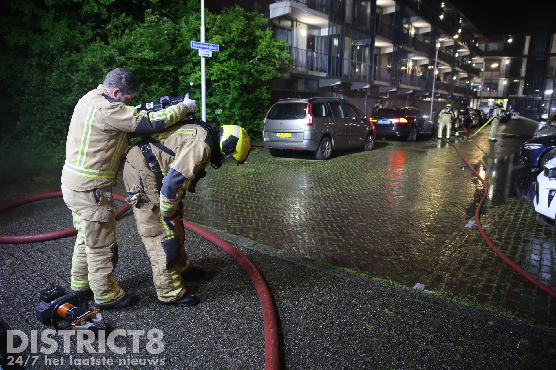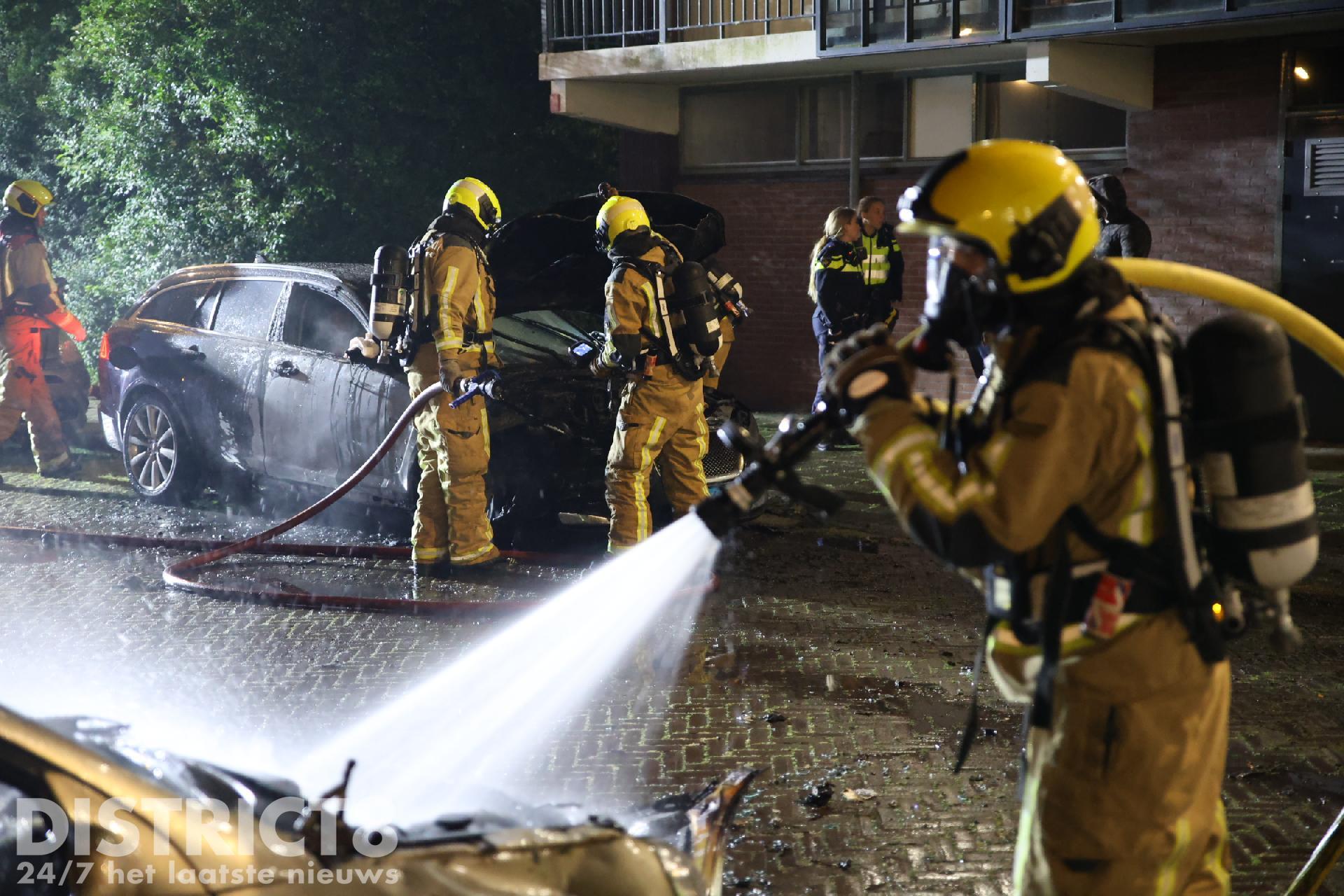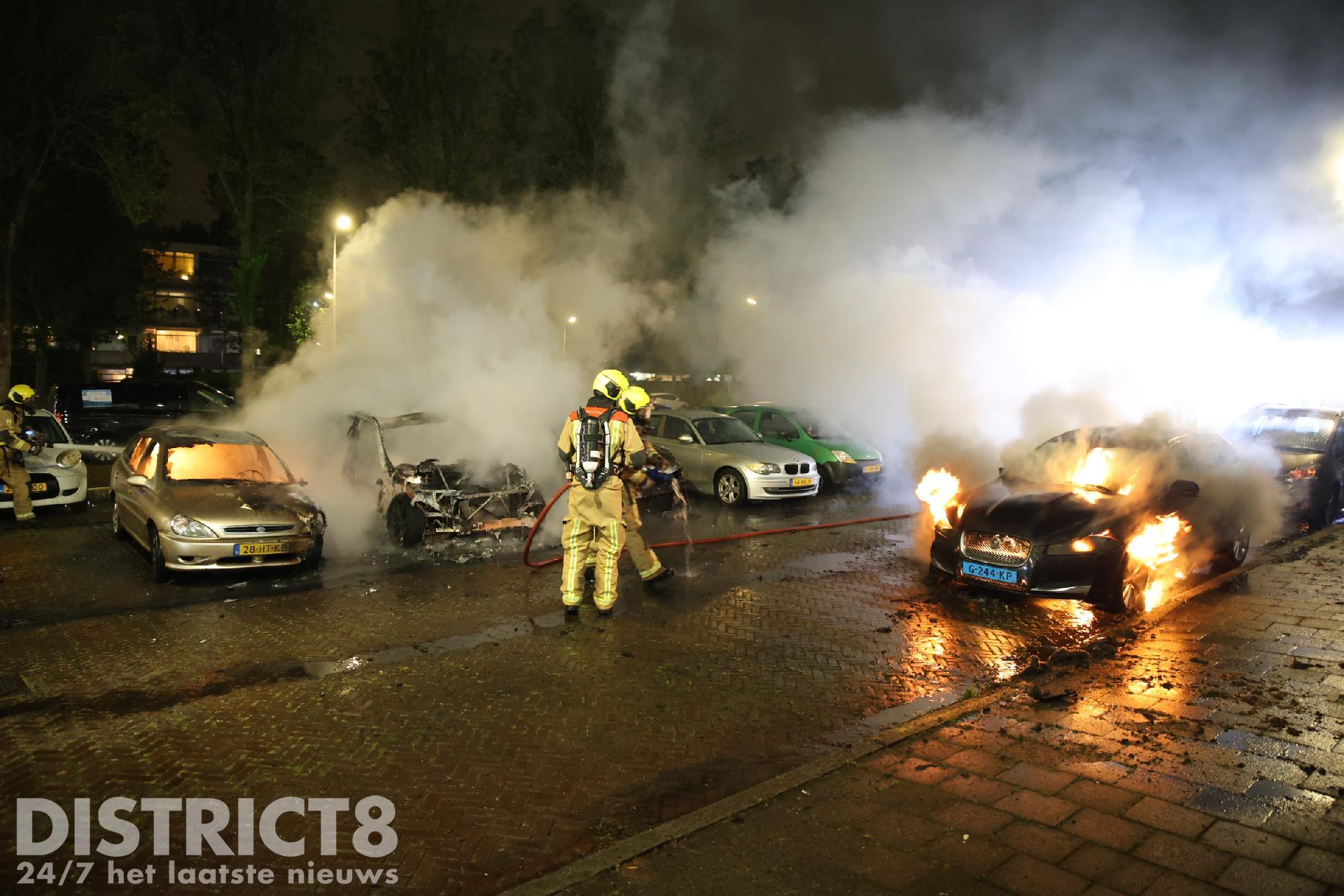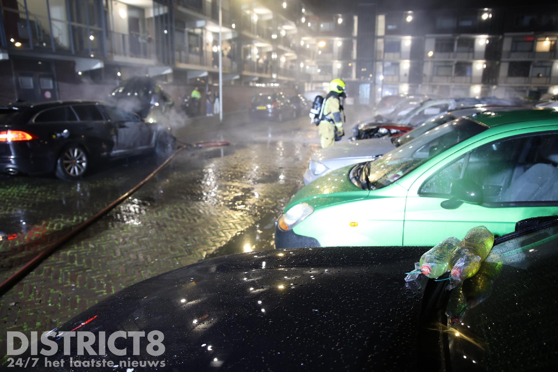 Inmiddels stonden tientallen bewoners en auto-eigenaren geëmotioneerd toe te kijken hoe de brandweer alle brandende voertuigen aan het blussen waren, toen werd ook de enorme ravage zichtbaar op de parkeerplaats. In totaal brandde vier voertuigen volledig uit op liepen vijf andere voertuigen enorme brandschade op. De politie heeft de flessen brandstof veiliggesteld voor nader onderzoek, hierbij worden ook getuigen gehoord.