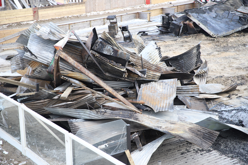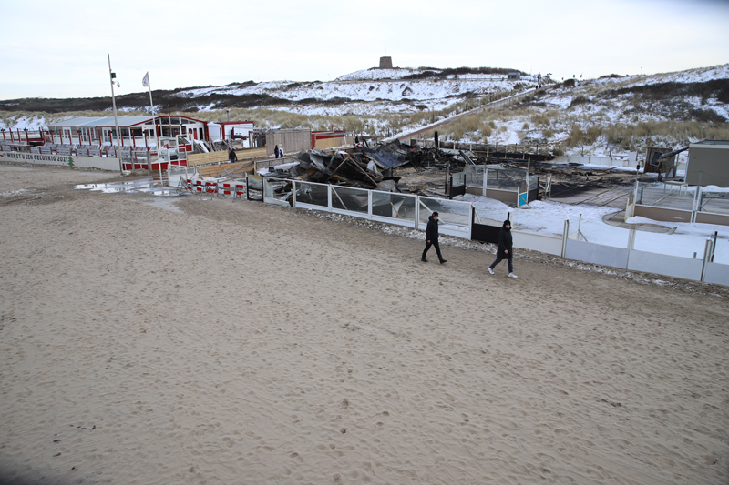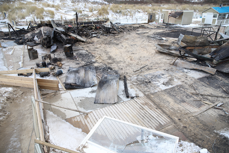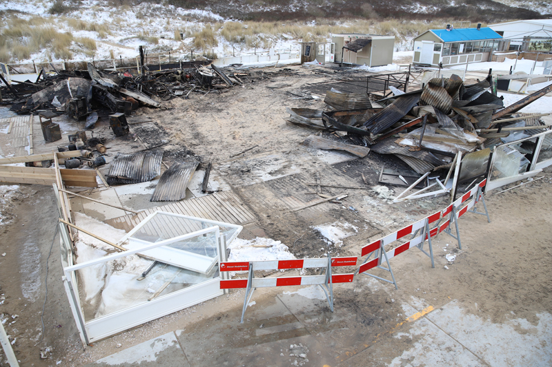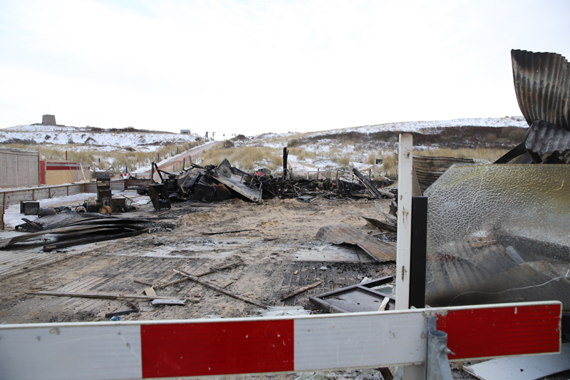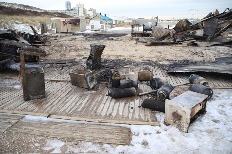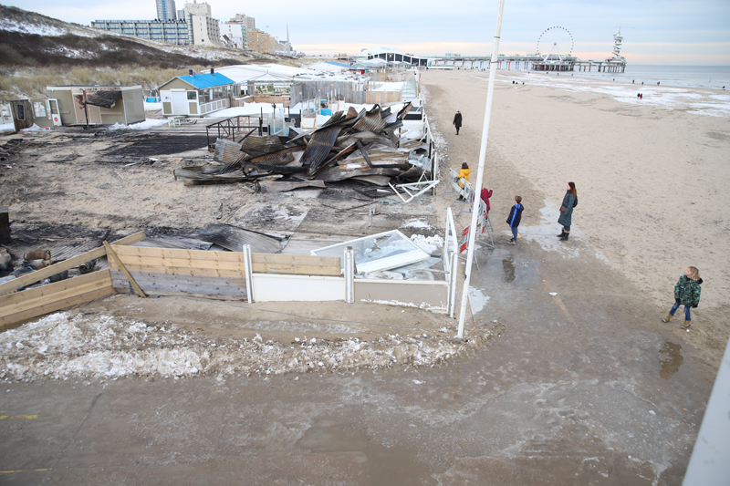 Scheveningen – Het strandpaviljoen dat vannacht in vlammen op ging is volledig verwoest. Met daglicht is de schade goed zichtbaar.