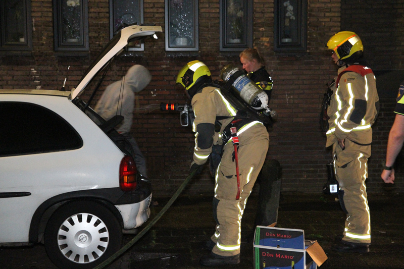 De brandweer was snel ter plaatse, maar kon niet voorkomen dat de auto van binnen zware schade opliep.