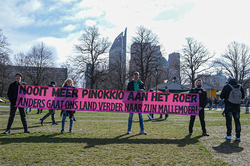 De actievoerders van de groep Nederland in Verzet demonstreren op het Malieveld tegen de huidige coronaregels en kabinet Rutte onder de noemer ‘Nederland in verzet, weg met dit kabinet’.