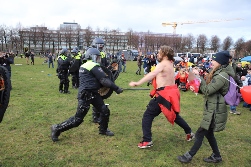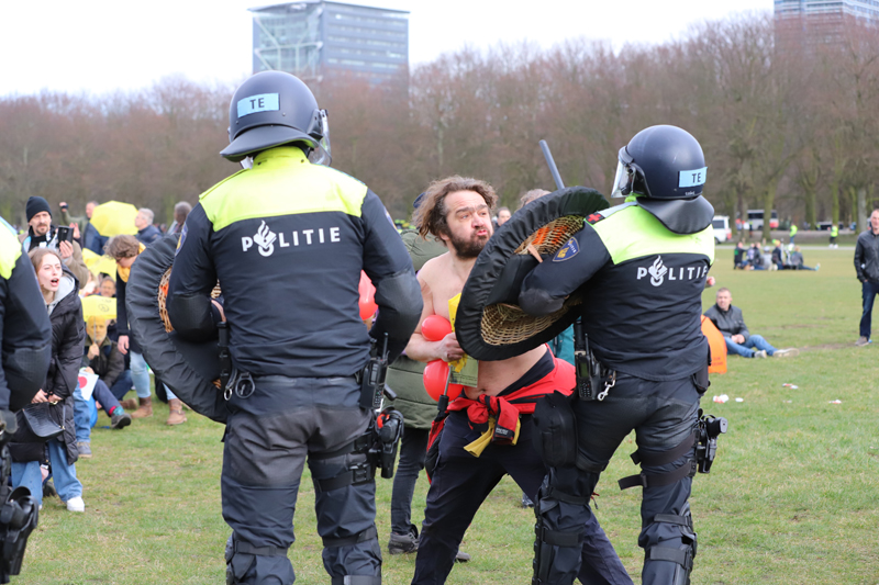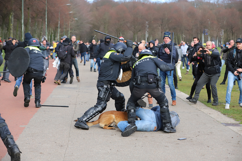 Nadat een groot deel van de demonstranten waren vertrokken werden meerdere personen aangehouden. Eén persoon werd aangehouden op het Malieveld nadat hij een bierflesje naar een politiehond gooide.