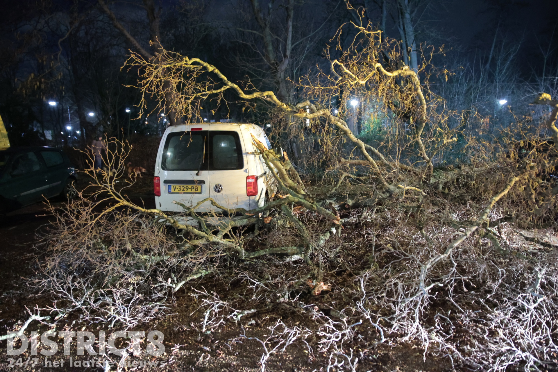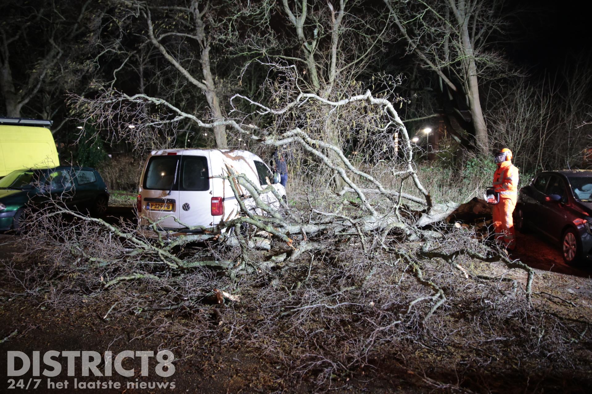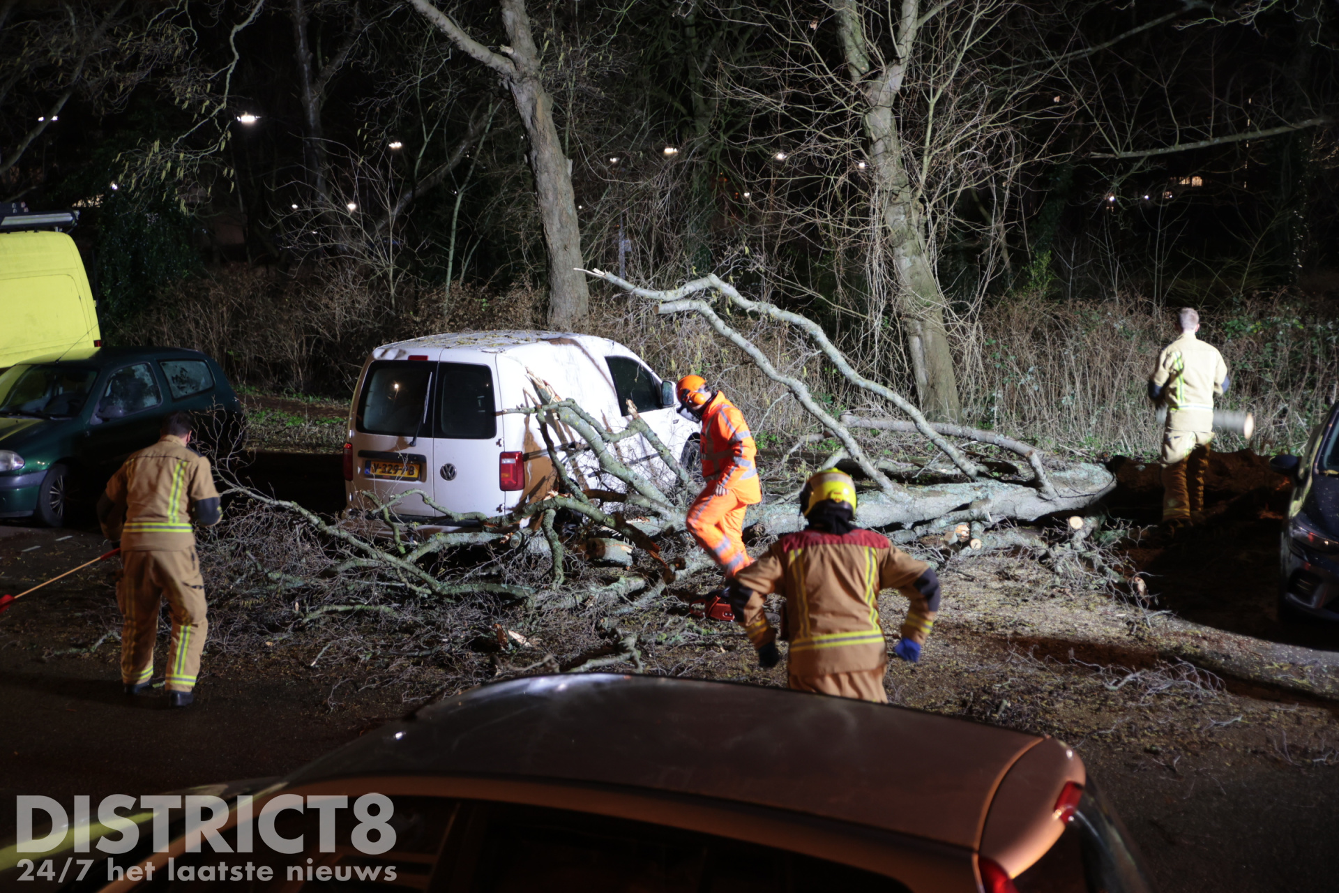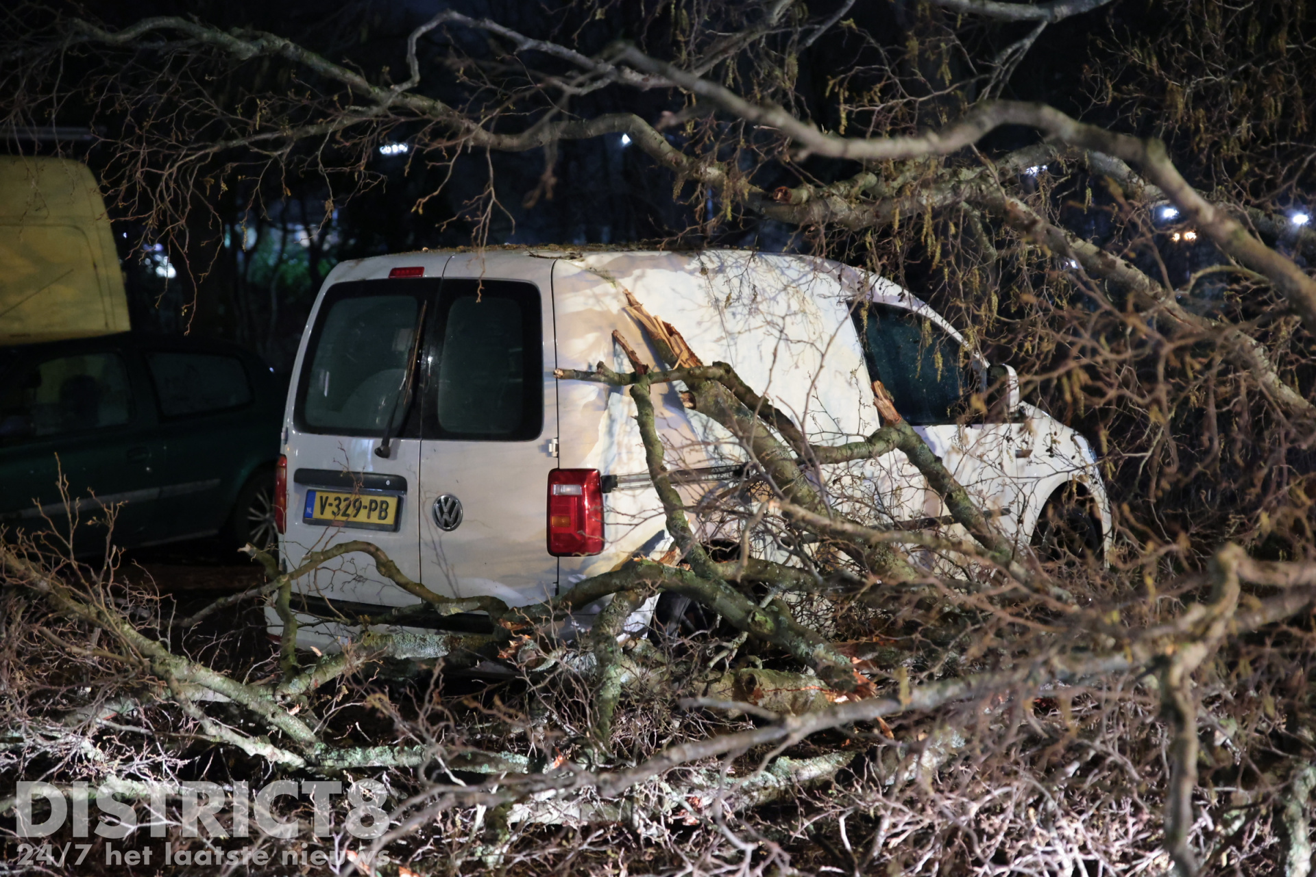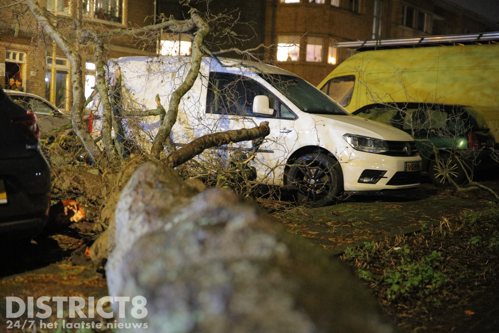 Omgevallen boom zorgt voor schade aan geparkeerd busje Walnootstraat Den Haag