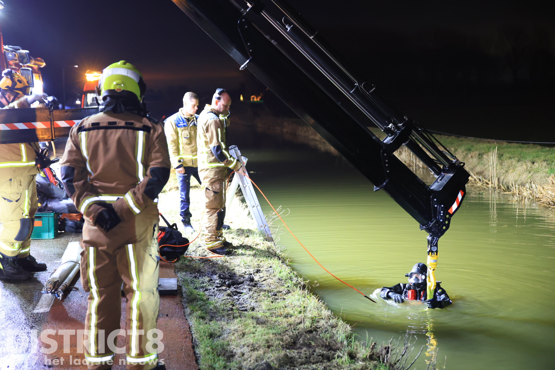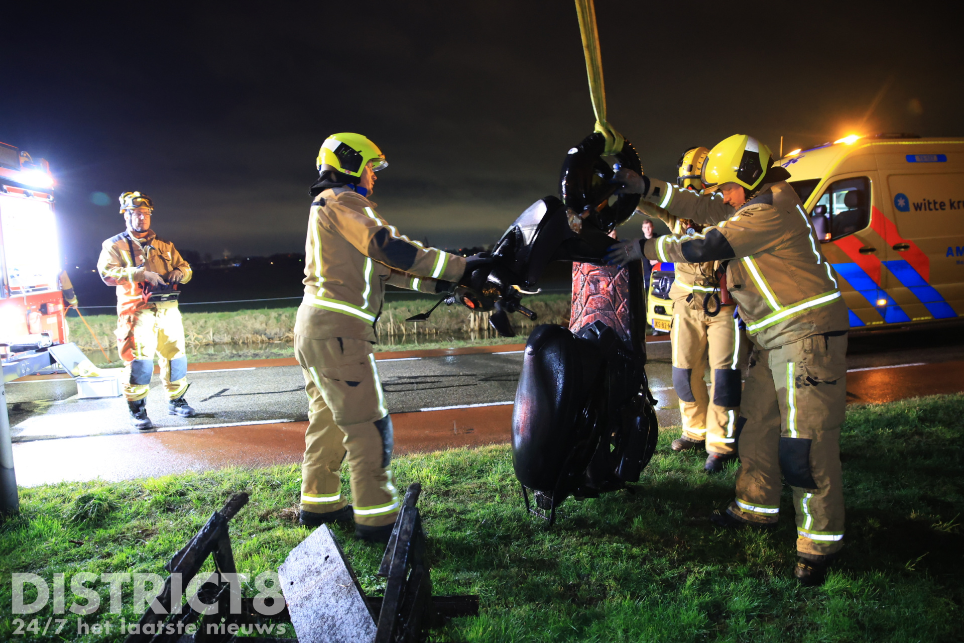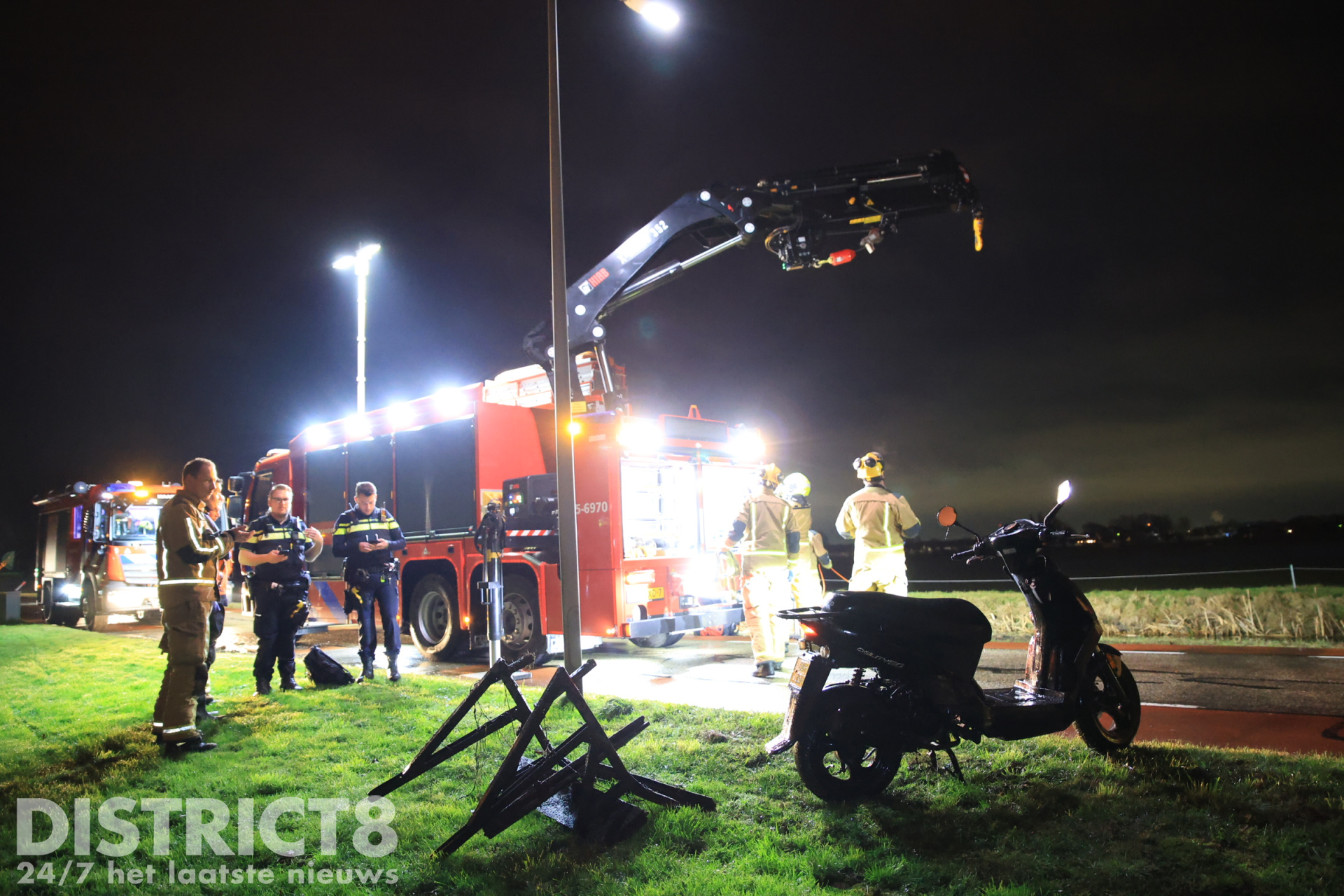 De brandweer heeft met een duiker en het hulpverleningsvoertuig de scooter uit het water gehaald.