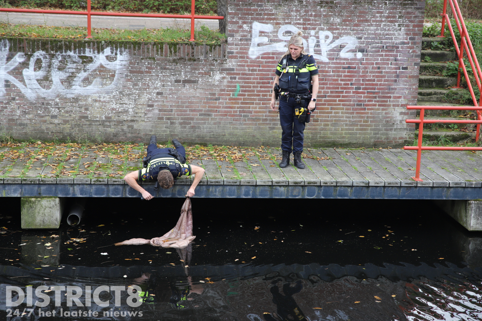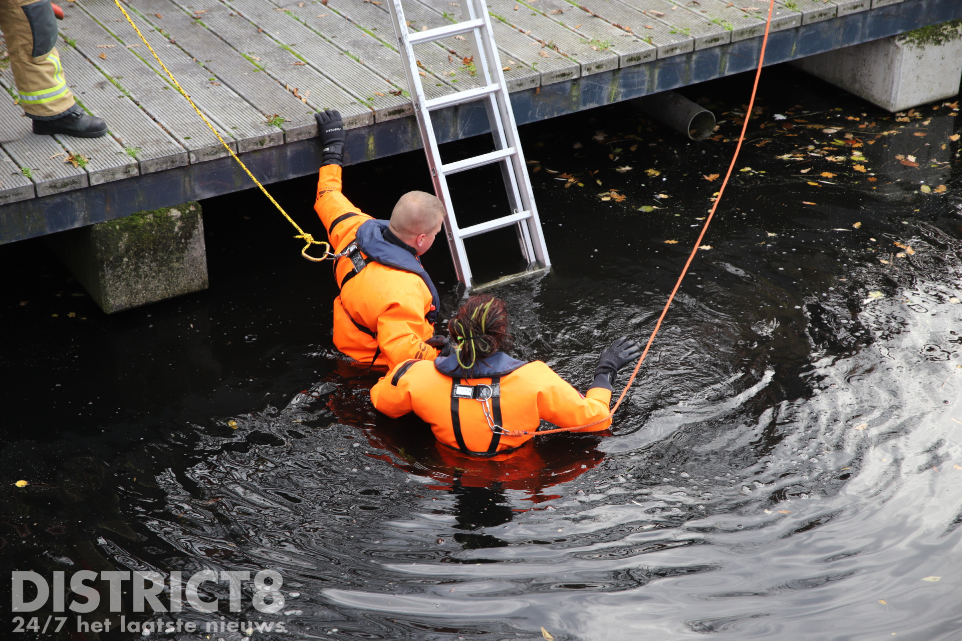 Agenten haalden de jas uit het water, maar troffen geen persoon aan. De brandweer besloot daarop verder onderzoek te doen. Twee brandweerlieden in waadpakken doorzochten het water rondom de kant en onder de vlonder.