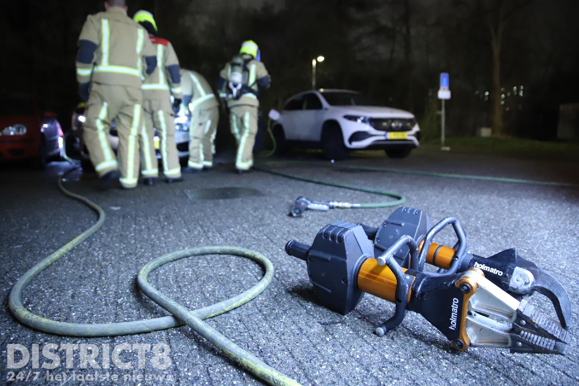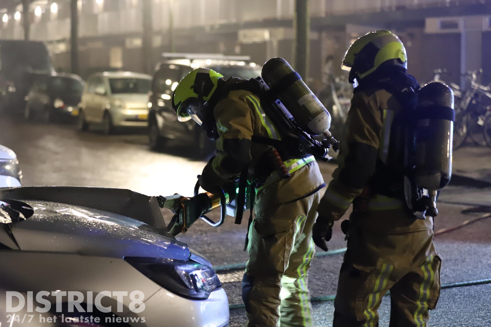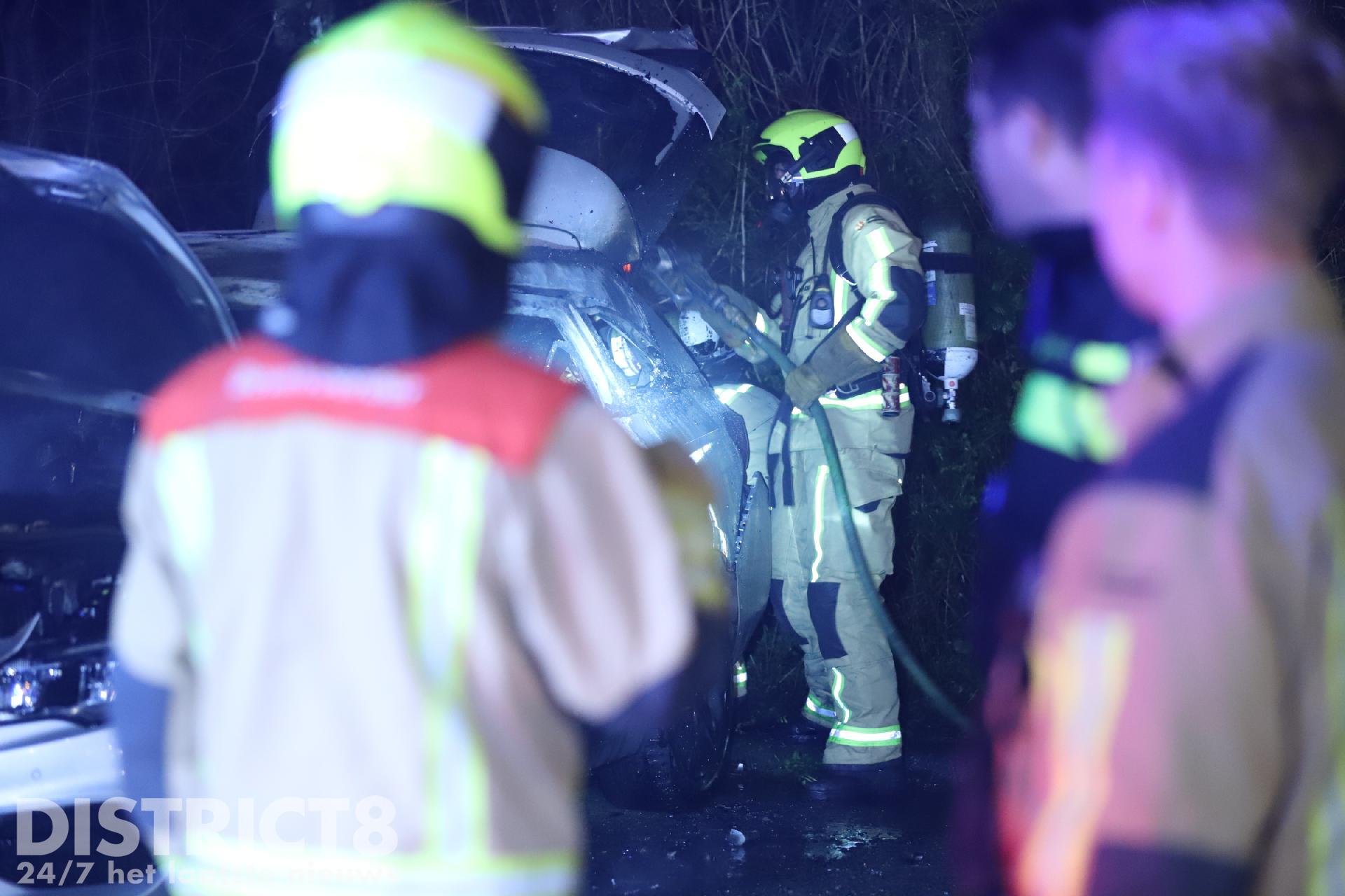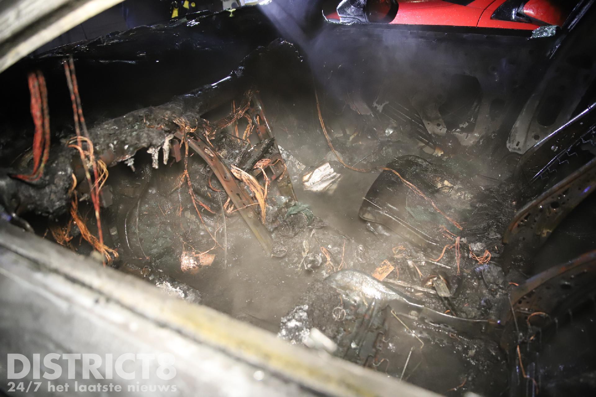 Na enige tijd werden de vlammen minder, de brandweer heeft met een spreider de motorkap van de auto open moeten forceren om de zekeringen van onder andere de claxon los te krijgen om deze te doen stoppen. De brandweer heeft nog enige tijd bluswerkzaamheden verricht. Hierbij werd ook met een warmtebeeldcamera gekeken naar eventuele hotspots.