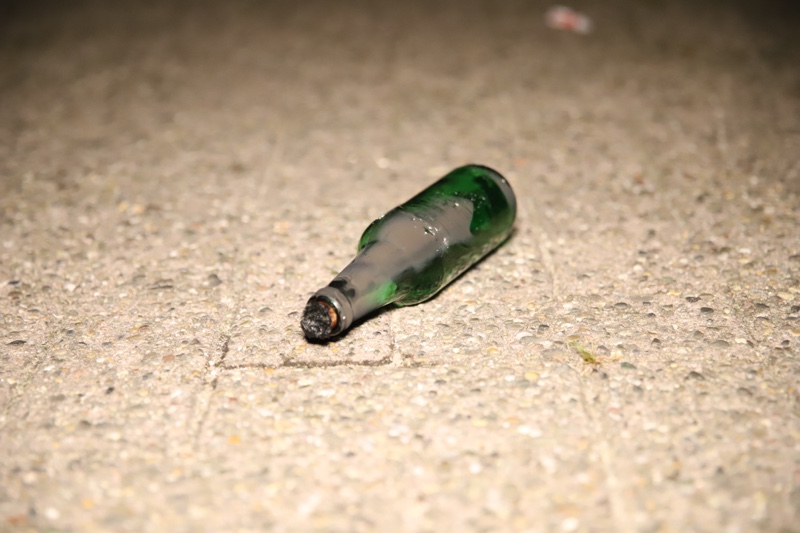 Voorbijgangers troffen twee brandende flesjes aan onder een geparkeerde auto, een van de voorbijgangers twijfelde geen moment en schopte beide flesjes onder de auto vandaan.