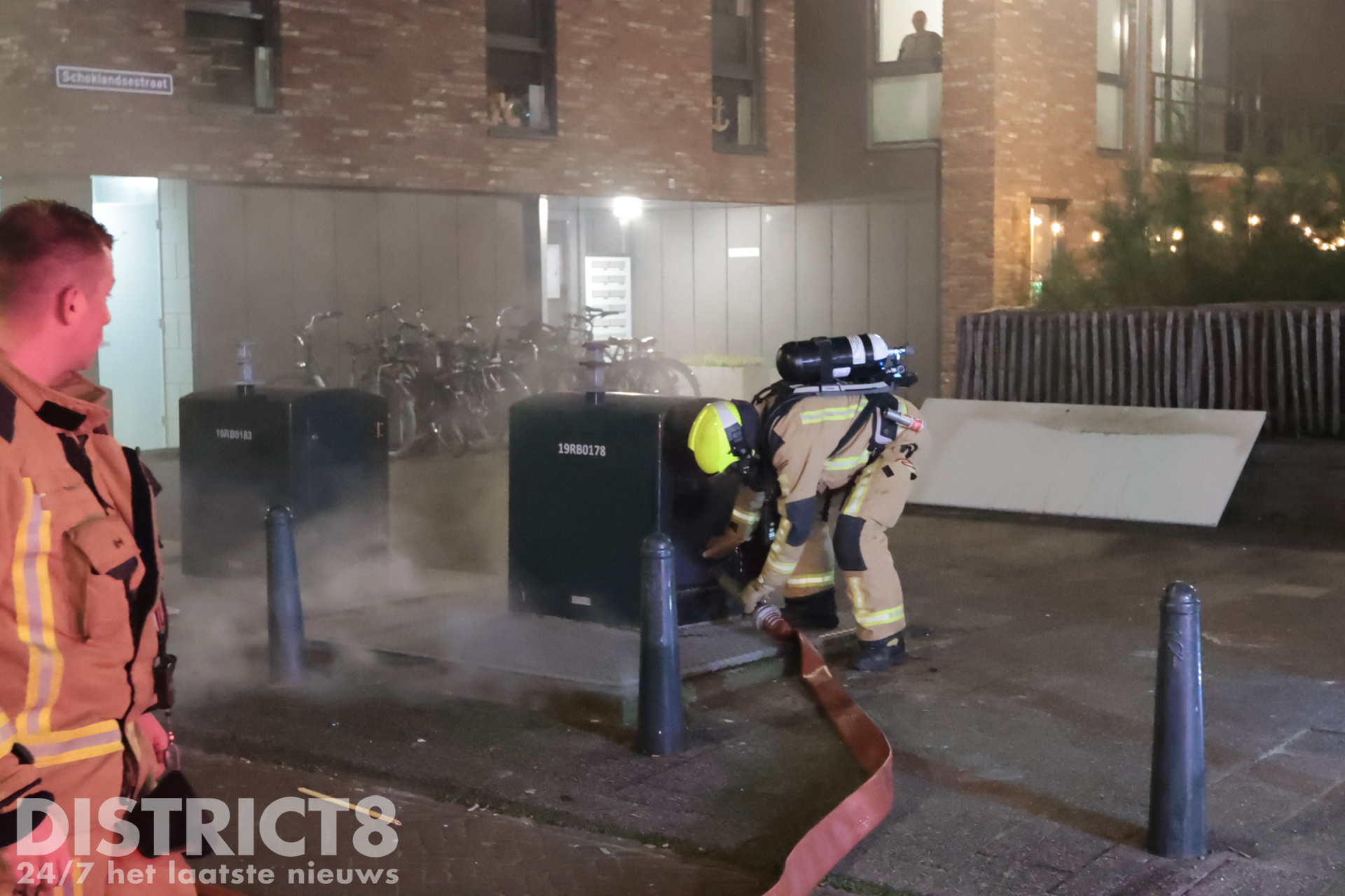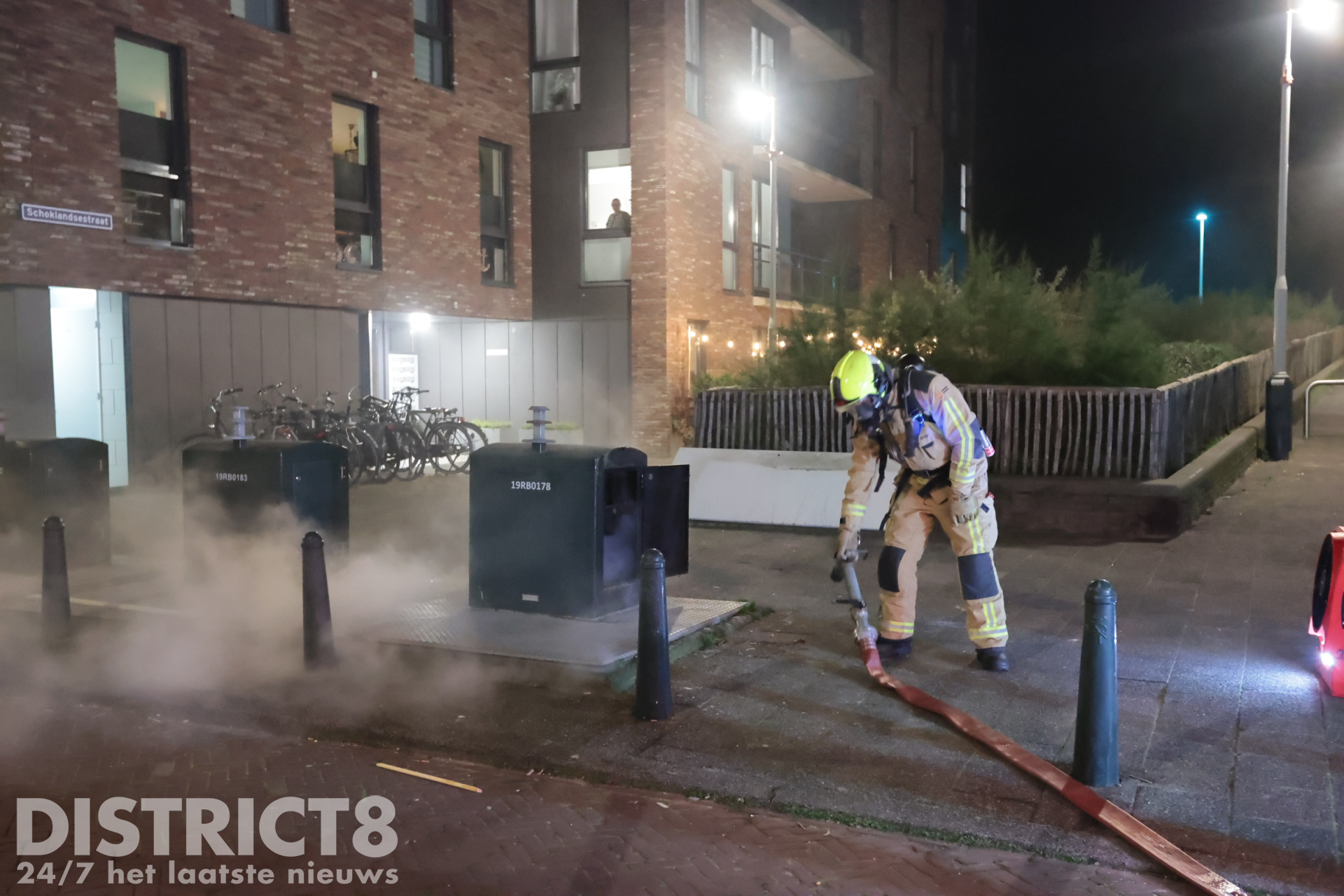 Een ondergrondse container is aldaar in brand gestoken. Brandweerlieden van Scheveningen kwamen ter plaatse om het brandje te blussen. Er kwam flinke rookontwikkeling vrij van de container, deze rook trok richting de flat, hierdoor ervaarde enkele bewoners een stank.