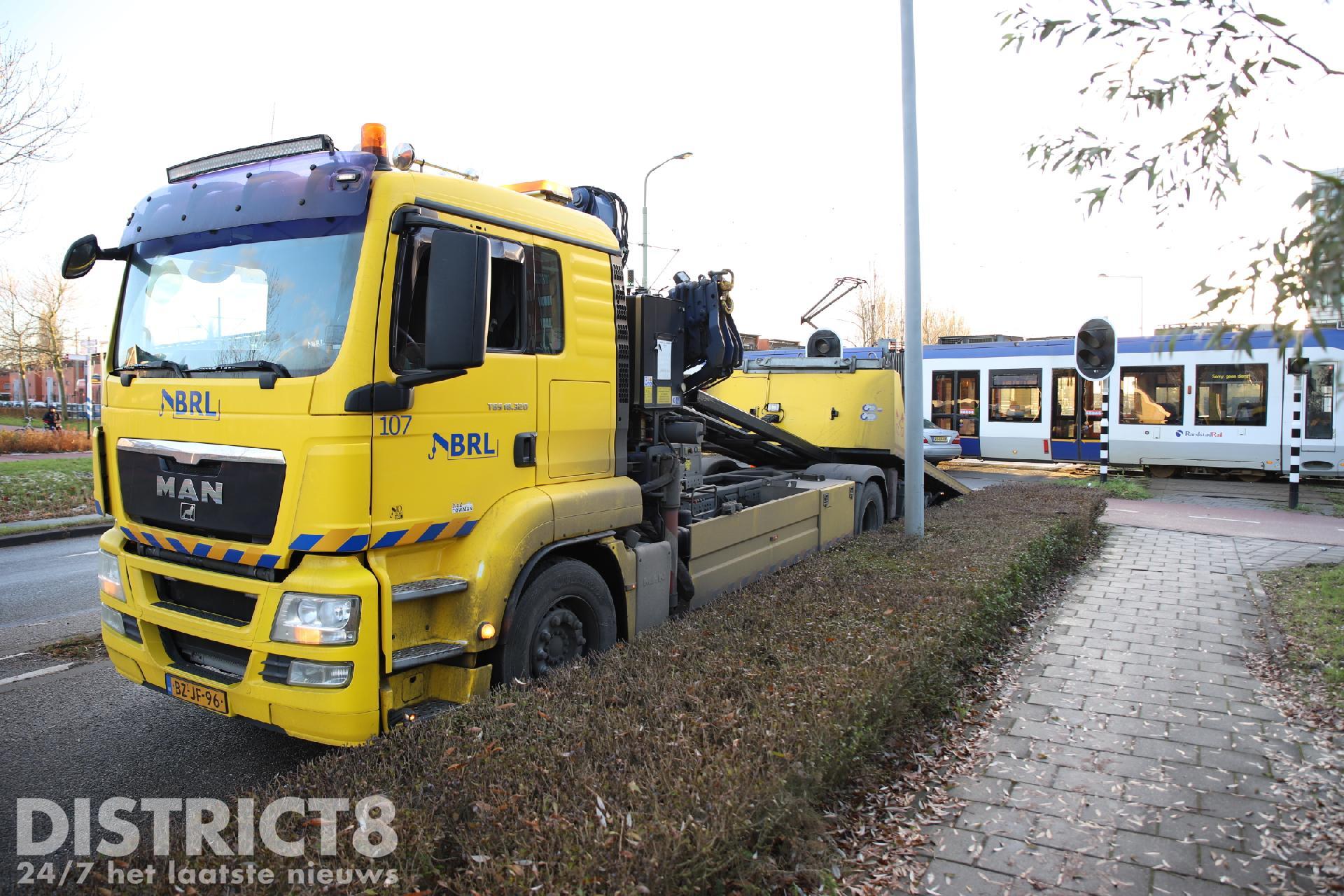 Een berger heeft het voertuig opgehaald. De tram is richting de remise gereden.
