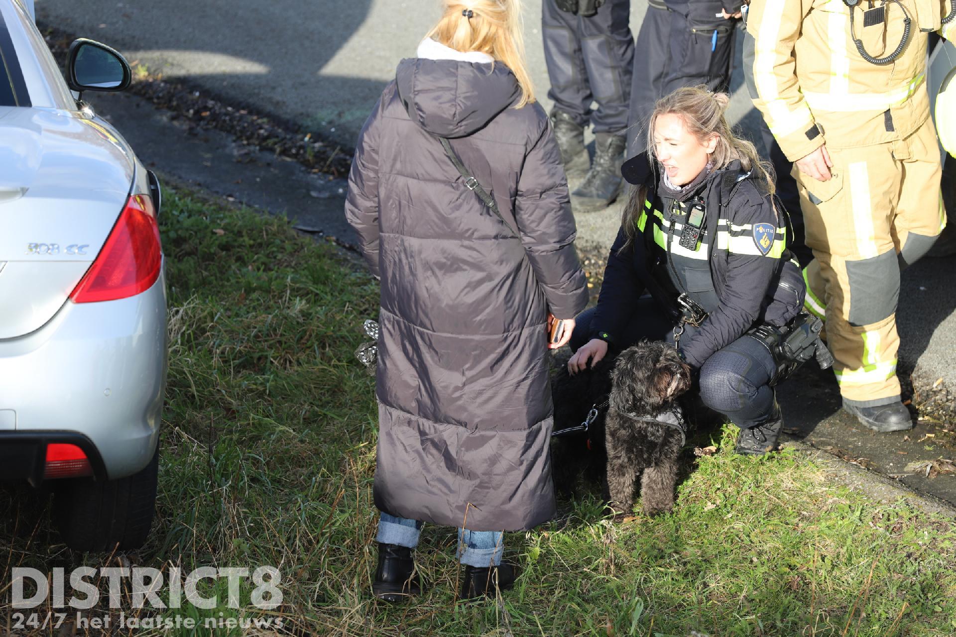 De politie heeft een hondje opgevangen die in één van de auto’s aanwezig was.
