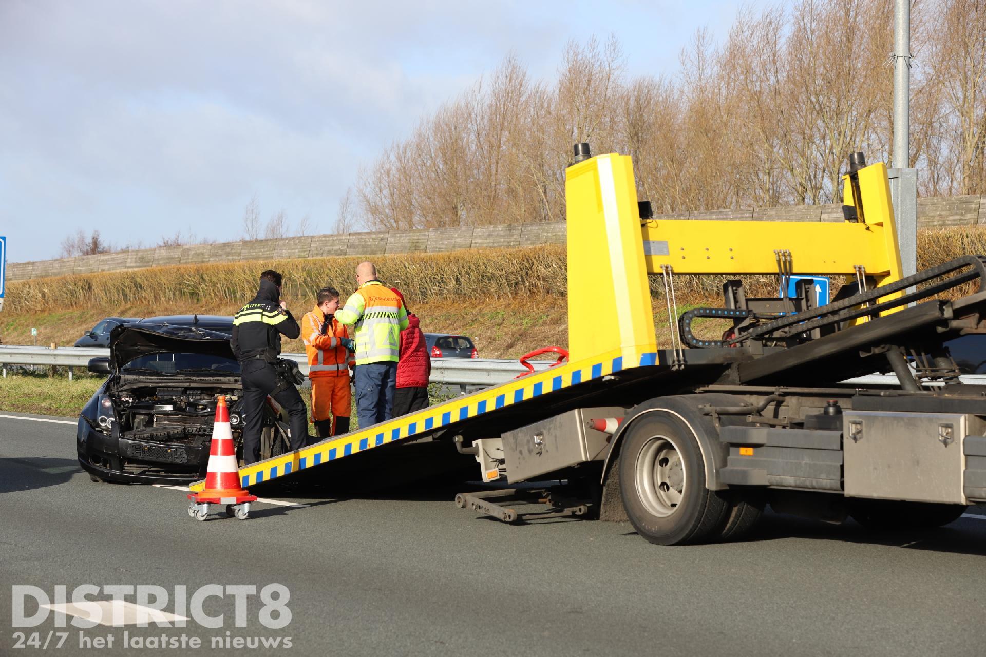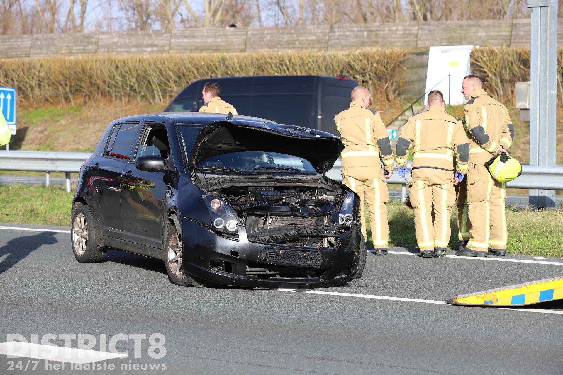 Twee personenauto’s zijn hierbij tegen elkaar aangereden waarvan 1 auto is gaan spinnen en op het talud tot stilstand gekomen. Het ambulance personeel heeft de personen nagekeken en niemand hoefde vervoerd te worden.