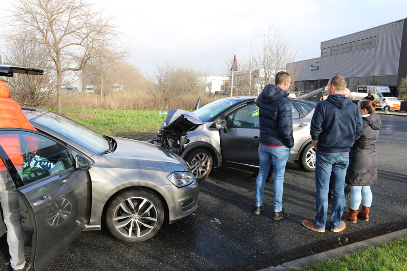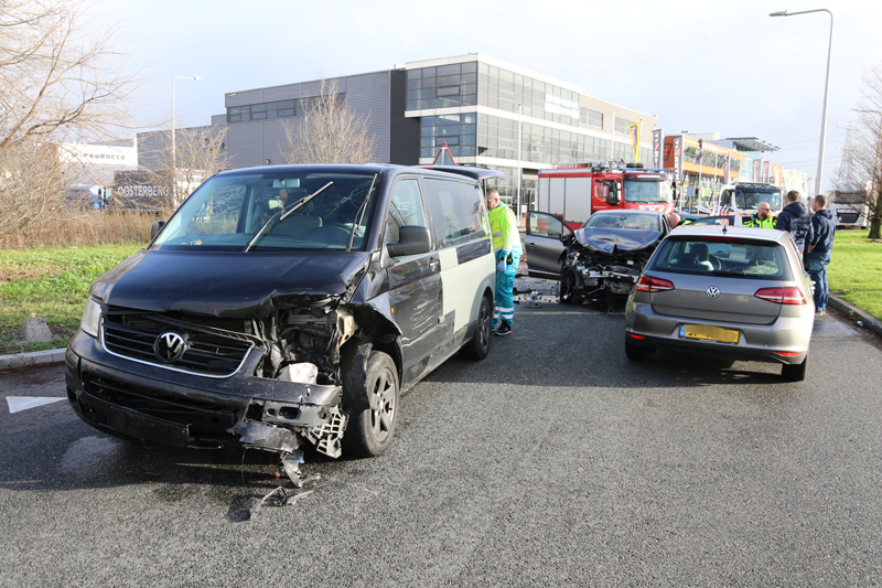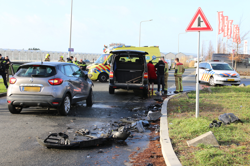 De bestuurder van de Renault wilde afslaan toen het busje hem tegemoet reed. Dit eindigde in een flinke klap.