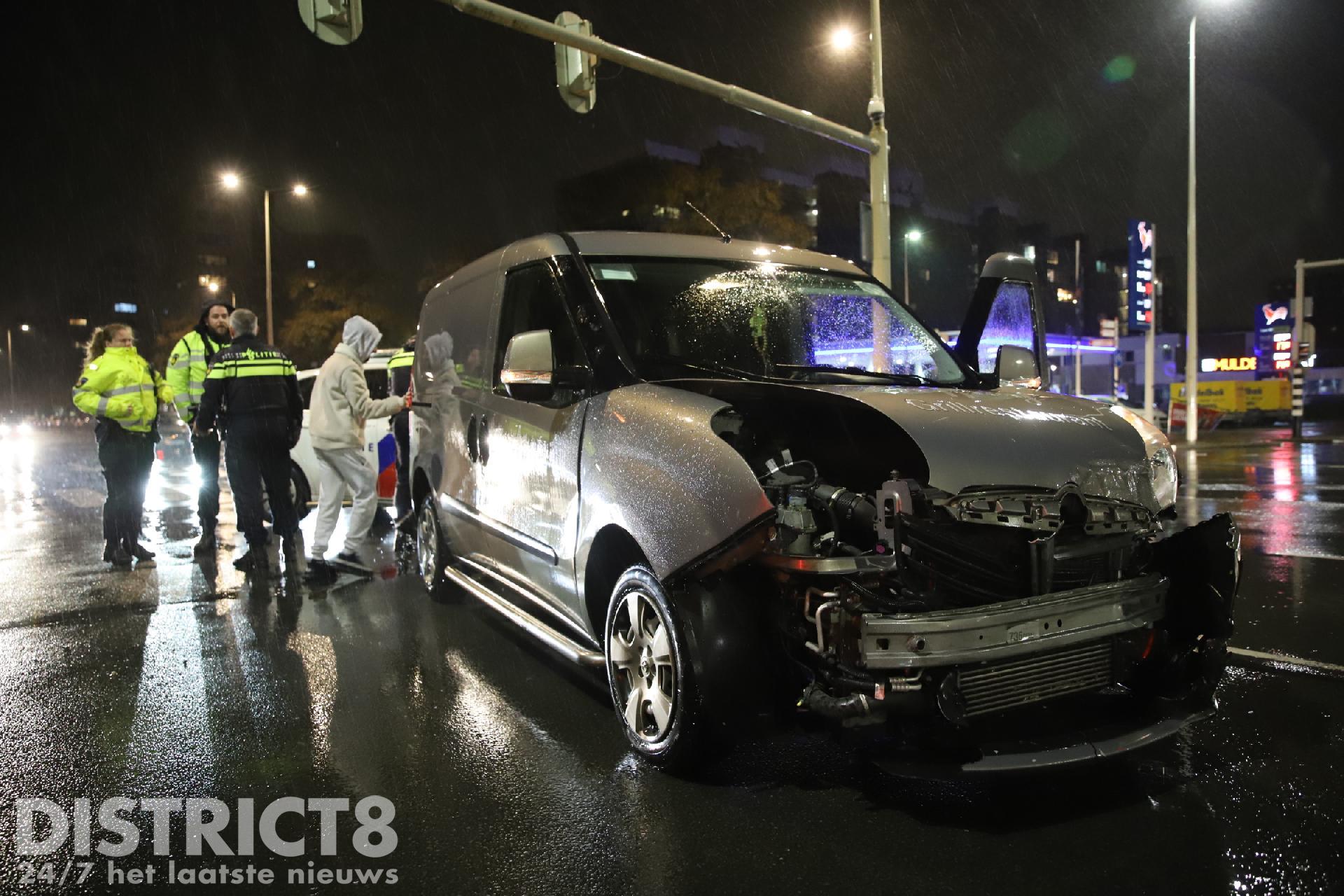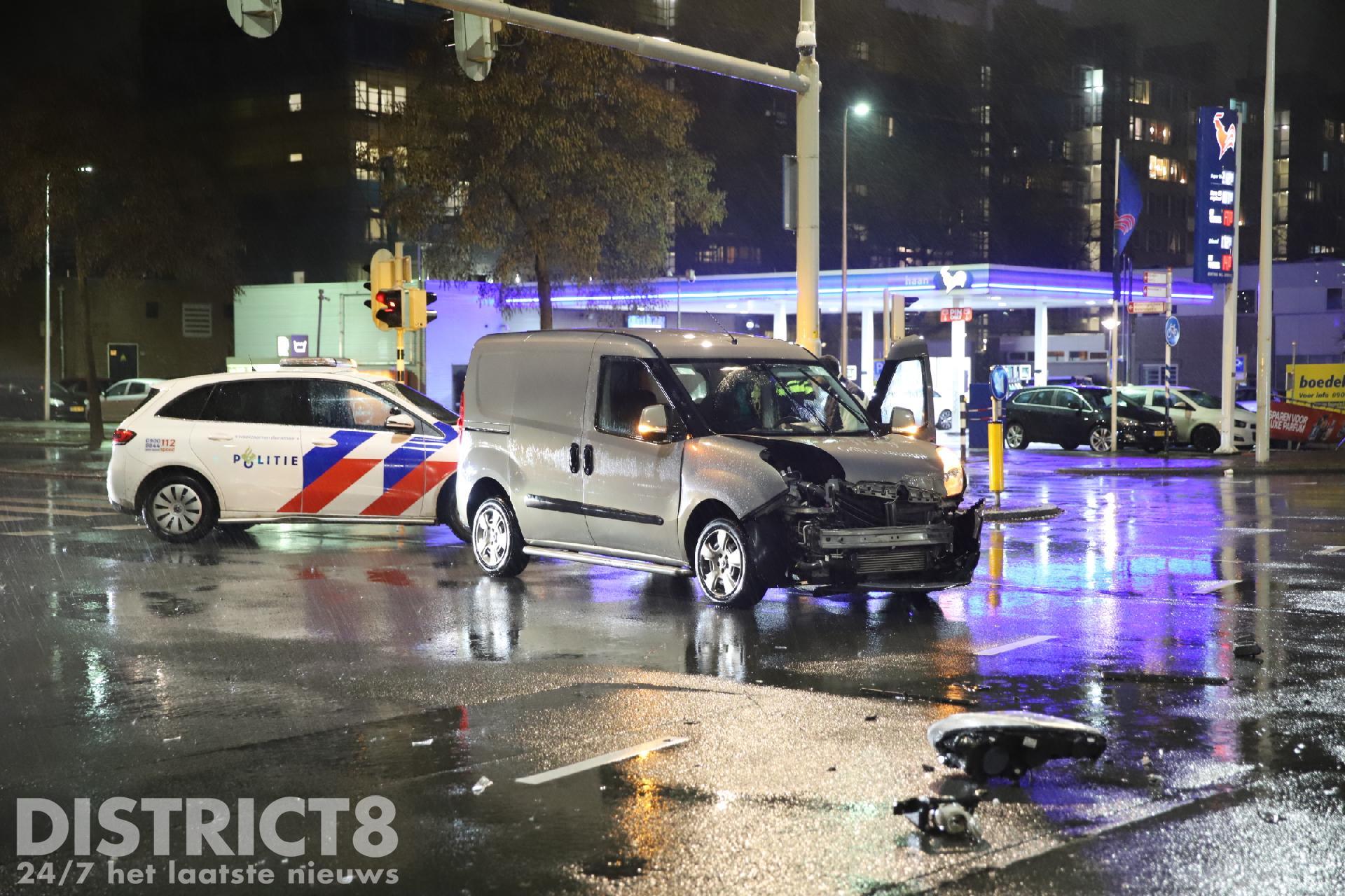 Den Haag – Donderdagavond 28 december even voor half twaalf heeft er een verkeersongeval plaatsgevonden op de kruising van de Loevesteinlaan met de Erasmusweg in Den Haag. Een automobilist, die over de Loevesteinlaan reed vanuit Den Haag richting Rijswijk, kwam volgens getuigen mogelijk met hoge snelheid door rood en botste op een busje dat over de Erasmusweg reed vanaf de Lozerlaan richting Den Haag.