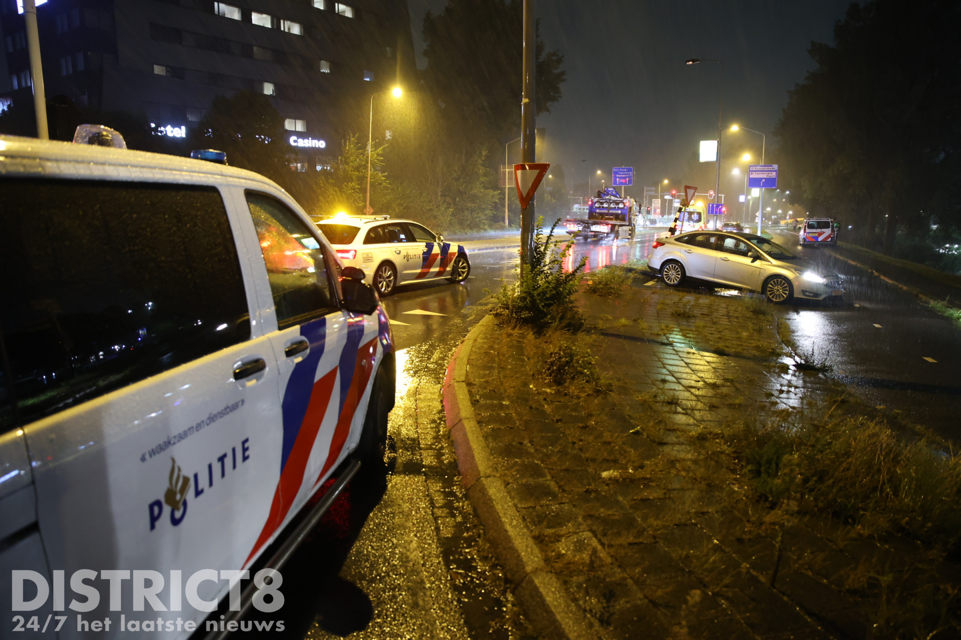 Delft – Op de Brasserskade in Delft is dinsdagavond 10 september een onherkenbaar politievoertuig betrokken geraakt bij een ongeval. Omstreeks tien voor negen was de onherkenbare wagen, volgens getuigen, met spoed onderweg naar een melding aan de Sportring in Delft. Op de Sportring raakte een automobilist gewond nadat een vallende tak door de voorruit van zijn auto heen ging.