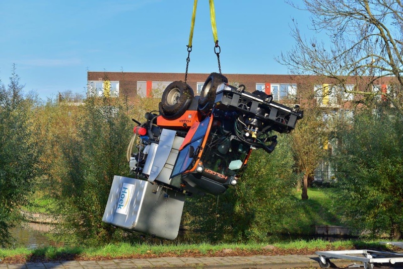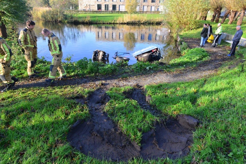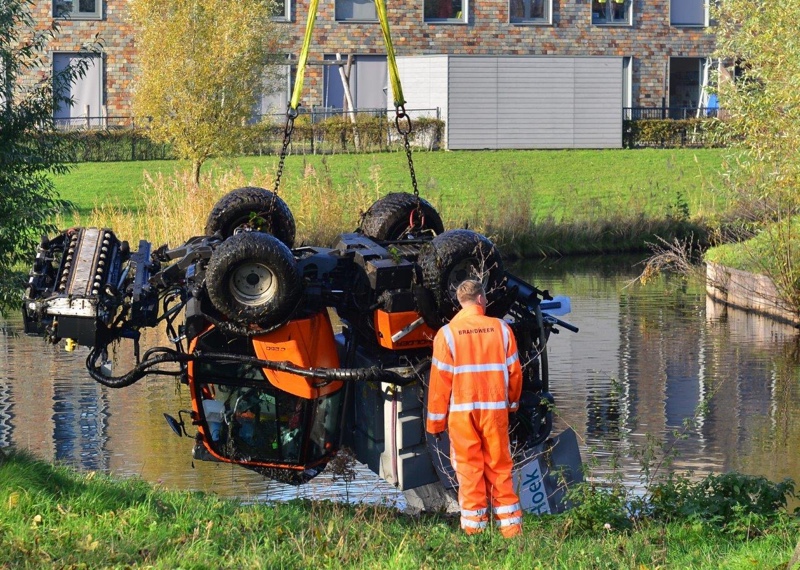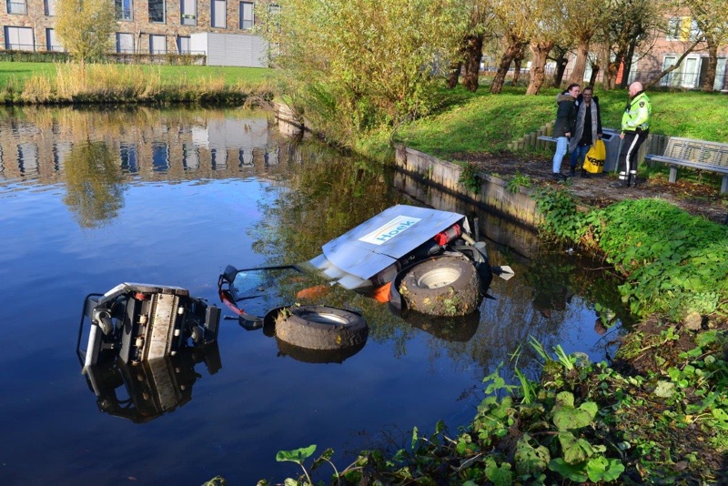 De man was onkruid aan het verwijderen met stoom langs de kade van de vijver aan het Zalkerbos voordat hij te water raakte. Het slachtoffer wist zelf uit het voertuig te komen en naar de kant te zwemmen.