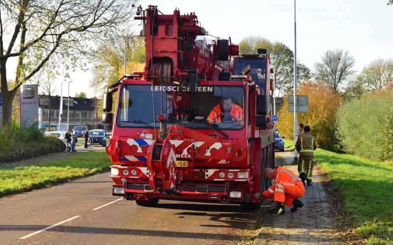De straat werd vervolgens ruim afgezet zodat een kraanwagen het voertuig uit de vijver kon vissen.