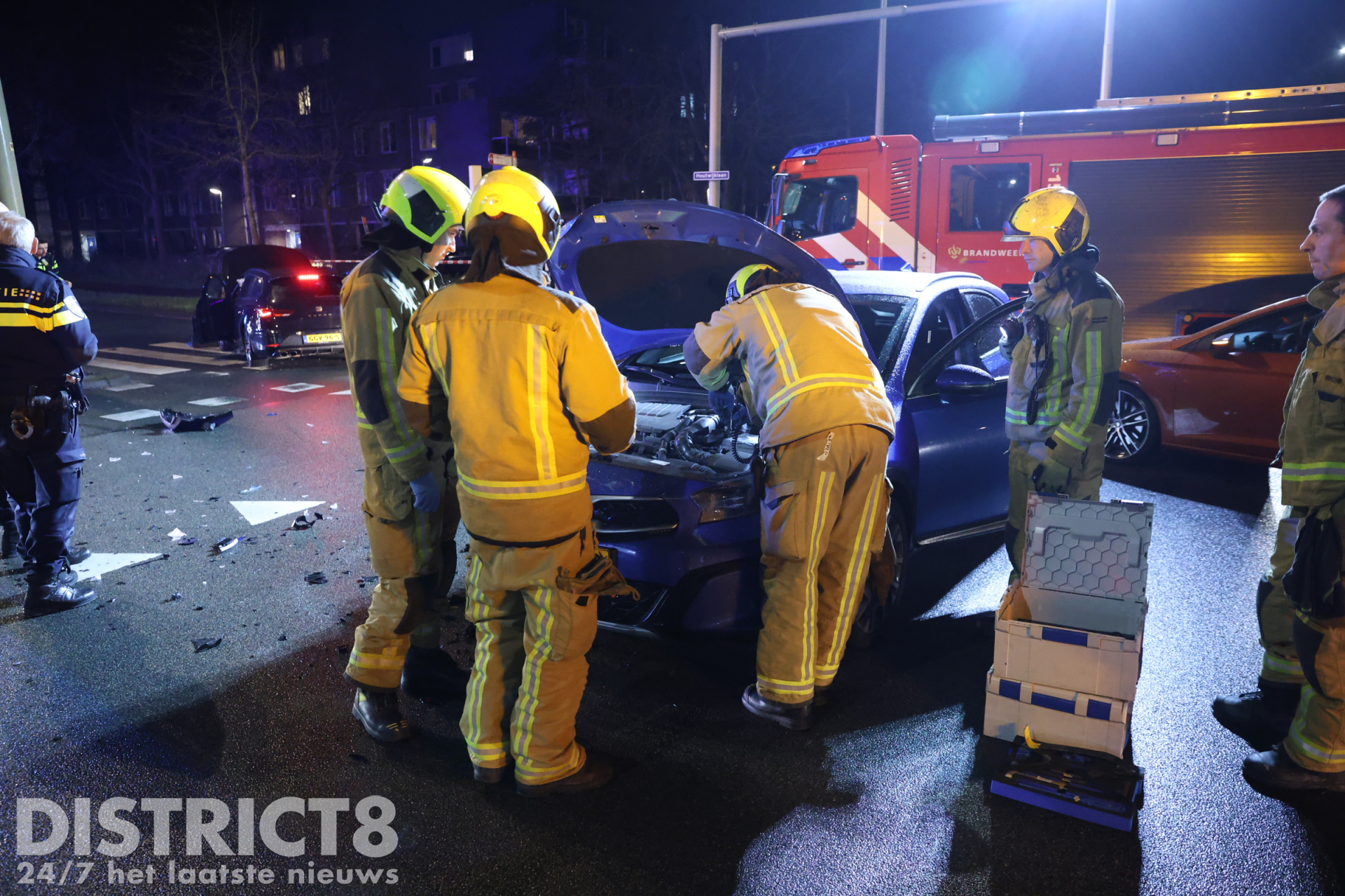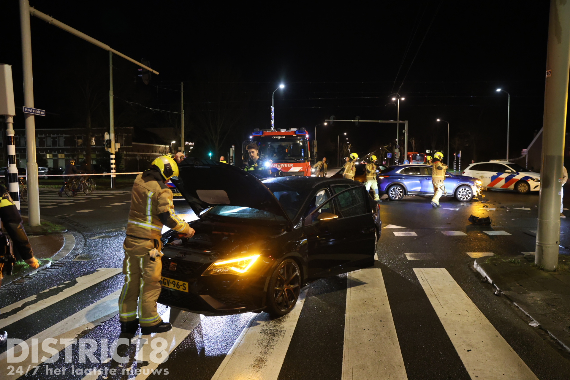 Een van de bestuurders raakte daarbij gewond en wordt door de ambulancedienst nagekeken. De brandweer is aanwezig voor hand en span diensten.