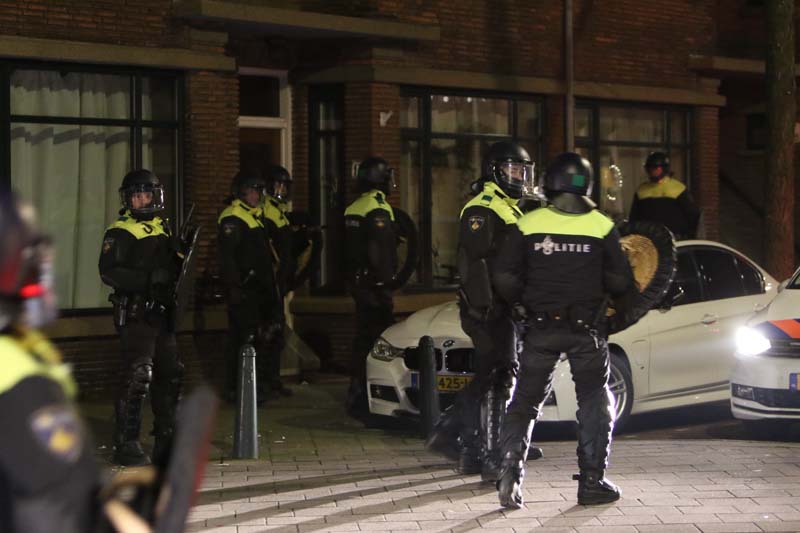 De politie is in grote getale aanwezig met onder andere honden, ook de Mobiele Eenheid rijdt in grote getale door de wijk en voeren charges uit.
