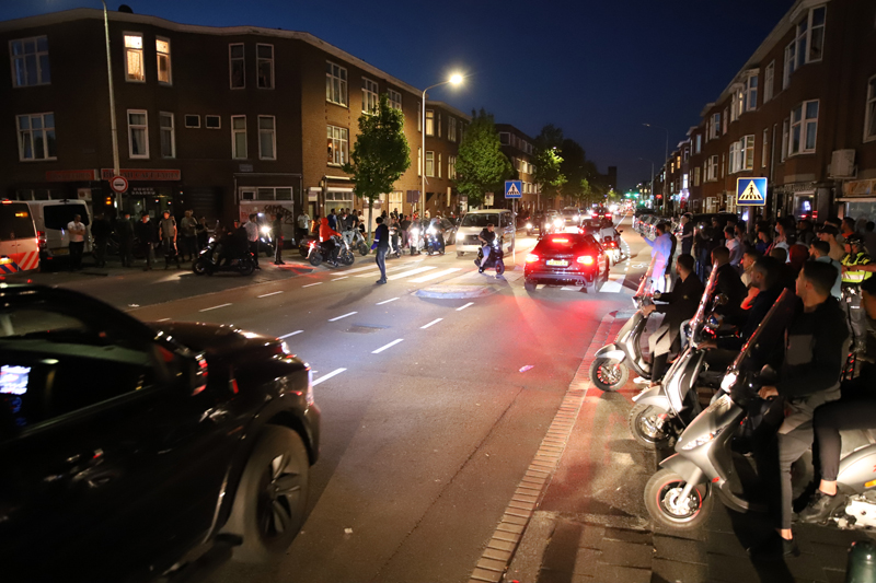 Ook op het Kaapseplein in de Schilderswijk was het enige tijd onrustig. Hier werd ook een persoon aangehouden.