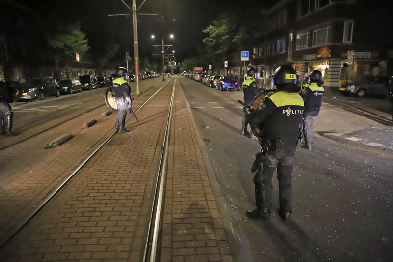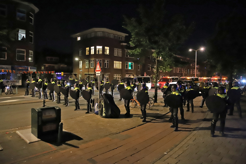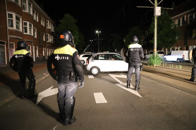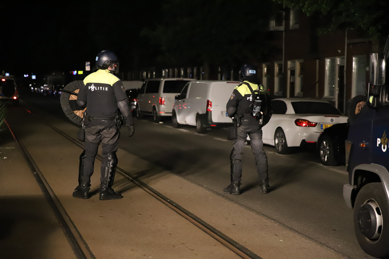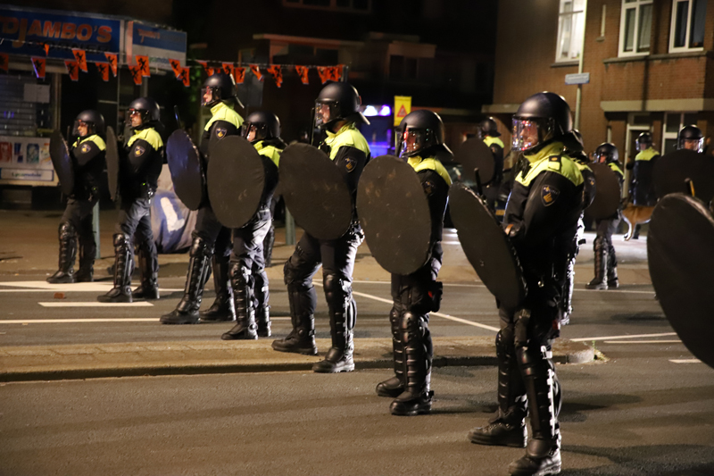 Toen de politie besloot in te grijpen werd de Mobiele Eenheid ingezet. De politie werd tijdens hun inzet bekogeld met stenen. Toen de groep werd weggejaagd van het Jonckbloetplein gingen de mensen de woonwijk in.