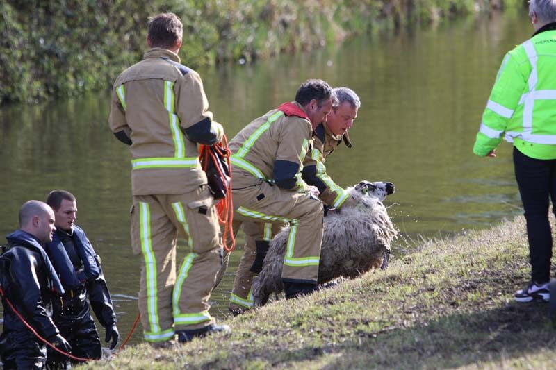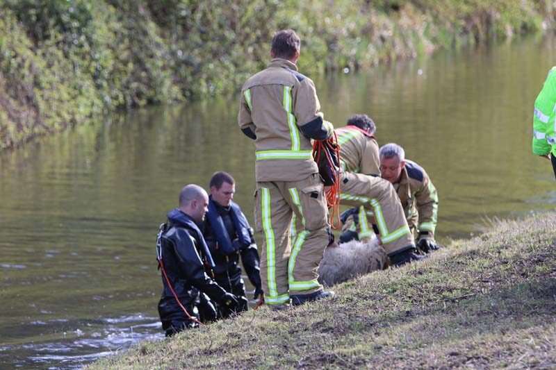 Al snel stond het schaap weer op het droge. Het dier raakte tijdens zijn avontuur niet gewond.