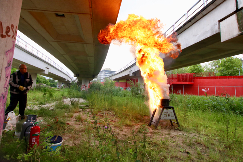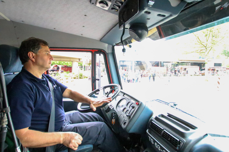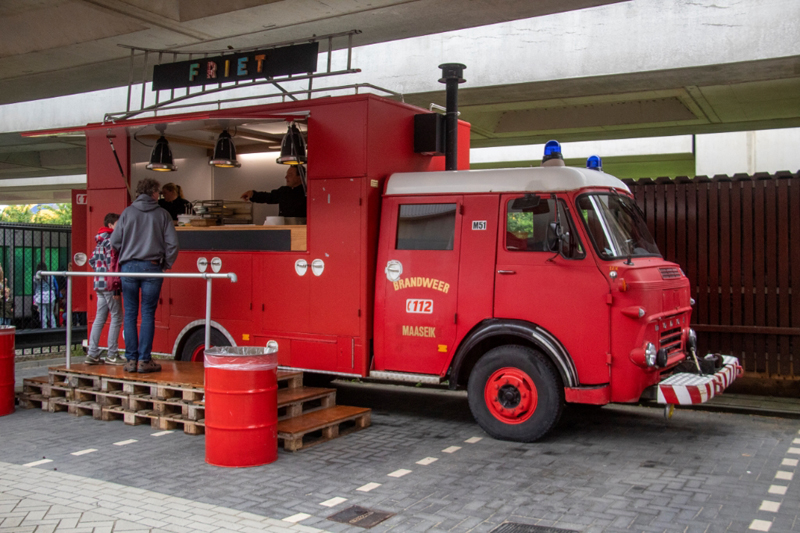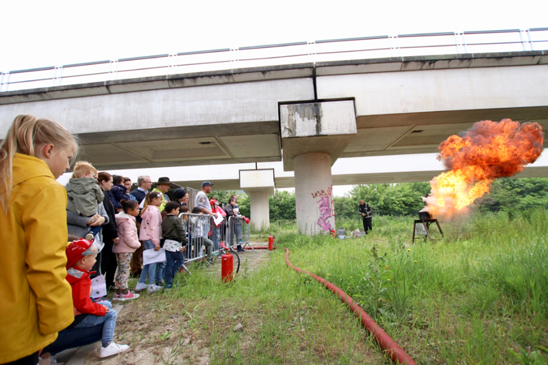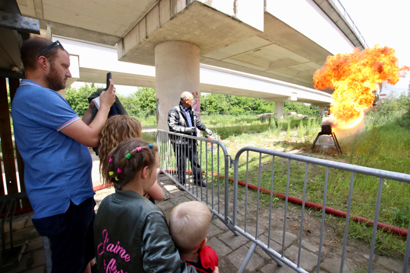 Aan de achterzijde van het terrein kon je zelf blussen of op de foto met een van de 3 Ahrens Fox brandweervoertuigen. Een dierenambulance en een “gewone” ambulance werden ook druk bezocht. De demonstratie van vlam in de pan werd de hele dag door gegeven en trok telkens vele belangstellenden. Ook de rookcontainer had de hele dag door volop bezoekers.