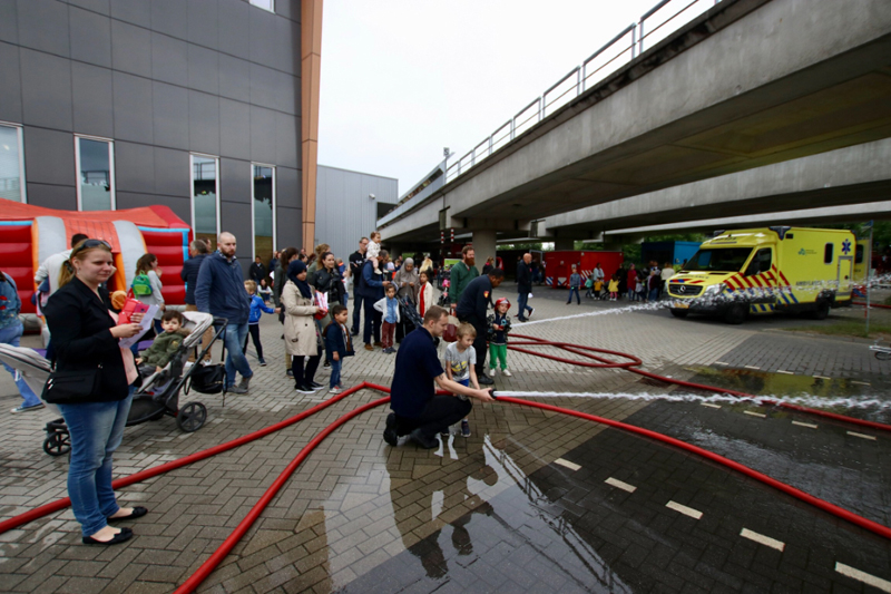 Schiedam – De open dag van de brandweer Schiedam is vandaag druk bezocht. Van begin tot eind stonden er kinderen in de rij voor de activiteiten rondom de kazerne. Het ritje met een brandweerwagen was erg populair, net als het zelf blussen en de interactie met de duikers in een grote duikcontainer.