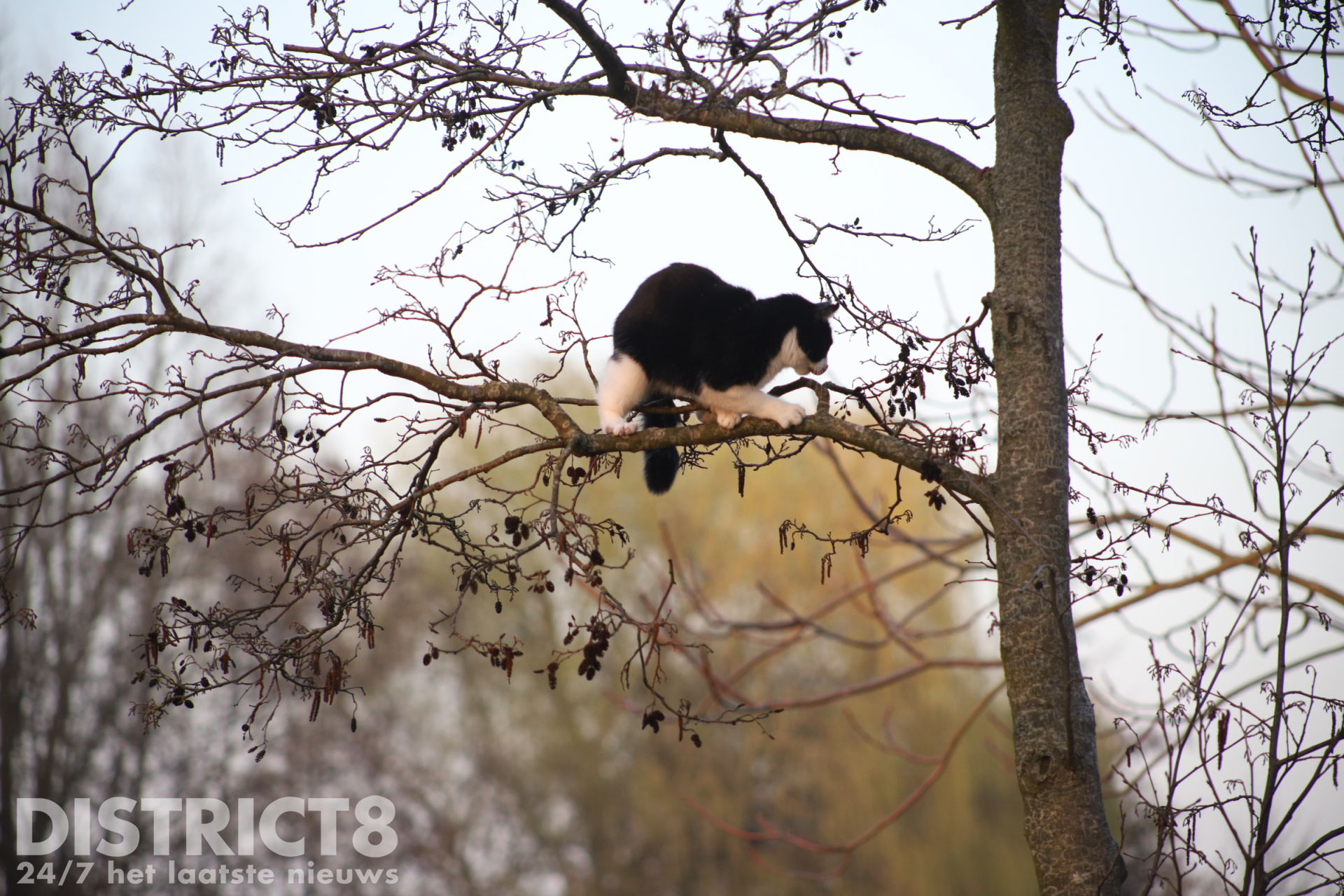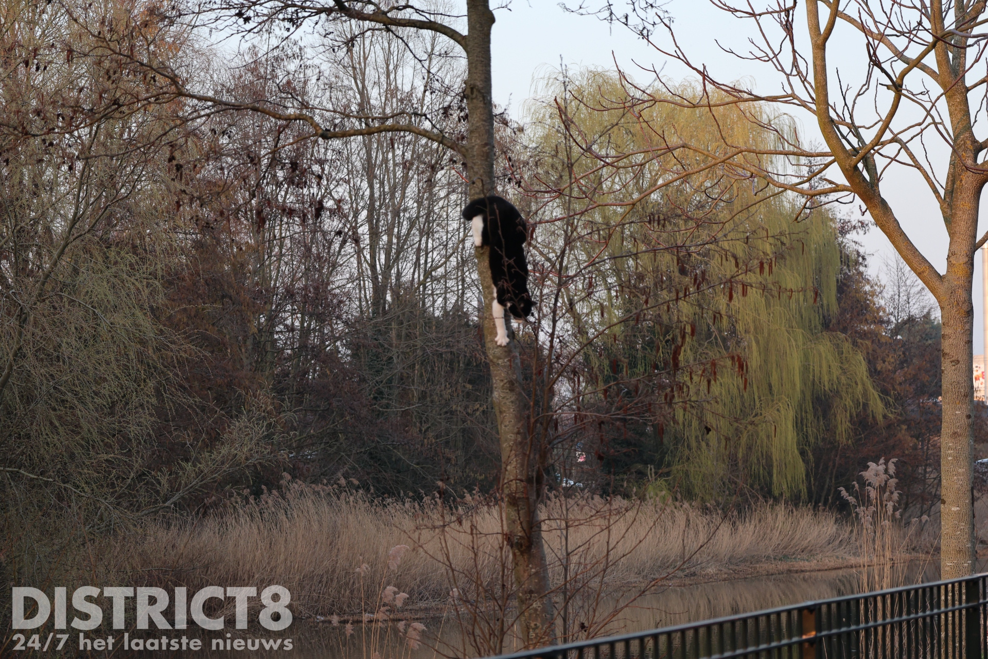 Opgejaagde kat rent angstig de boom in Bostonsingel Den Haag