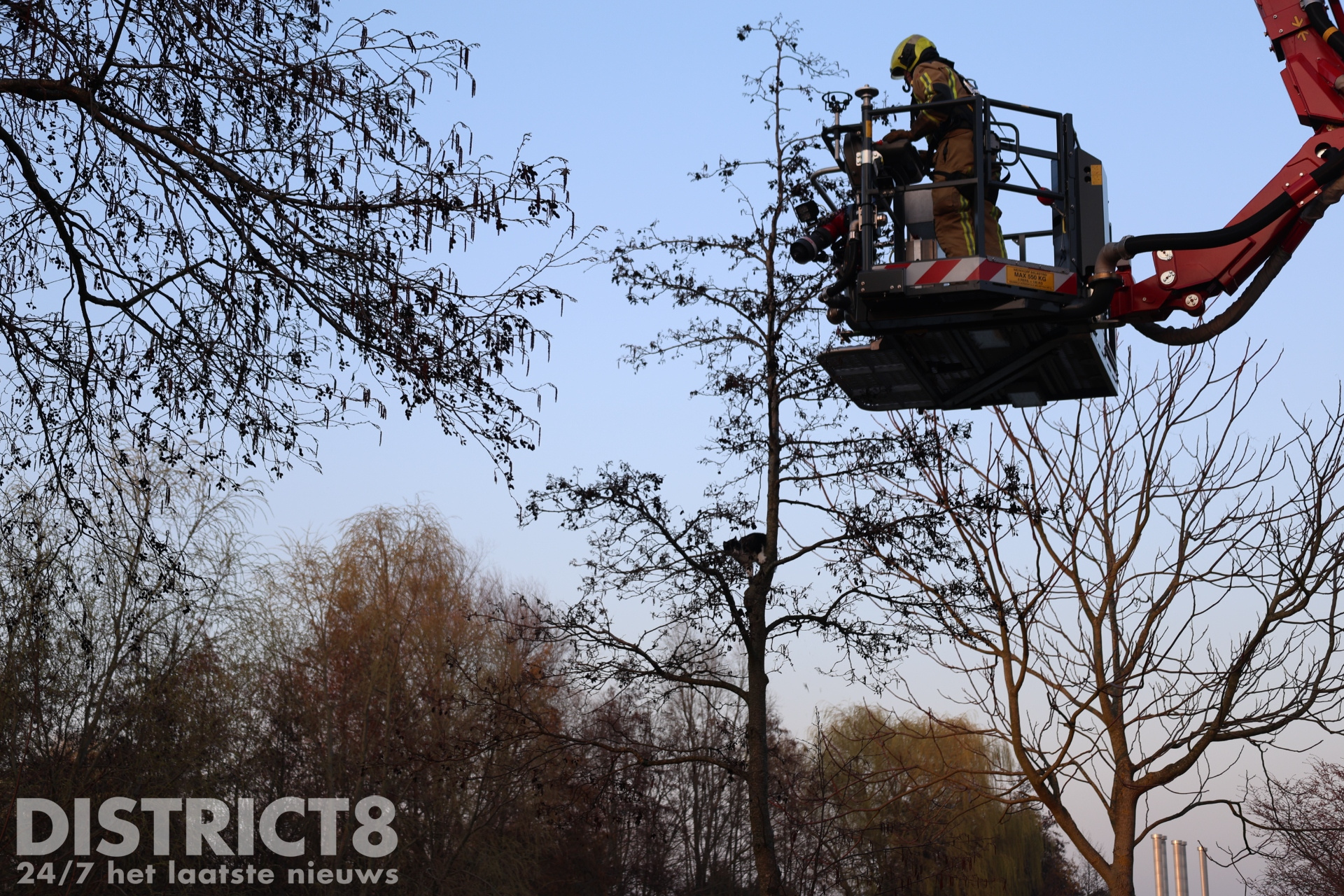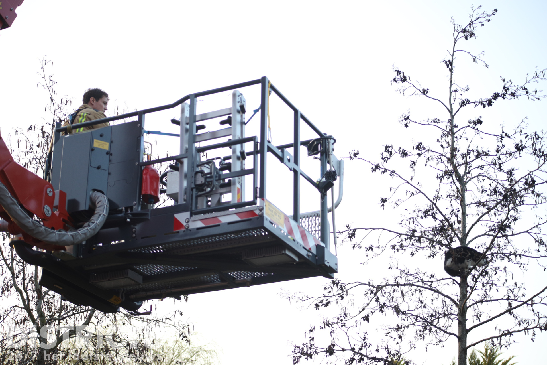 De bewoners schakelden de brandweer in. De brandweer arriveerde zonder spoed op de locatie. Nadat de hoogwerker volledig was opgesteld en richting de kat werd bewogen, besloot het dier zelf uit de boom te klimmen.