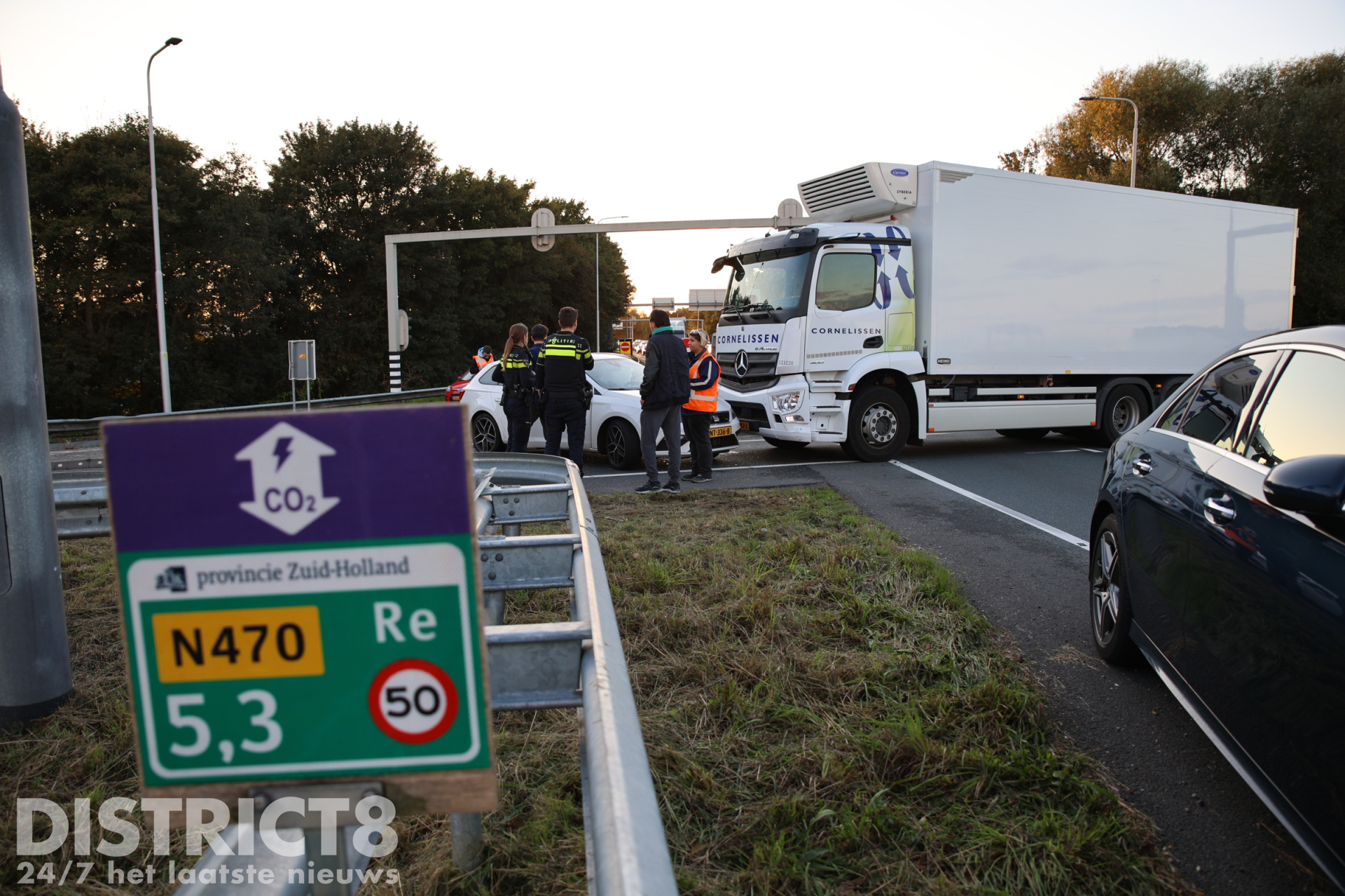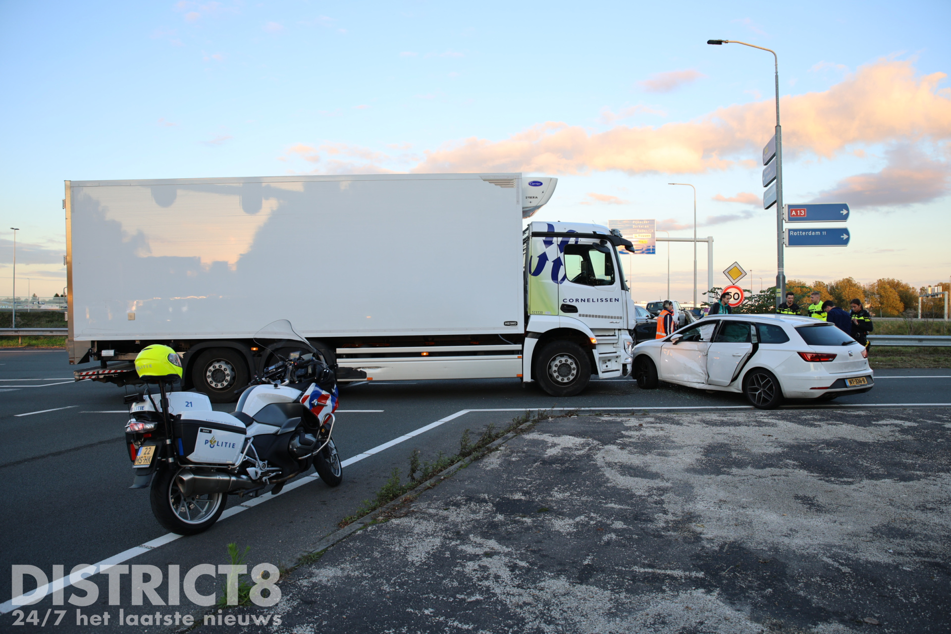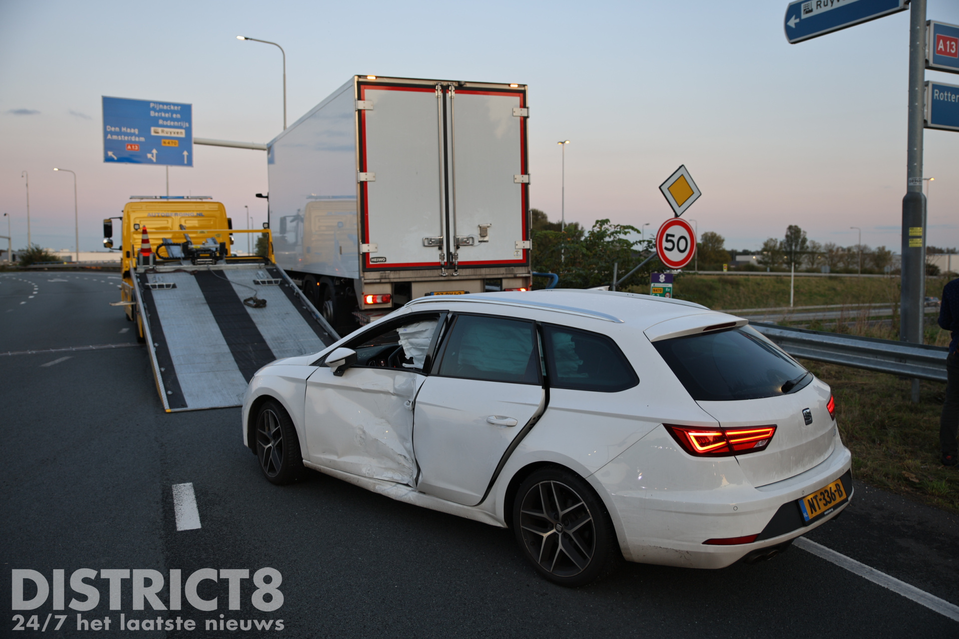 Door de afzetting loopt verkeer vanuit Delft richting de A13 enige vertraging op. Een berger heeft uiteindelijk de personenauto afgevoerd, de vrachtwagen kon op eigen kracht verder rijden.