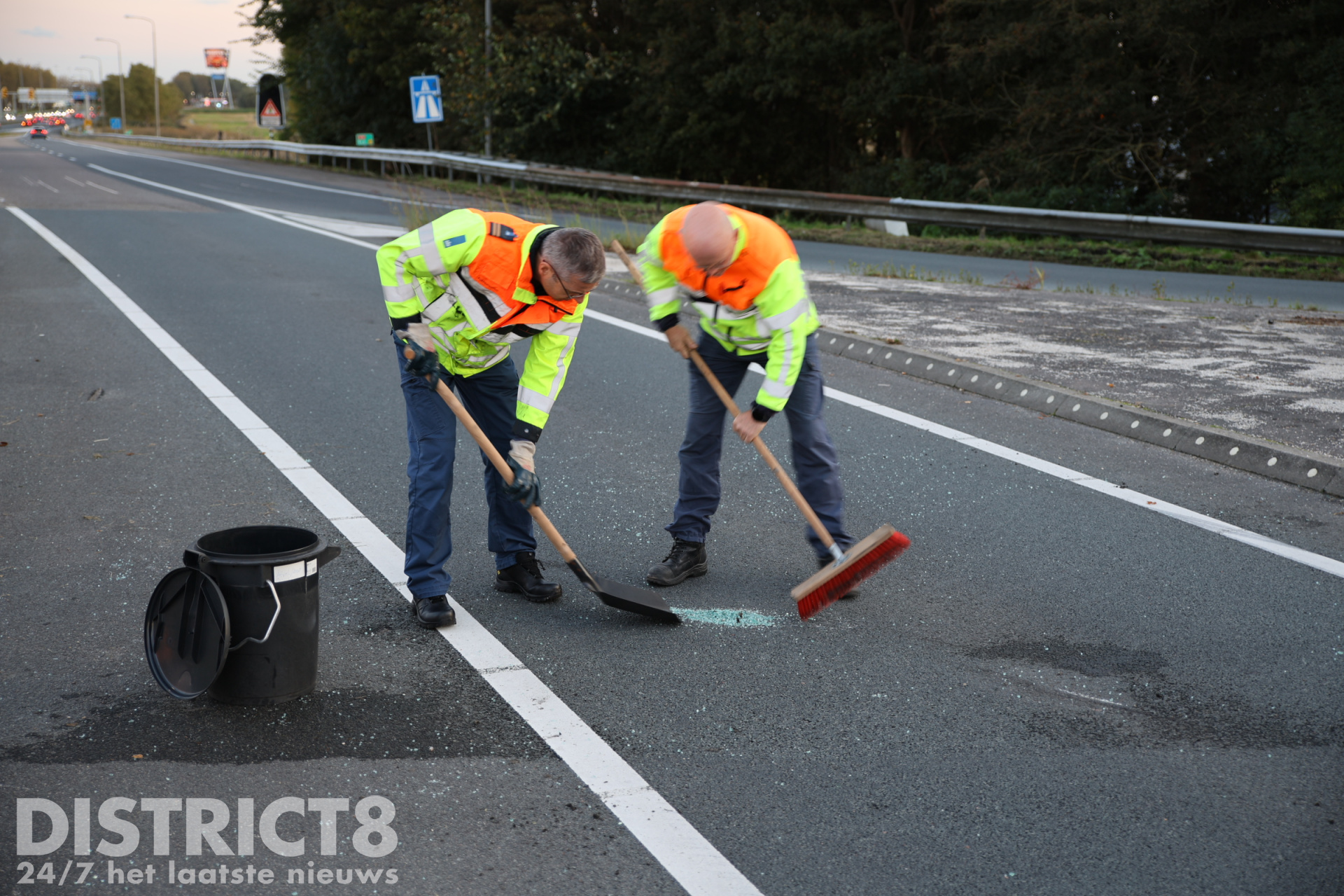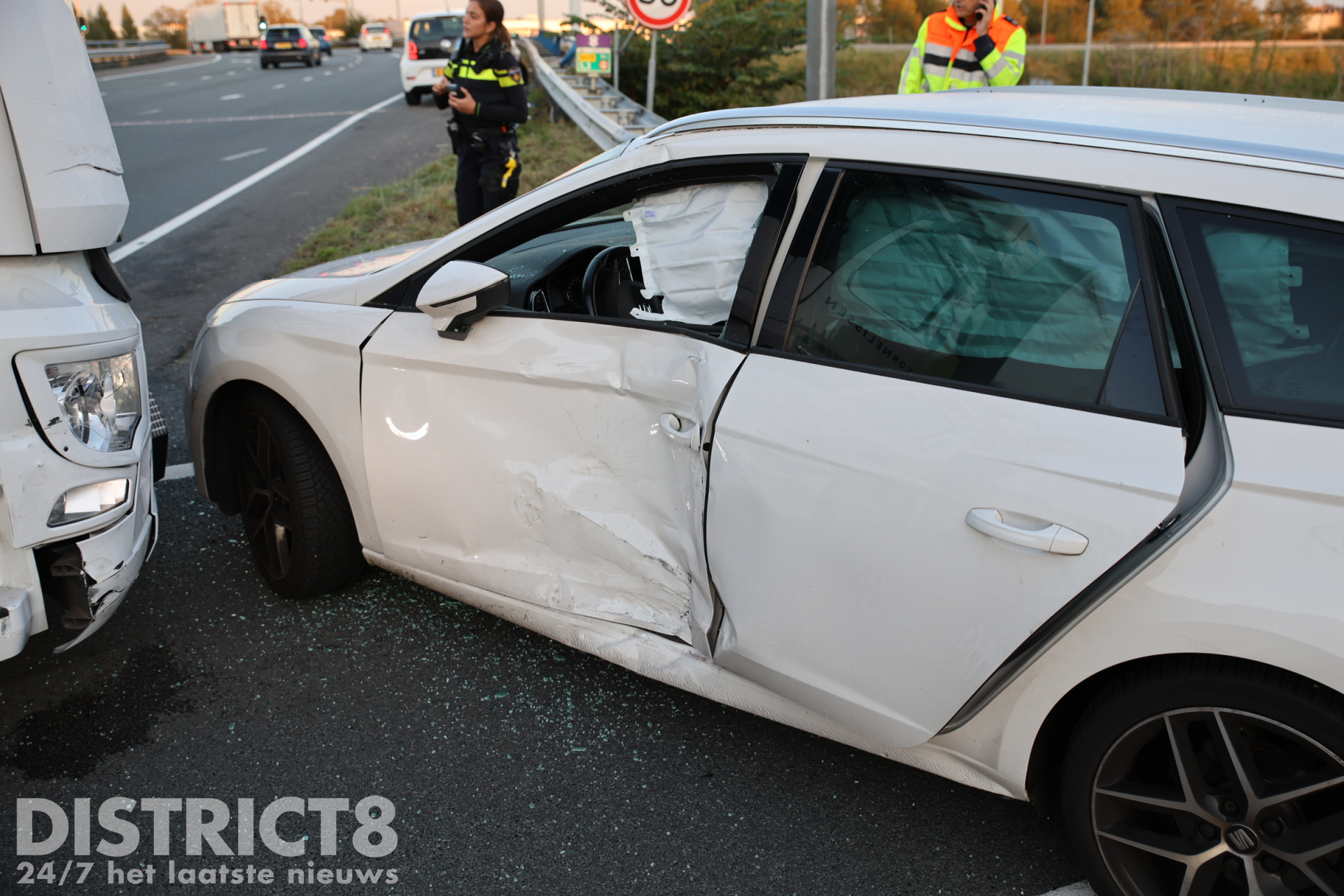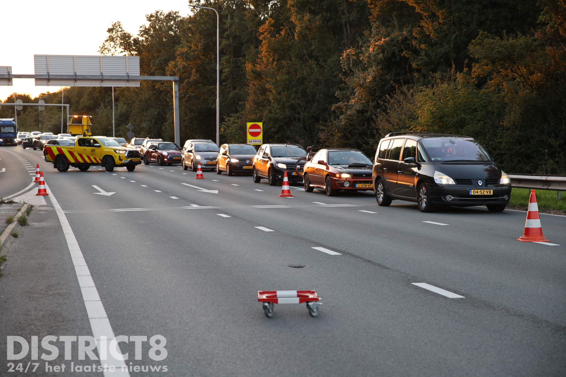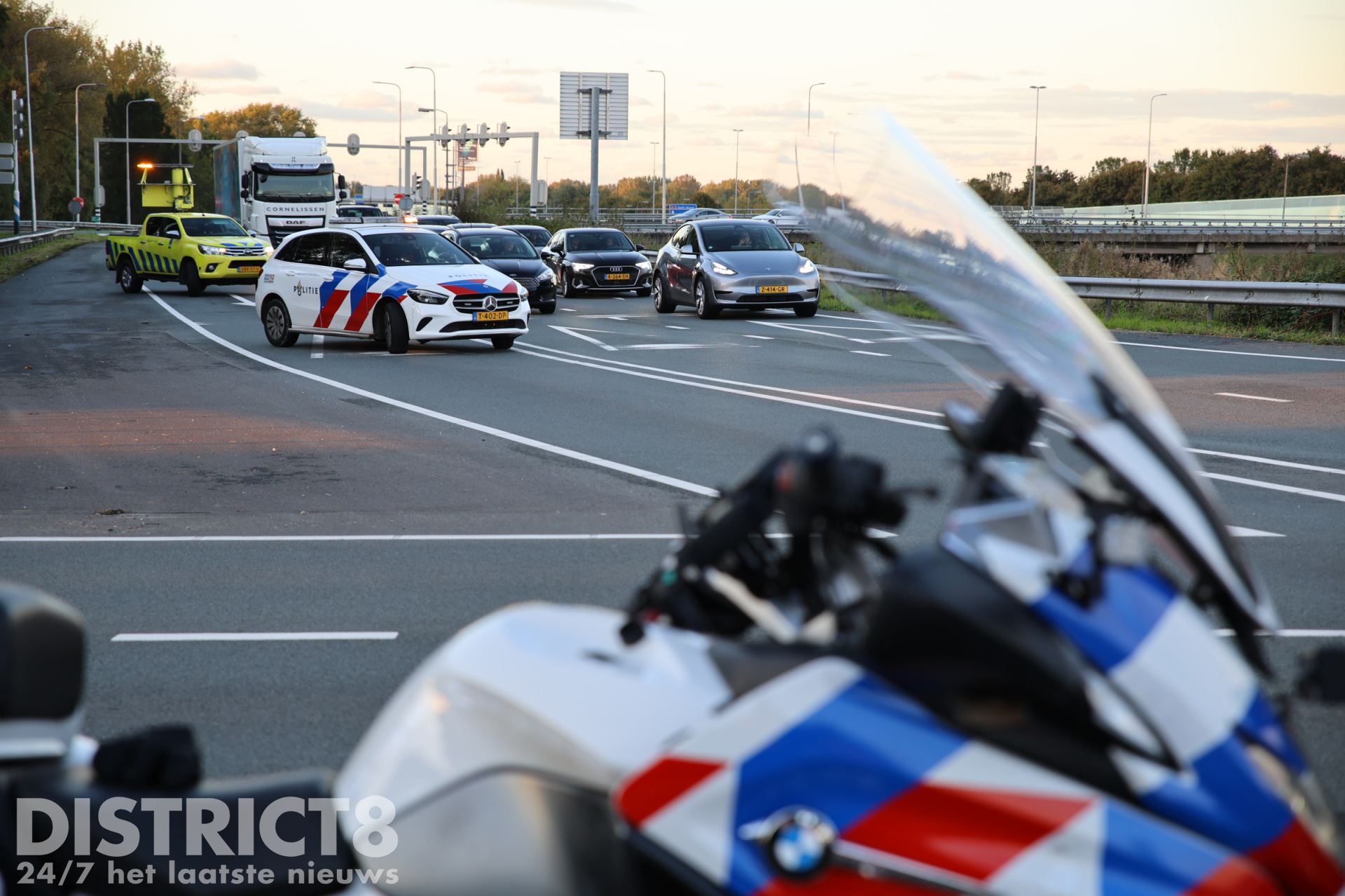 Door de afzetting loopt verkeer vanuit Delft richting de A13 enige vertraging op. Een berger heeft uiteindelijk de personenauto afgevoerd, de vrachtwagen kon op eigen kracht verder rijden.