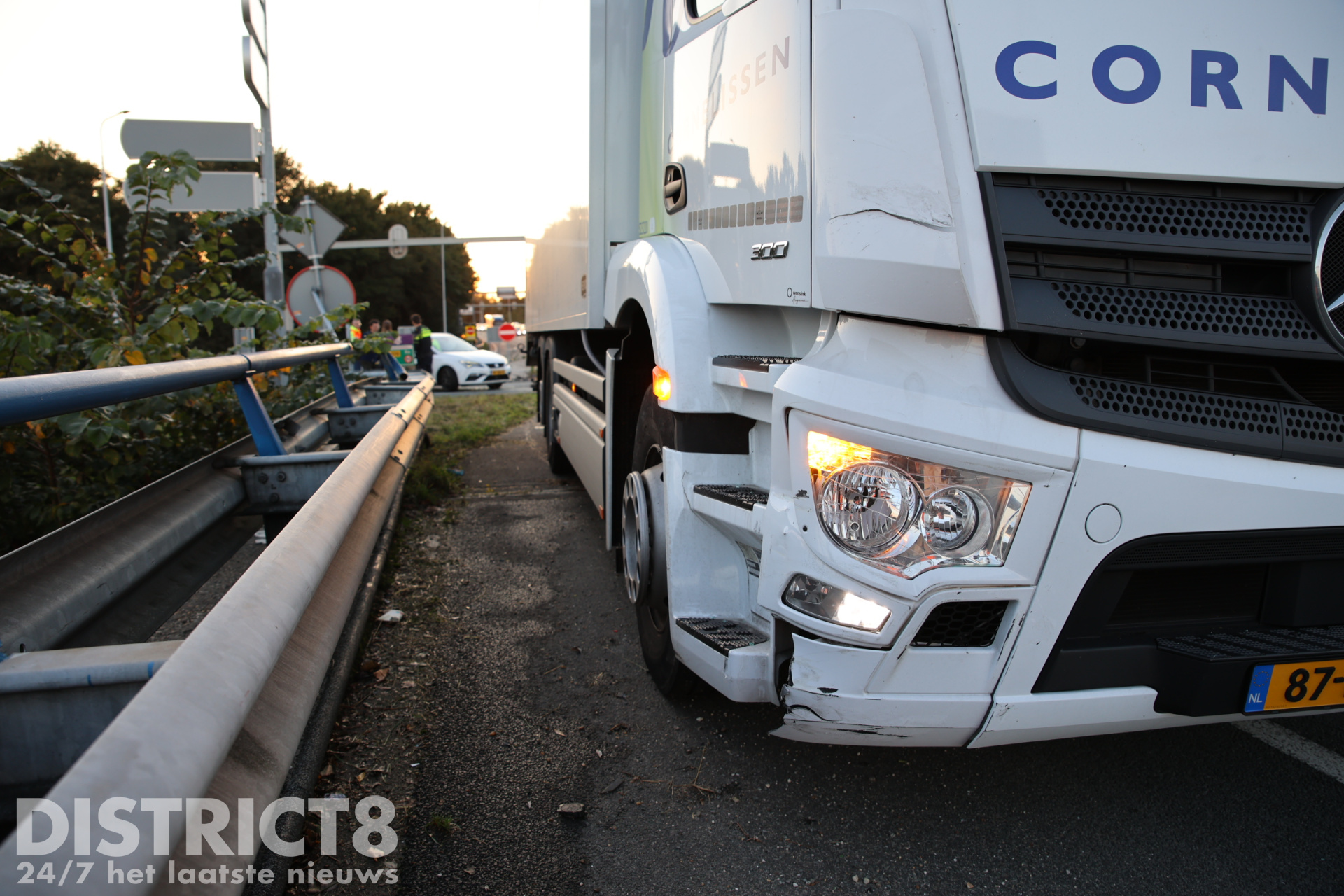 Delft – Op de het Kruithuisplein / N470 in Delft heeft vrijdagavond 11 oktober een aanrijding plaatsgevonden. Omstreeks 18:20 botste een auto en een vrachtwagen met elkaar.