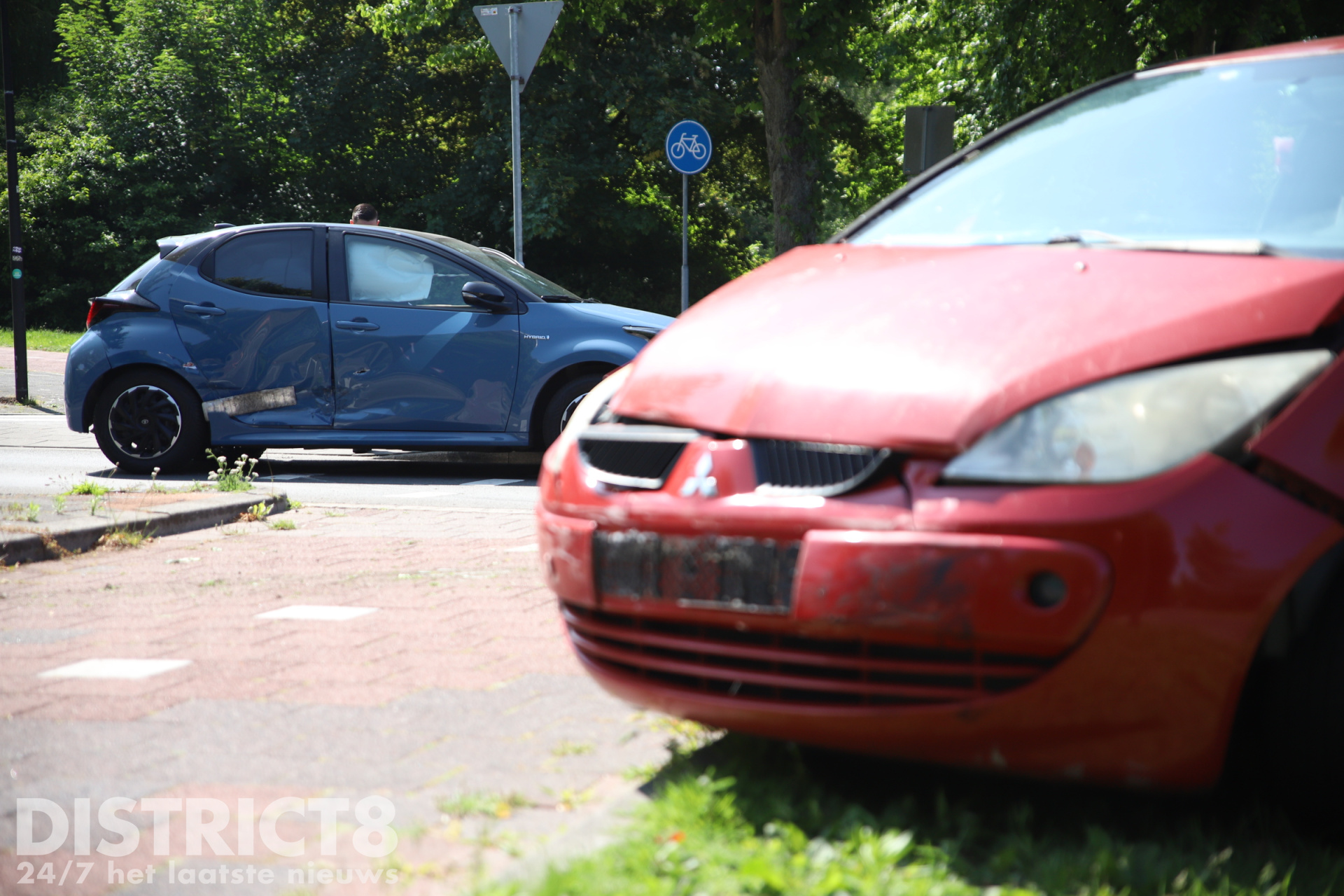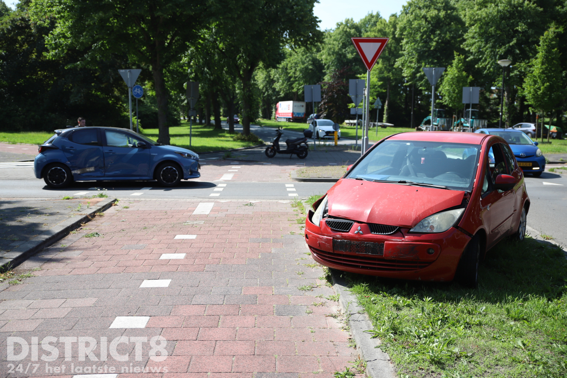 Twee personenautos kwam op de kruising in botsing met elkaar, nadat de bestuurster van de rode auto geen voorrang verleende. Zij verklaarde aan de politie dat zij stilstond voor de haaientanden, gekeken had en toen ging rijden en dat zij de blauwe auto totaal niet heeft gezien.