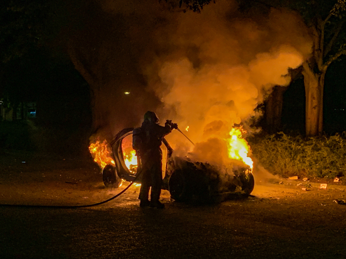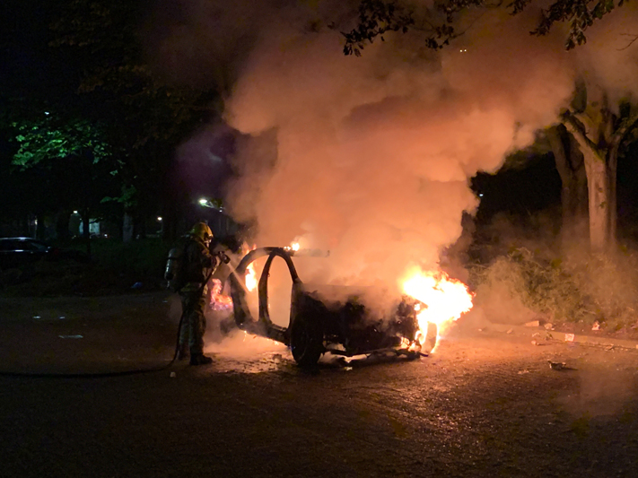 Vlaardingen – In de nacht van dinsdag op woensdag is op de Floris de Vijfdelaan een auto compleet verwoest door brand. Er was voor de brandweer geen redden meer aan. Bij aankomst van de tankautospuit stond de auto al volledig in brand. Het vuur was snel geblust maar de auto is compleet verloren gegaan.