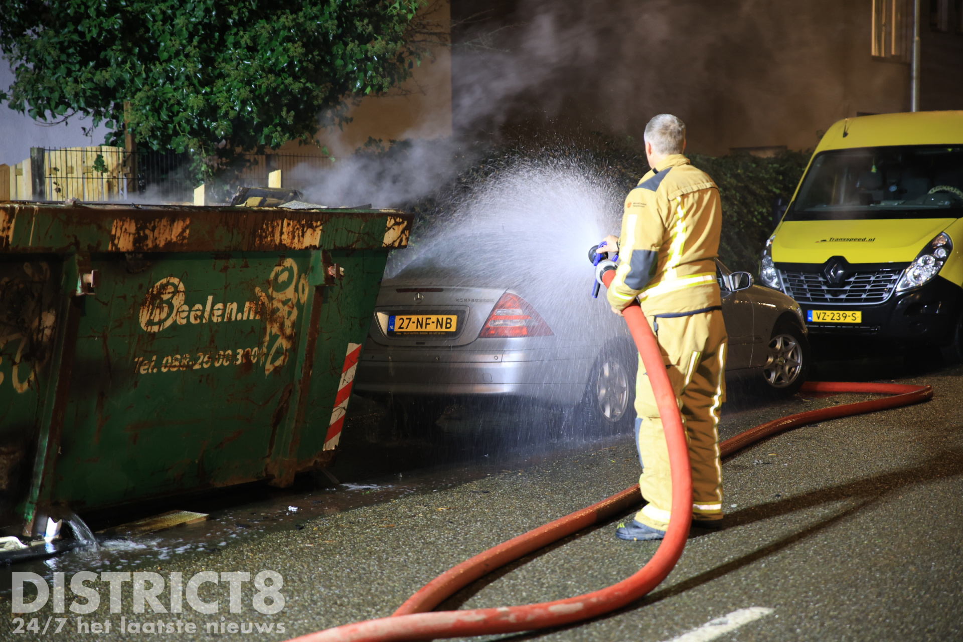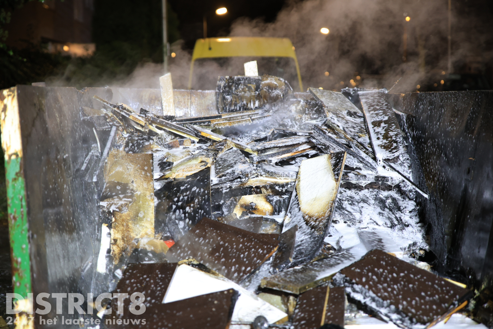Een auto die naast de afzetcontainer stond, is schoongespoten omdat er brandresten op zaten. Of er een verband is tussen de twee containerbranden is niet bekend.