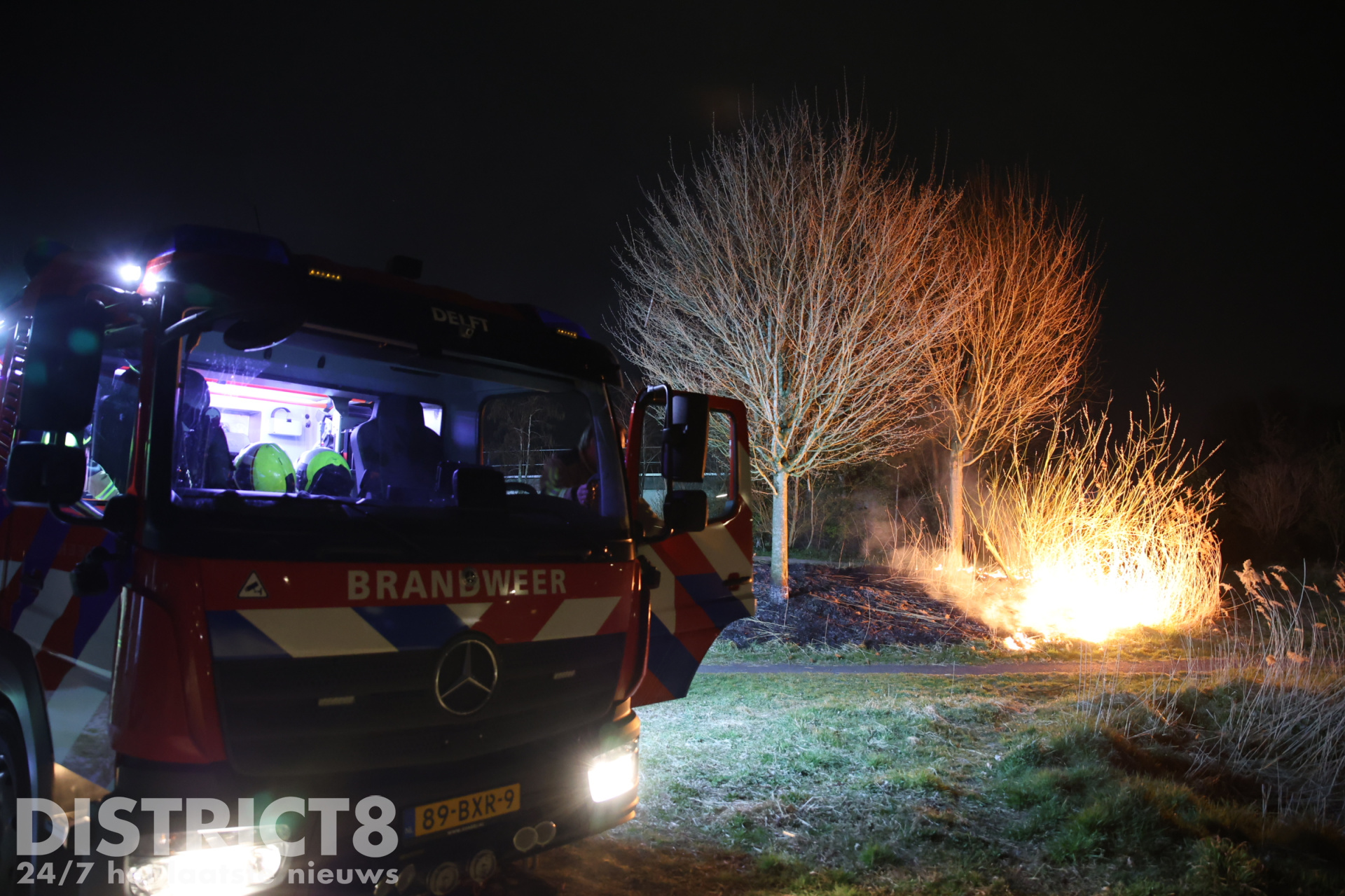 Den Hoorn – Vrijdagavond 21 maart is rond 20:30 uur opnieuw brand uitgebroken in de berm langs de Noordhoornseweg.