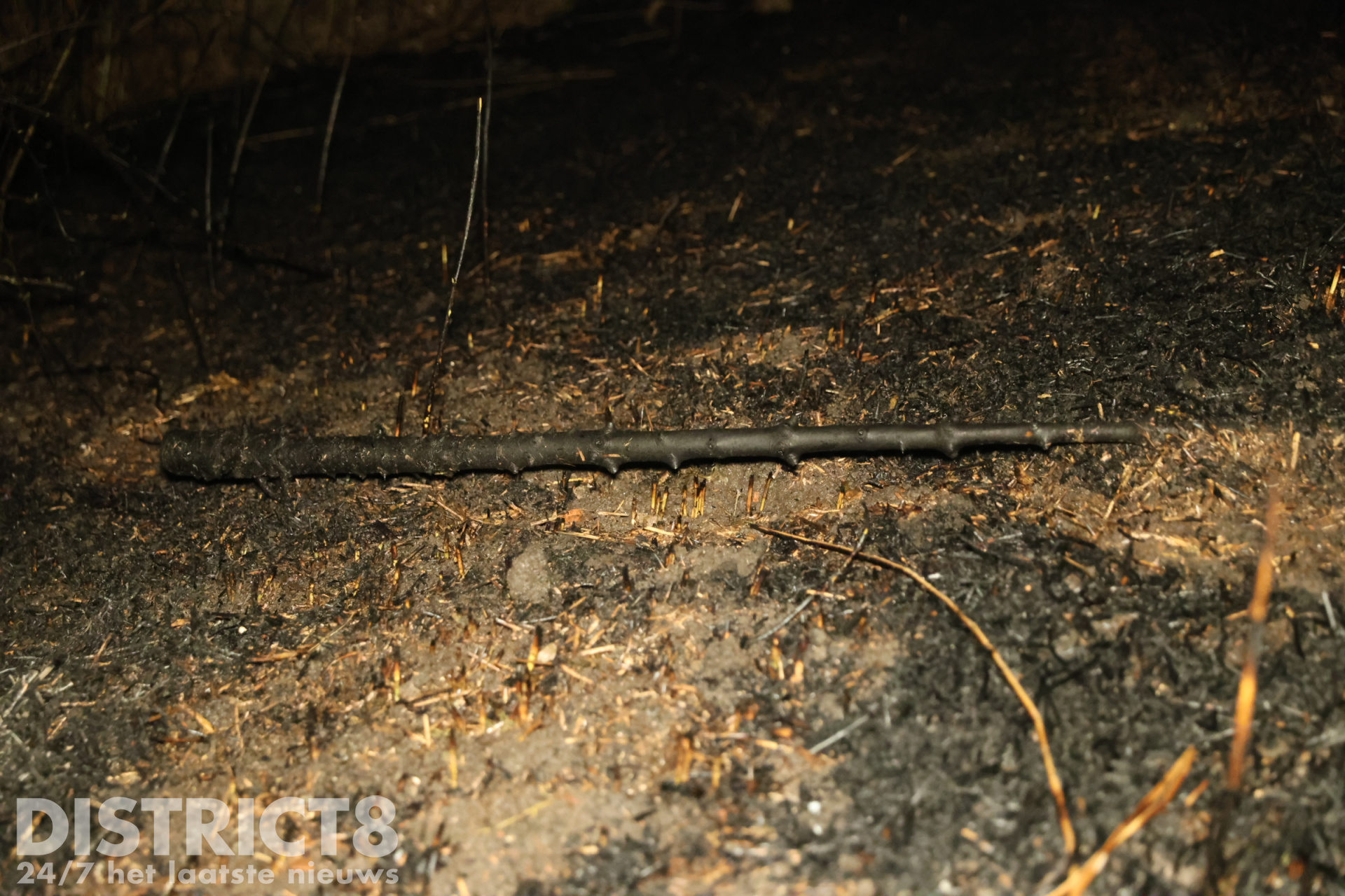 De brandweer had het vuur snel onder controle en wist de bermbrand te blussen. Een zwartgeblakerd stuk berm blijft achter als stille getuige van de brand.