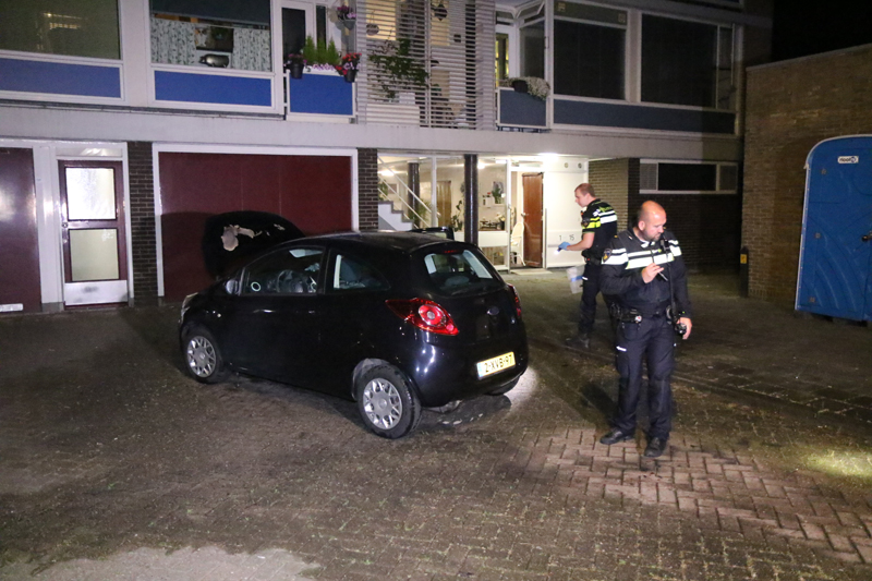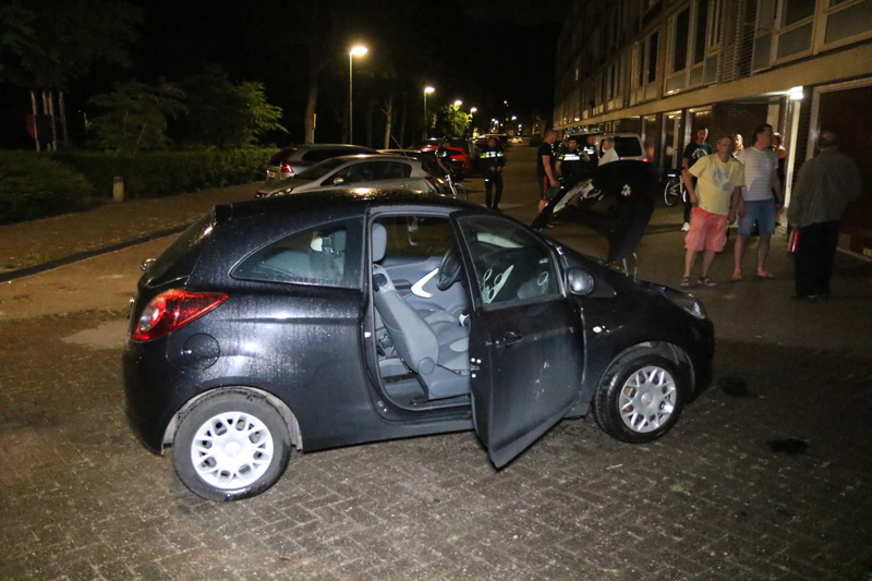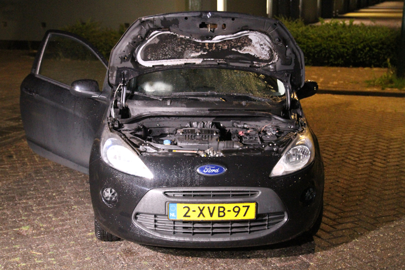 Door het snelle handelen van buurtbewoners bleef de schade aan de auto beperkt.