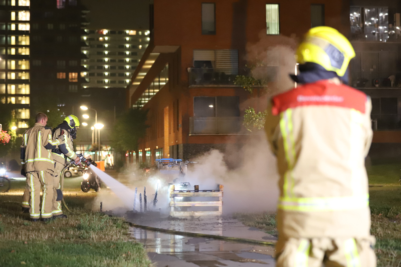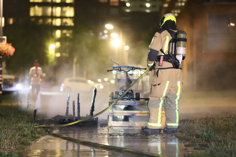 Ter plaatse bleek er opnieuw een GO Sharing scooter in de brand te staan, de brandweer kwam met spoed ter plaatse en heeft het vuur geblust.