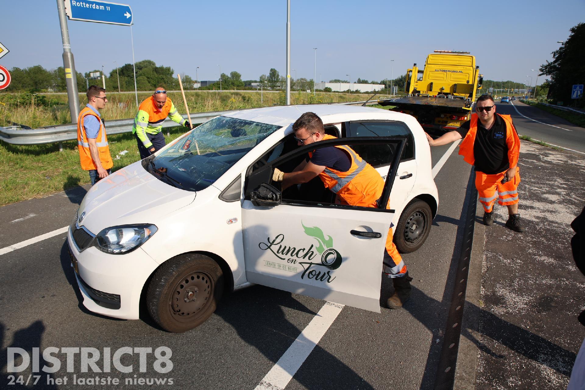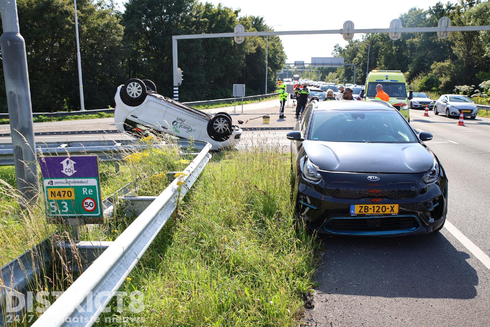 Één van de auto’s kwam hierbij op z’n kop tot stilstand. De politie, brandweer en het ambulancepersoneel werden met spoed gealarmeerd.