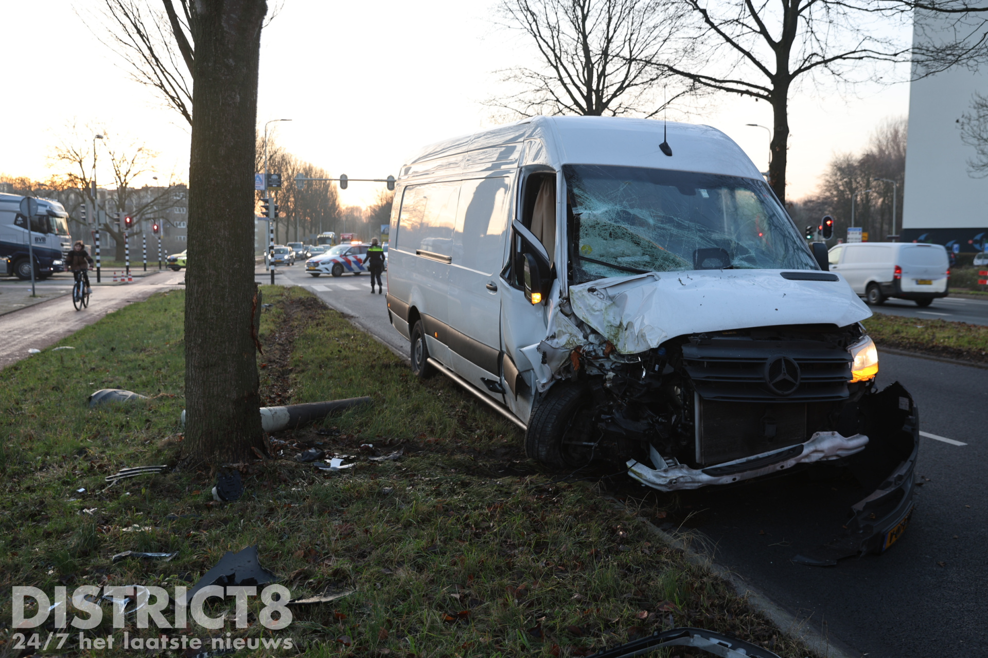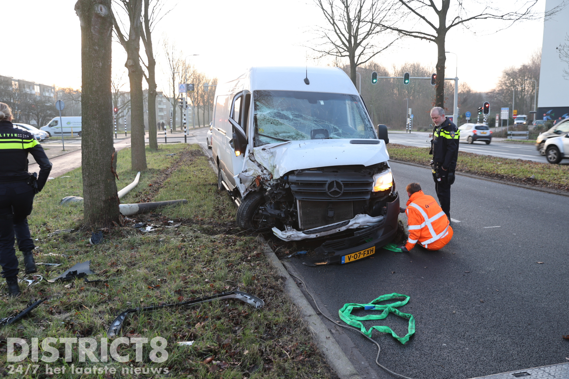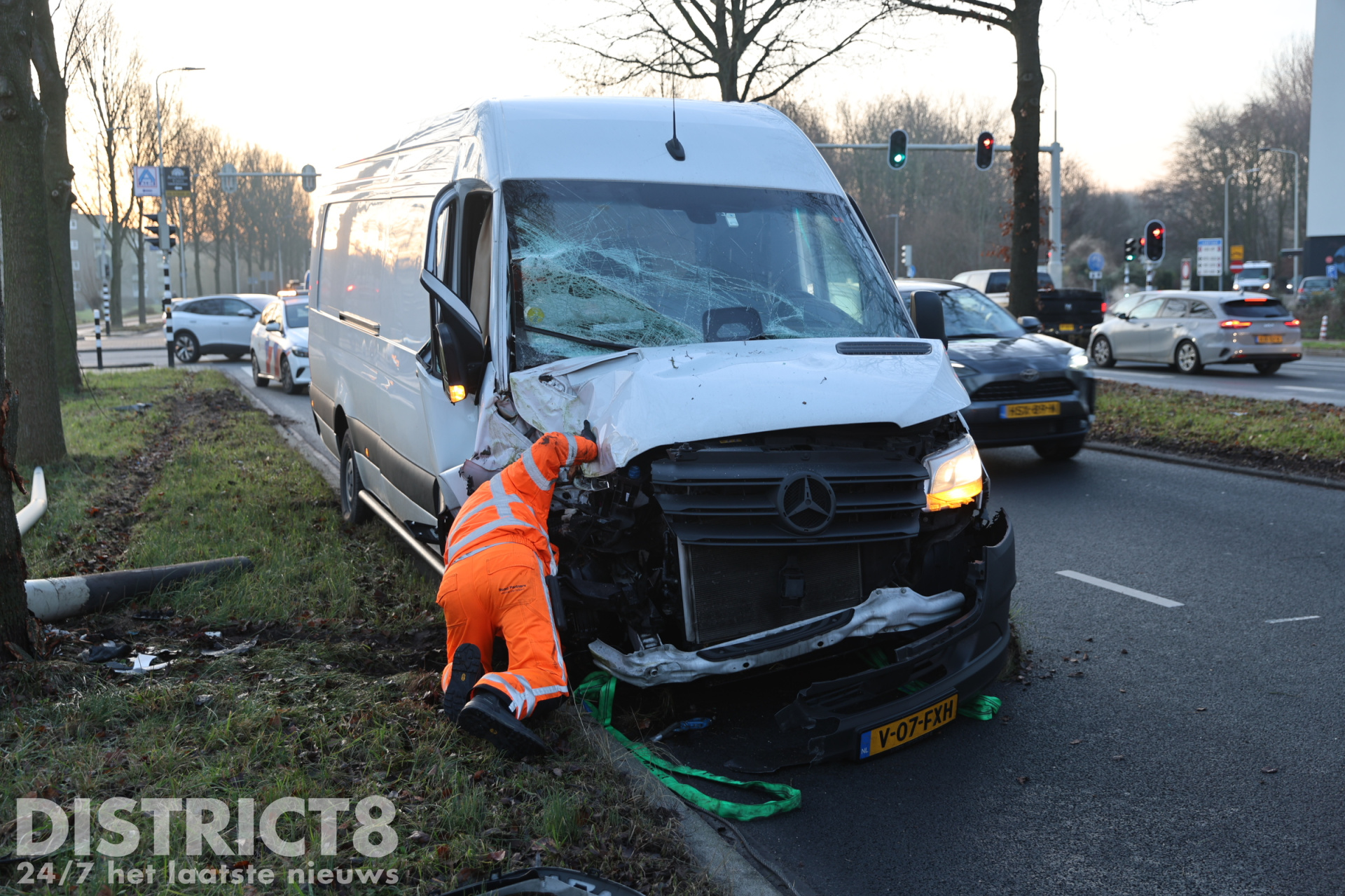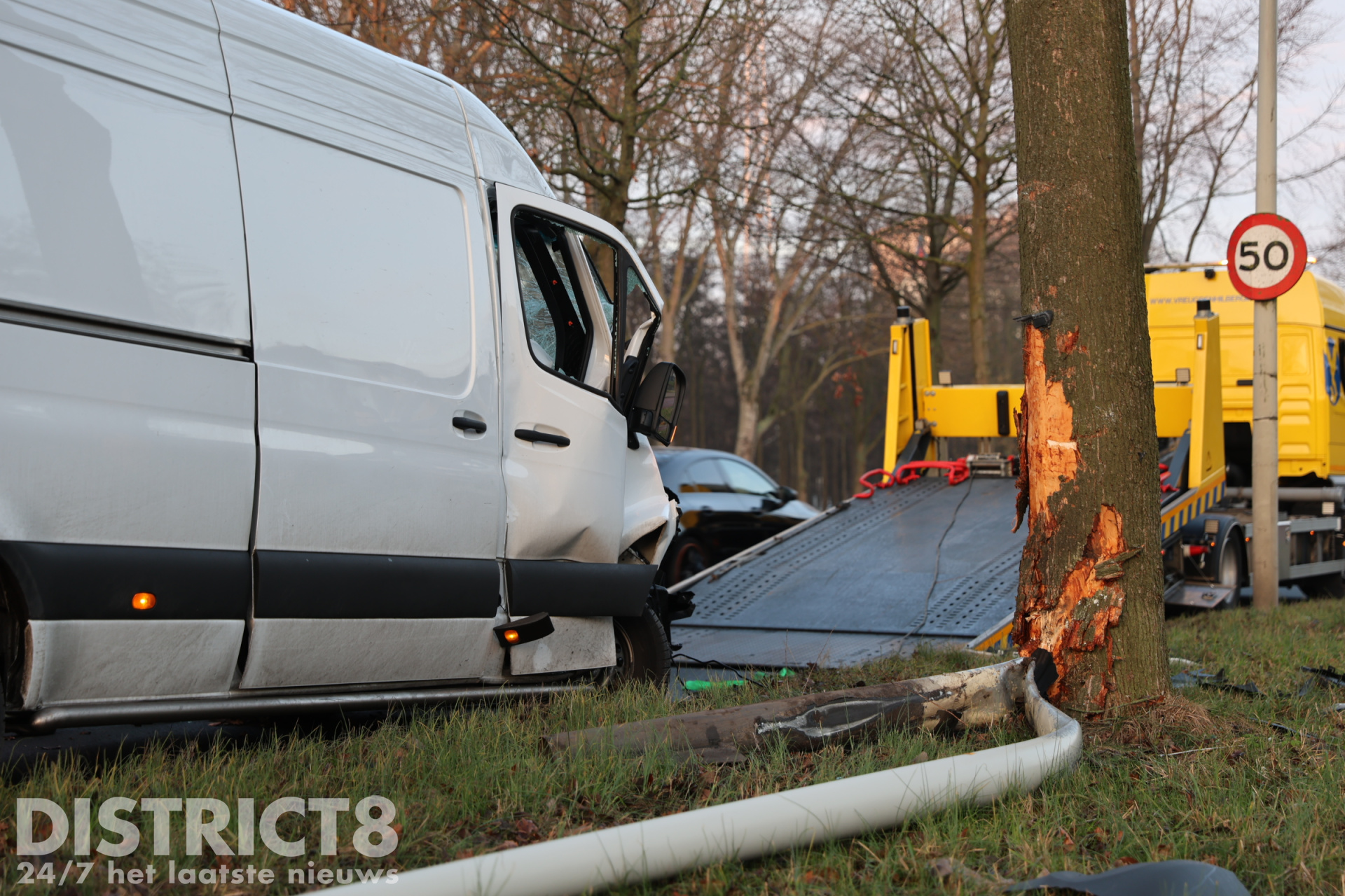 Het busje raakte flink beschadigd, maar de bestuurder kwam er zonder ernstige verwondingen vanaf.