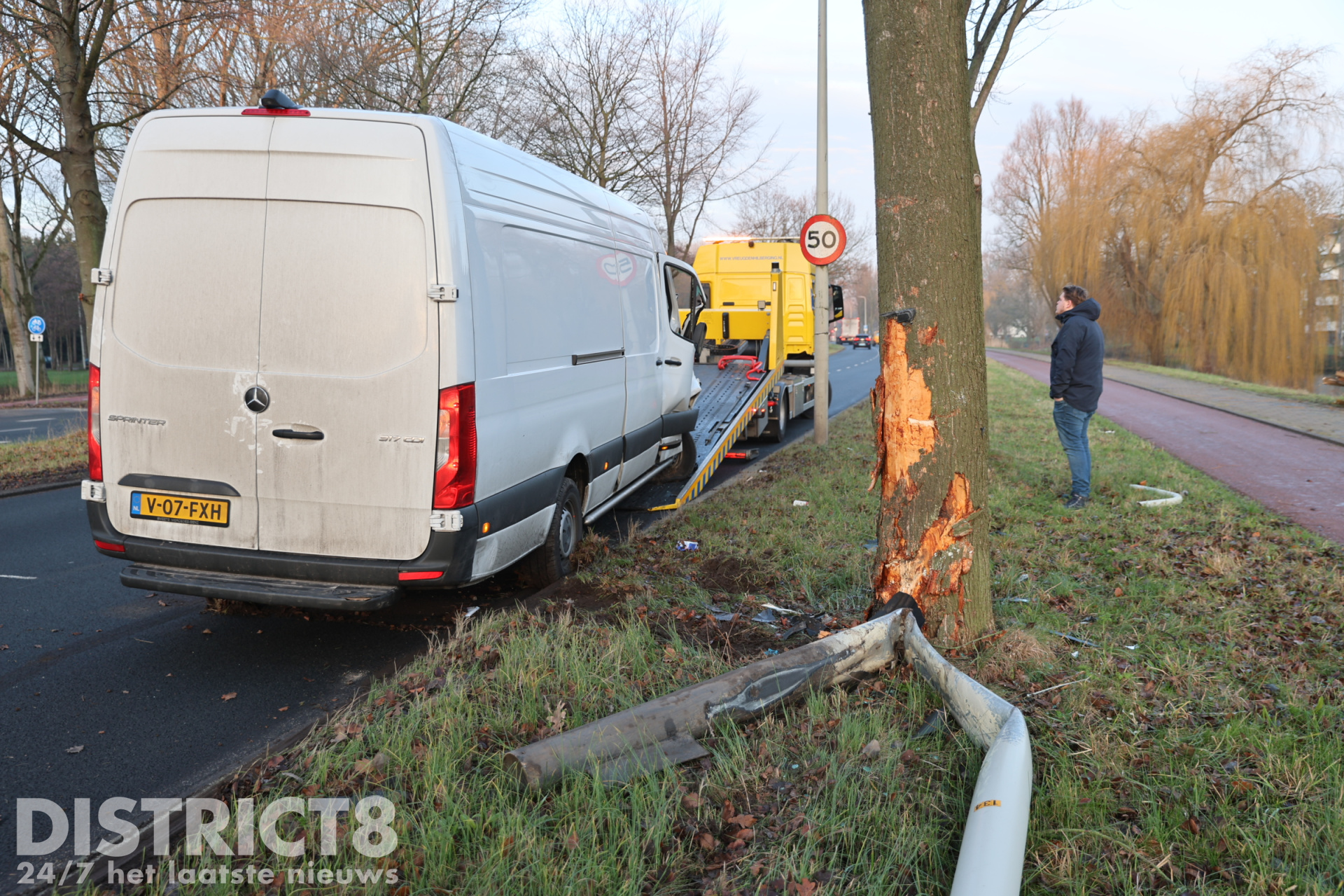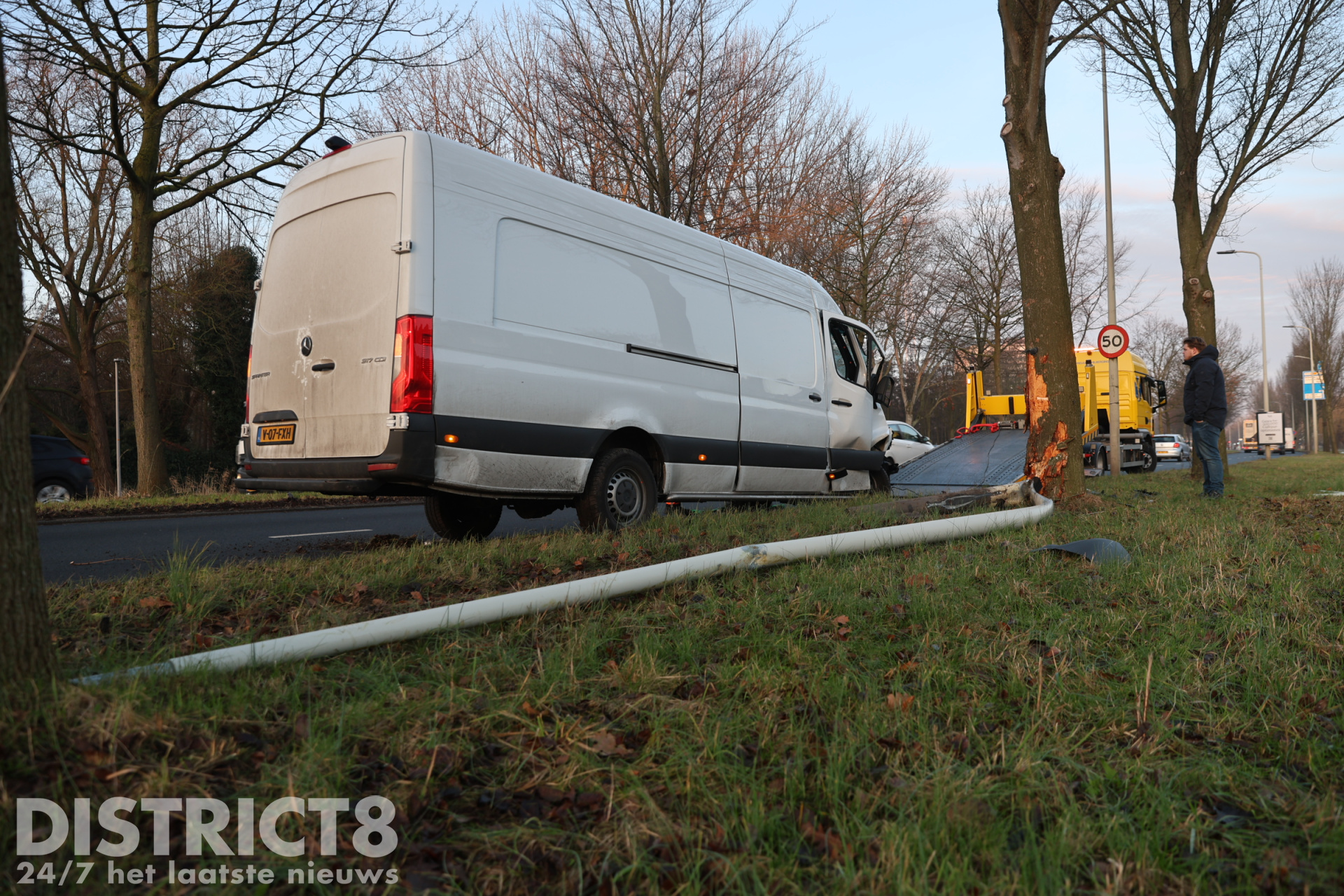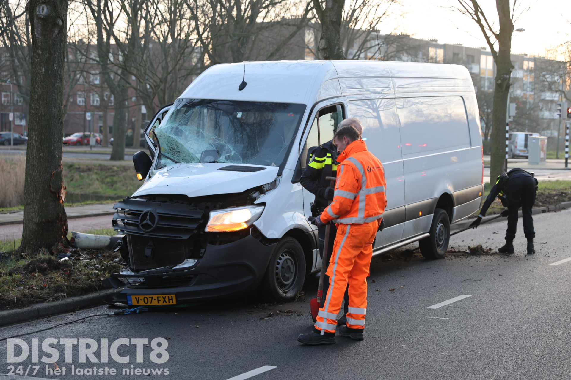 Nadat vorige week de Lozerlaan volledig was afgesloten door een flink ongeluk, was het nu enkele meters verderop weer raak. Ditmaal raakte een busje van de weg, reed een lichtmast uit de grond en knalde hard tegen een boom.
