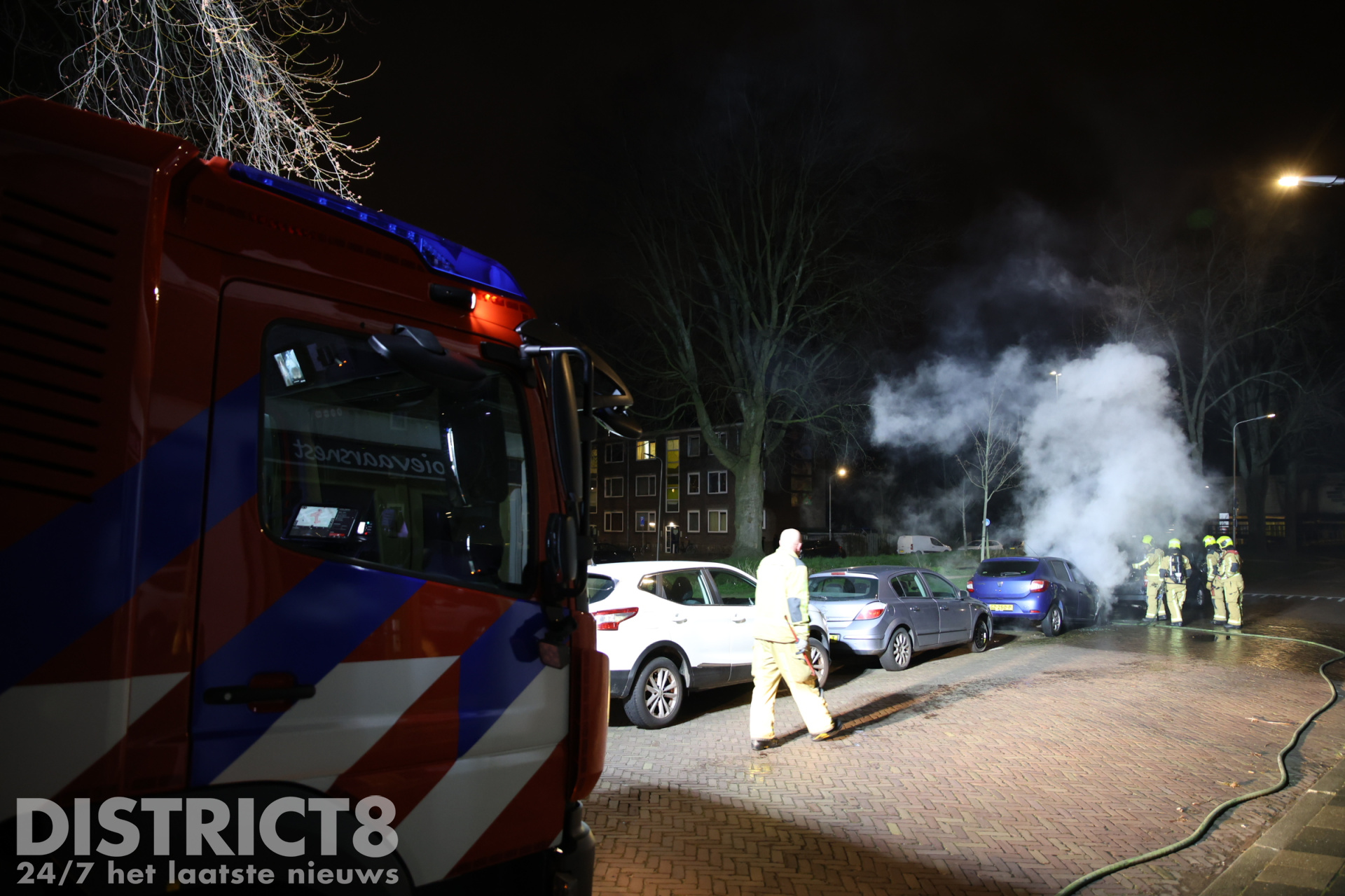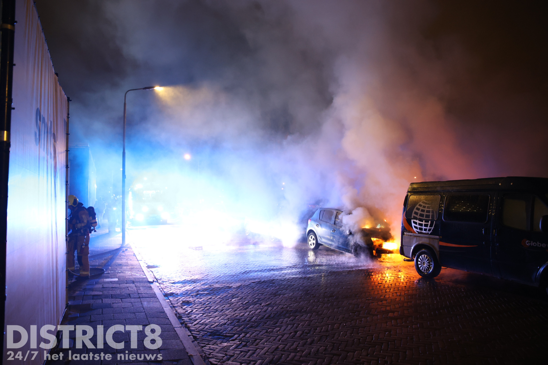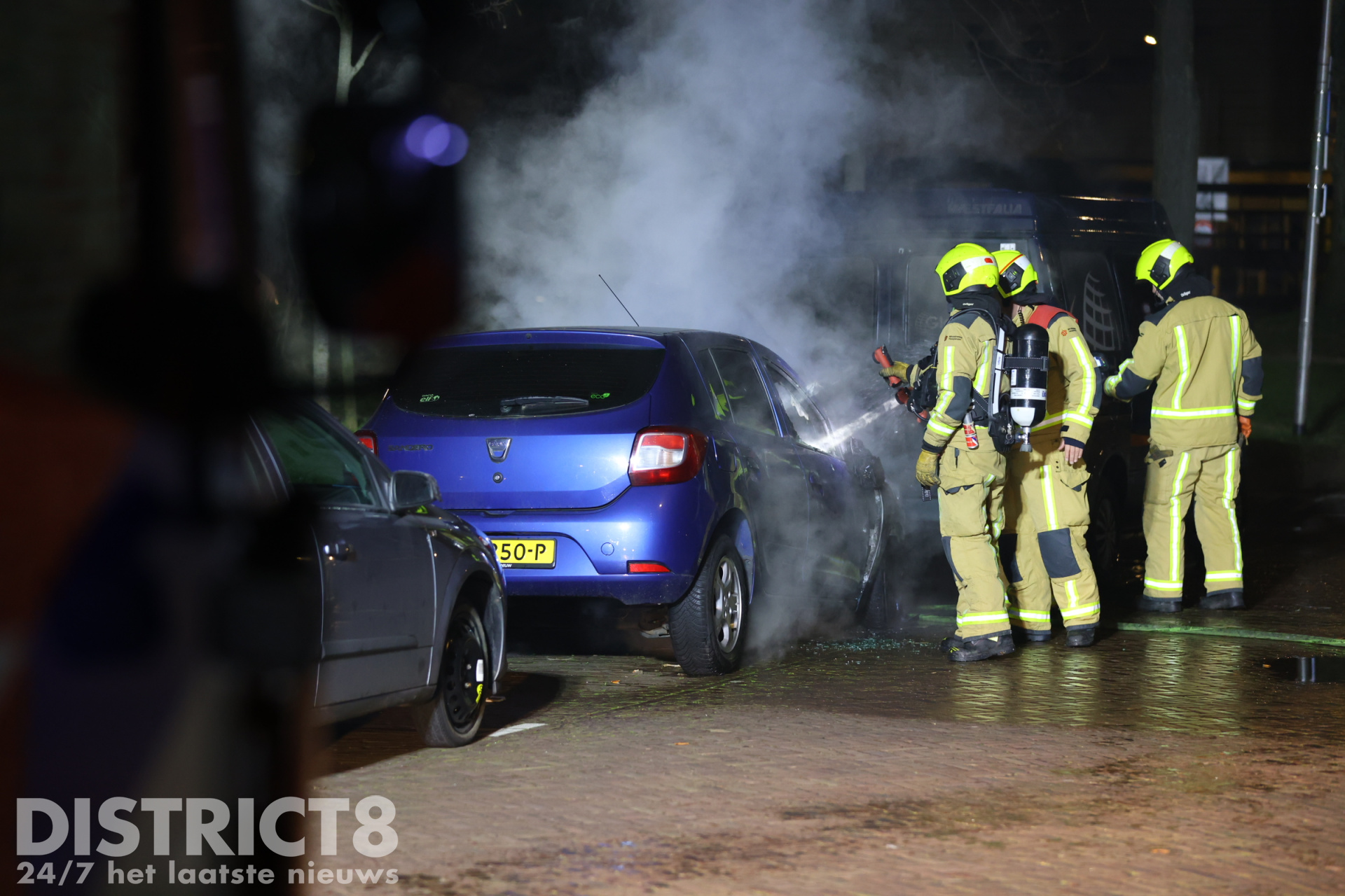 Bij aankomst van de hulpdiensten sloegen de vlammen al uit de motorkap van de wagen. Een busje dat voor de auto stond, begon door de hitte ook al snel te roken.