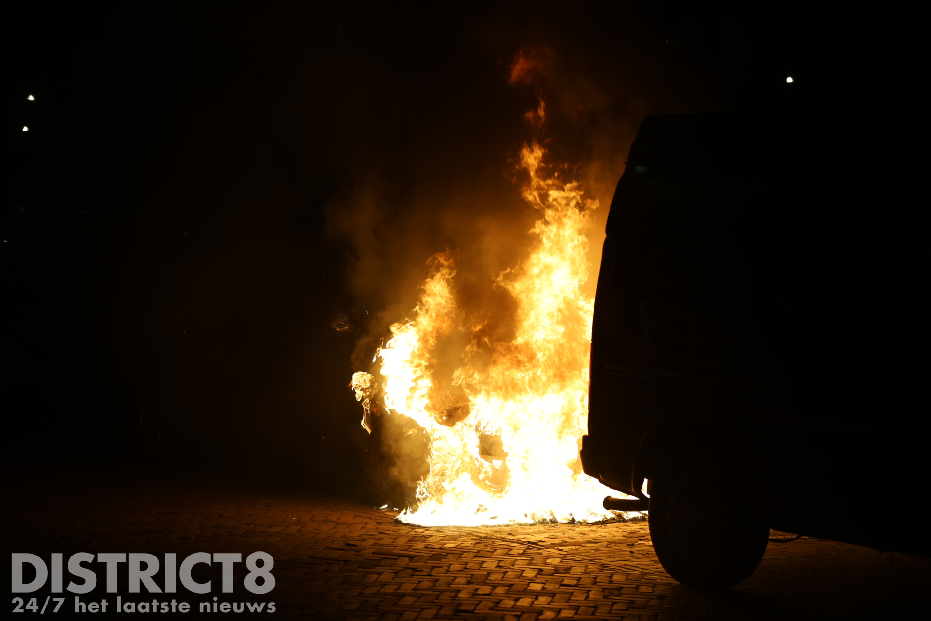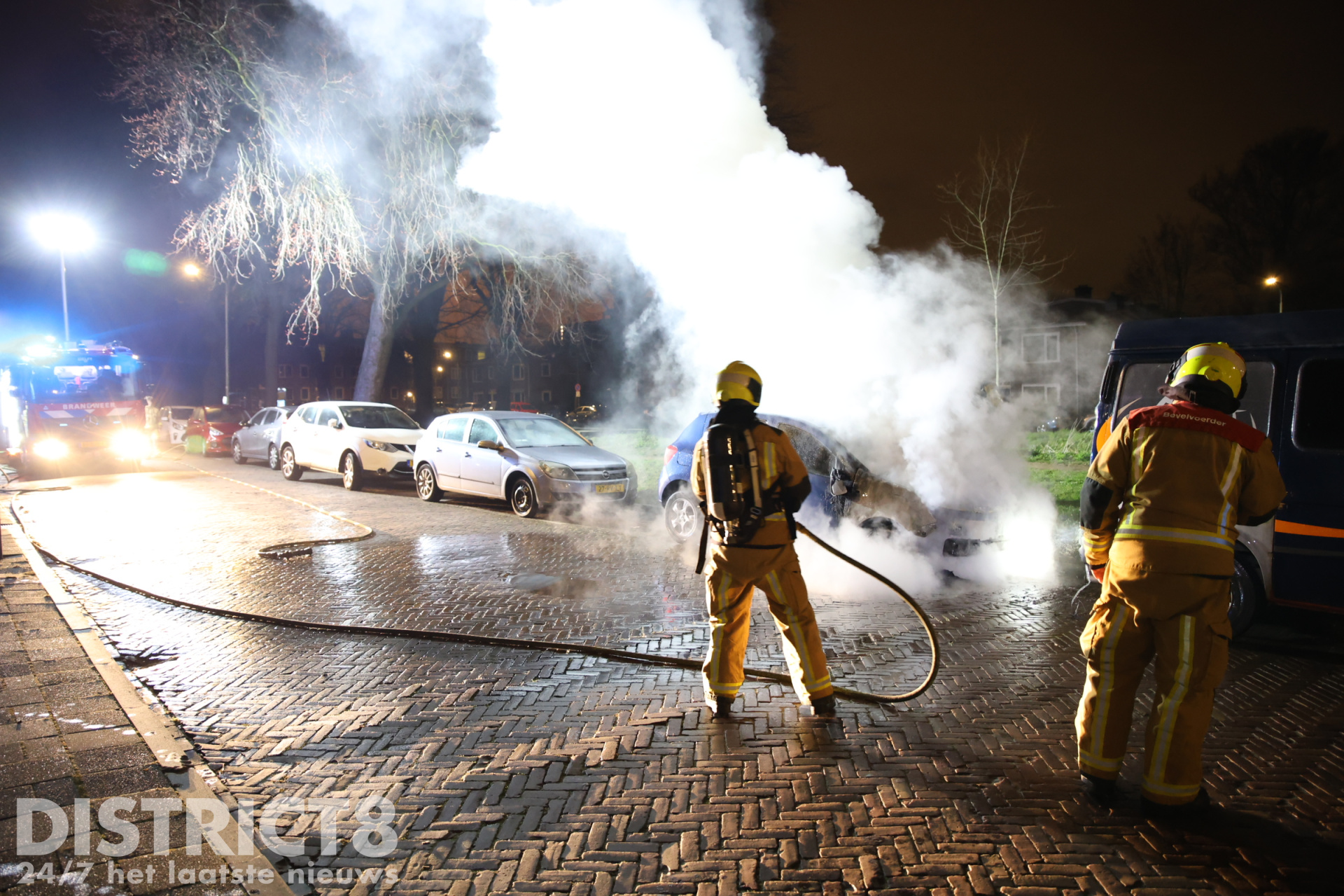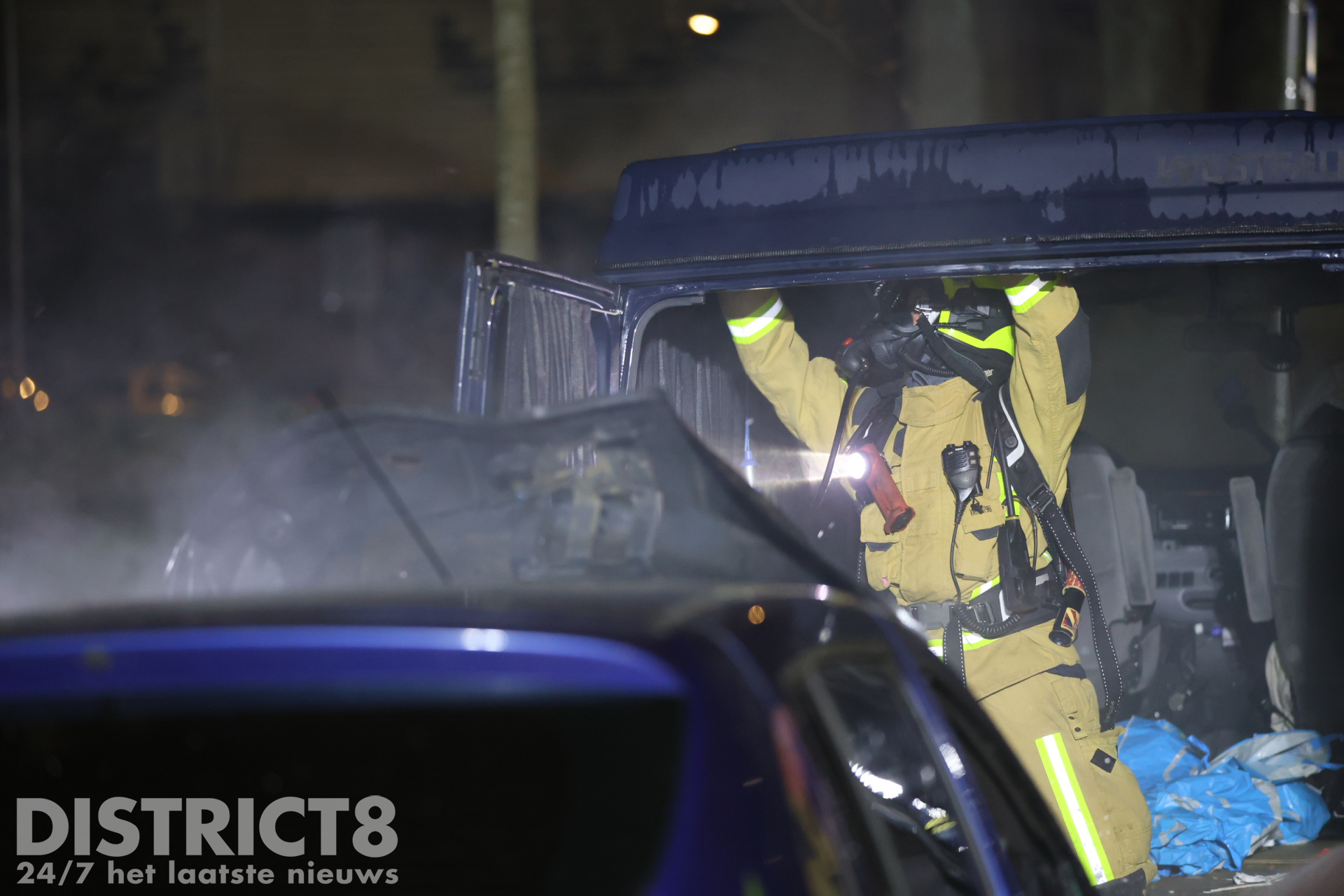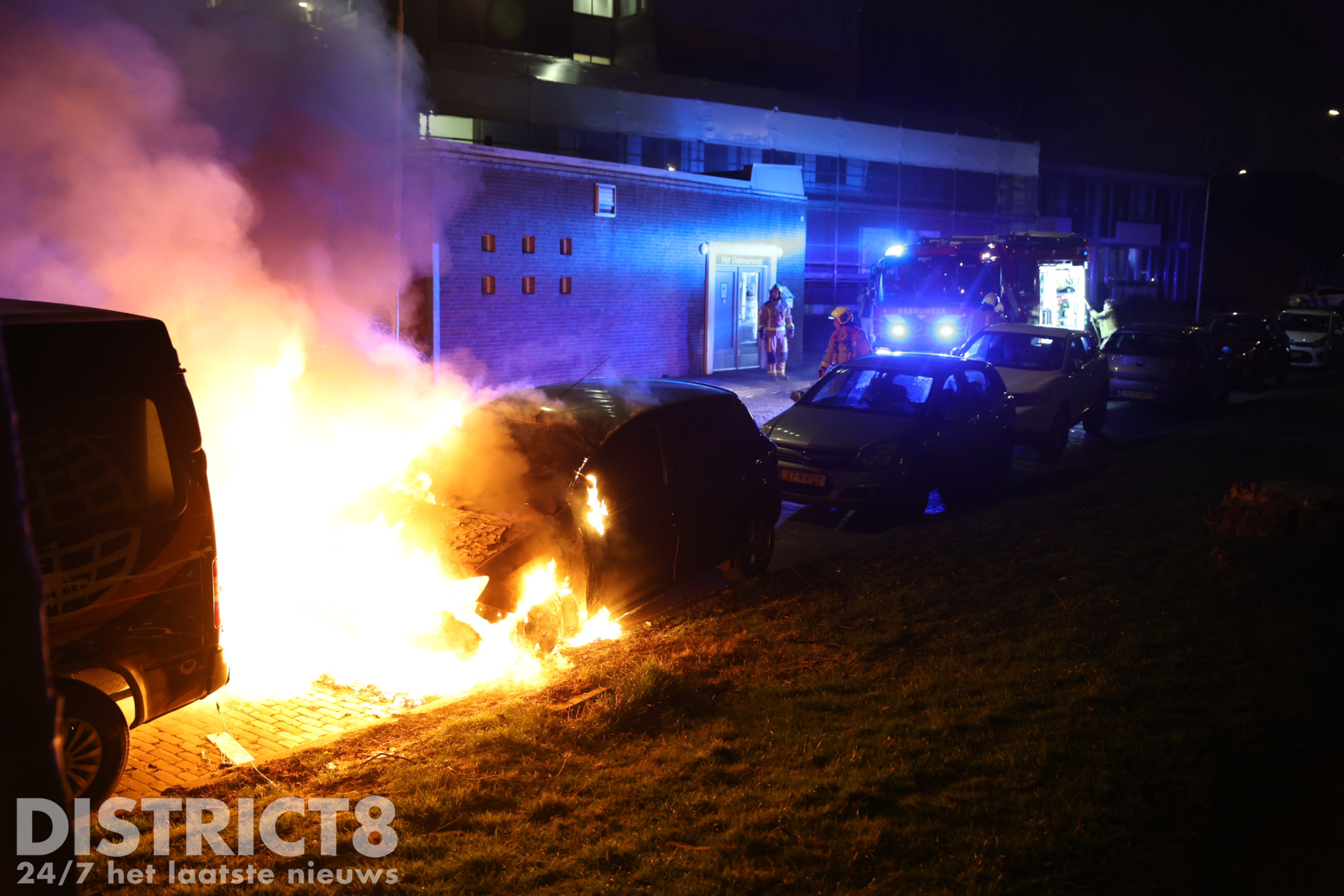 Bij aankomst van de hulpdiensten sloegen de vlammen al uit de motorkap van de wagen. Een busje dat voor de auto stond, begon door de hitte ook al snel te roken.