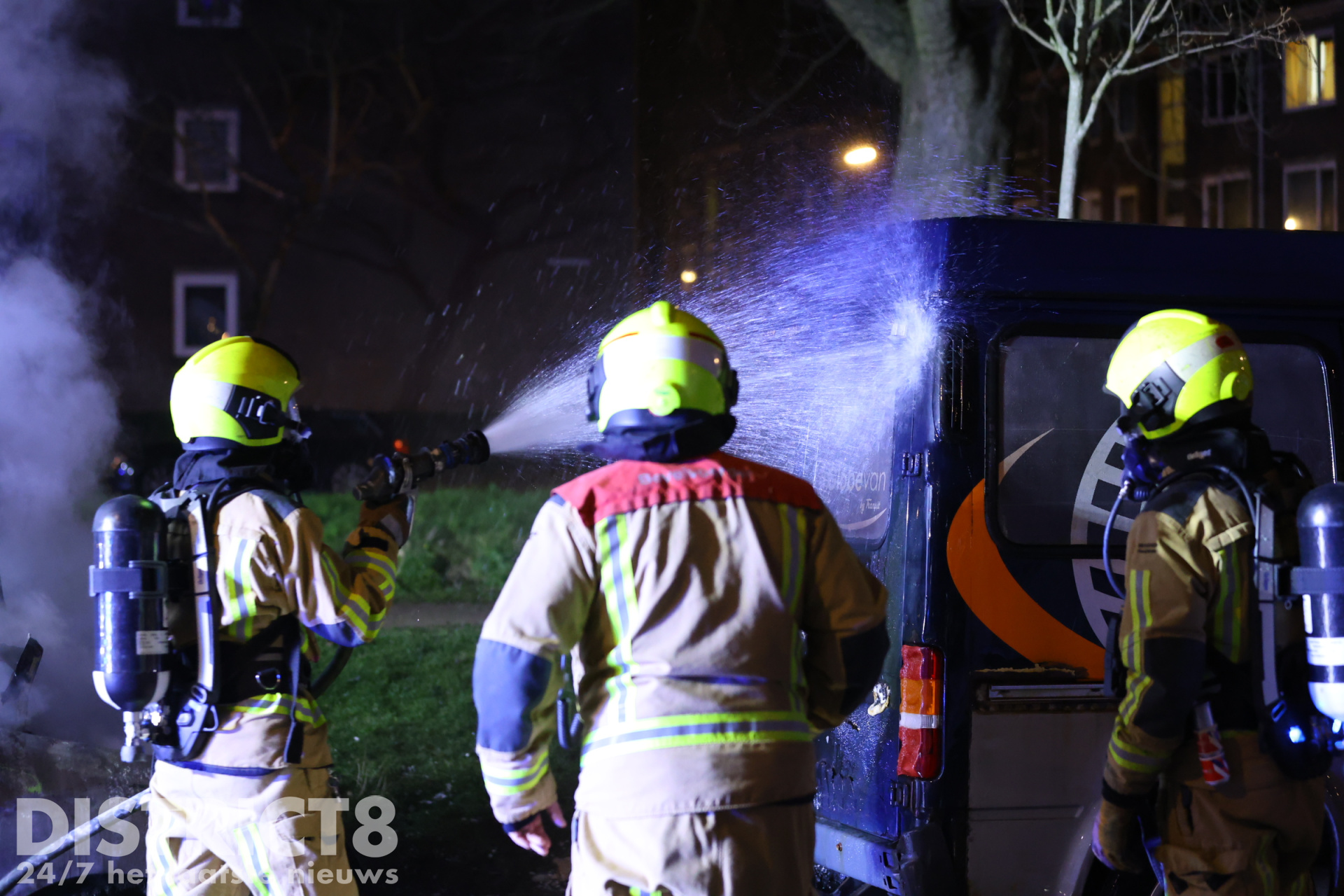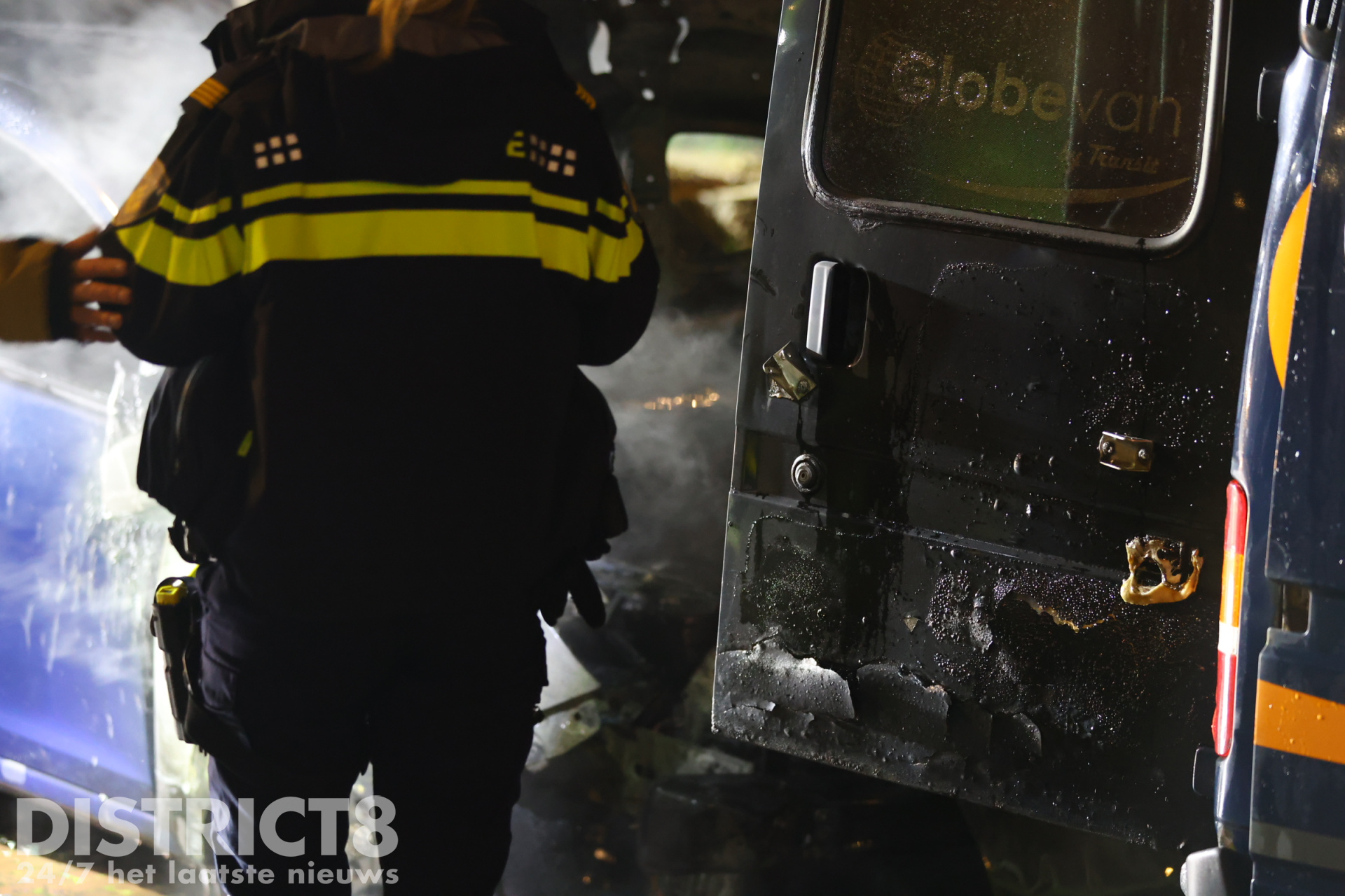 De brandweer is ter plaatse direct begonnen met het blussen van de brand. Door de snelle inzet kon worden voorkomen dat het busje ook in brand vloog. De auto daarentegen liep veel schade op.