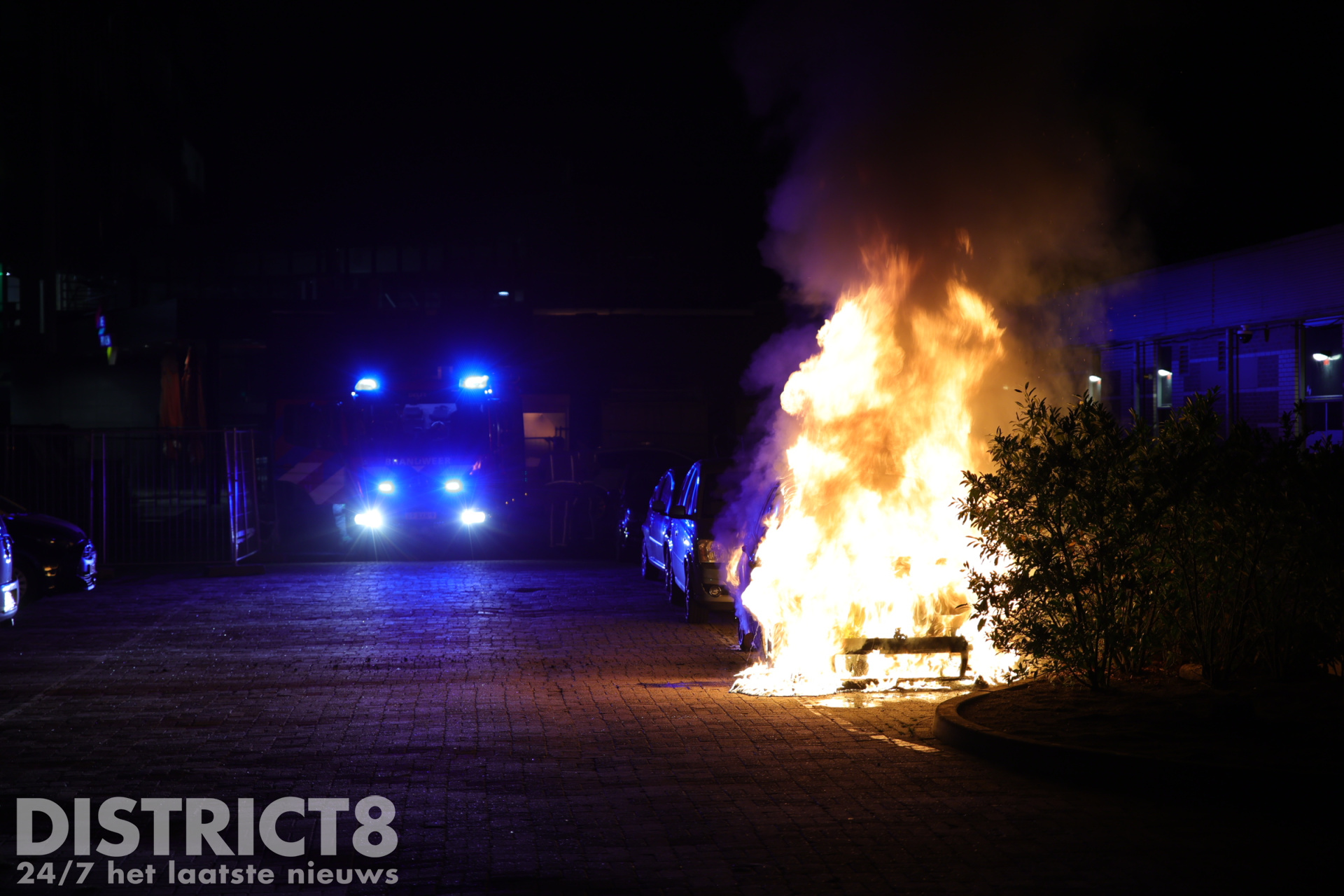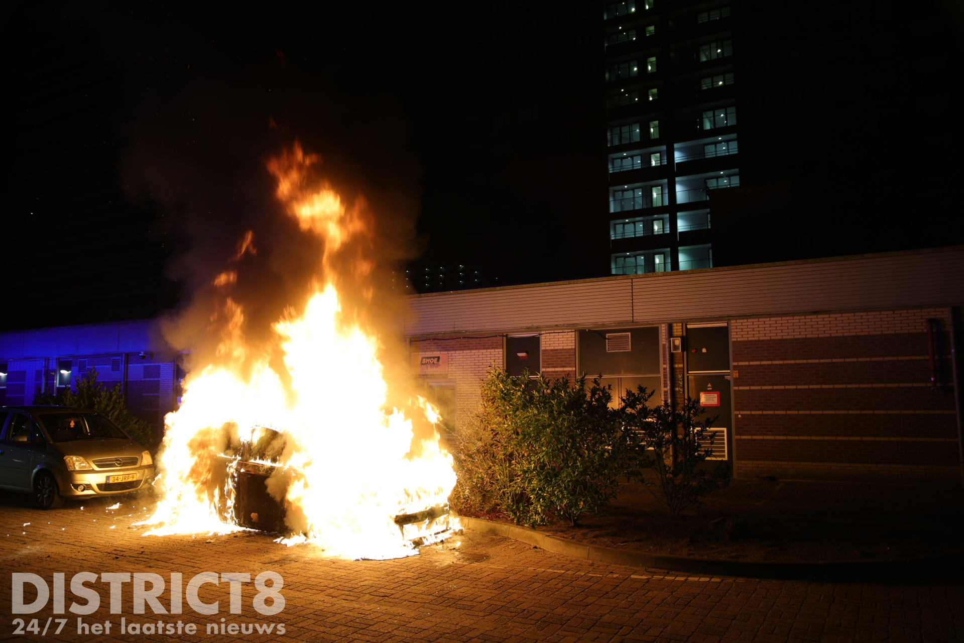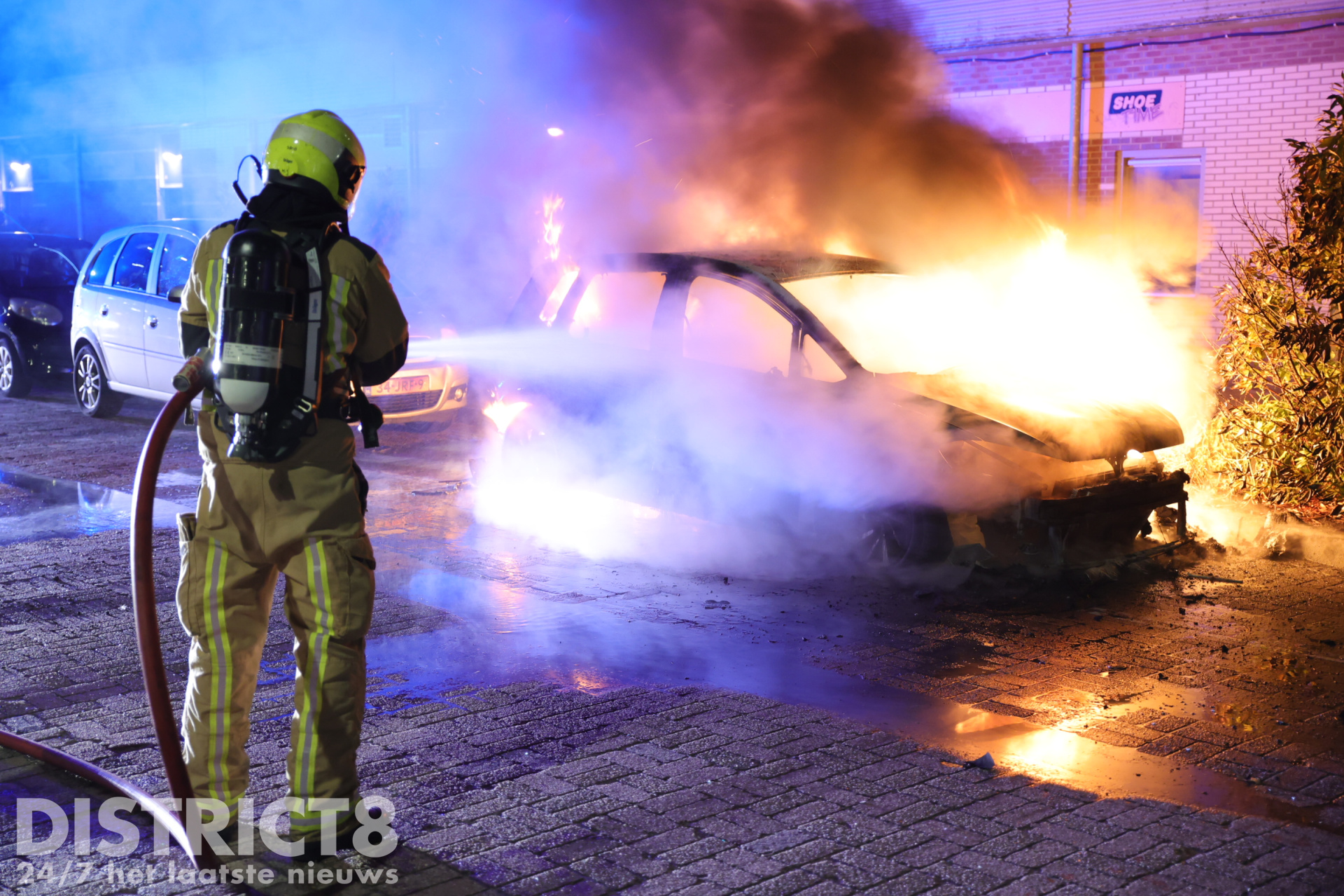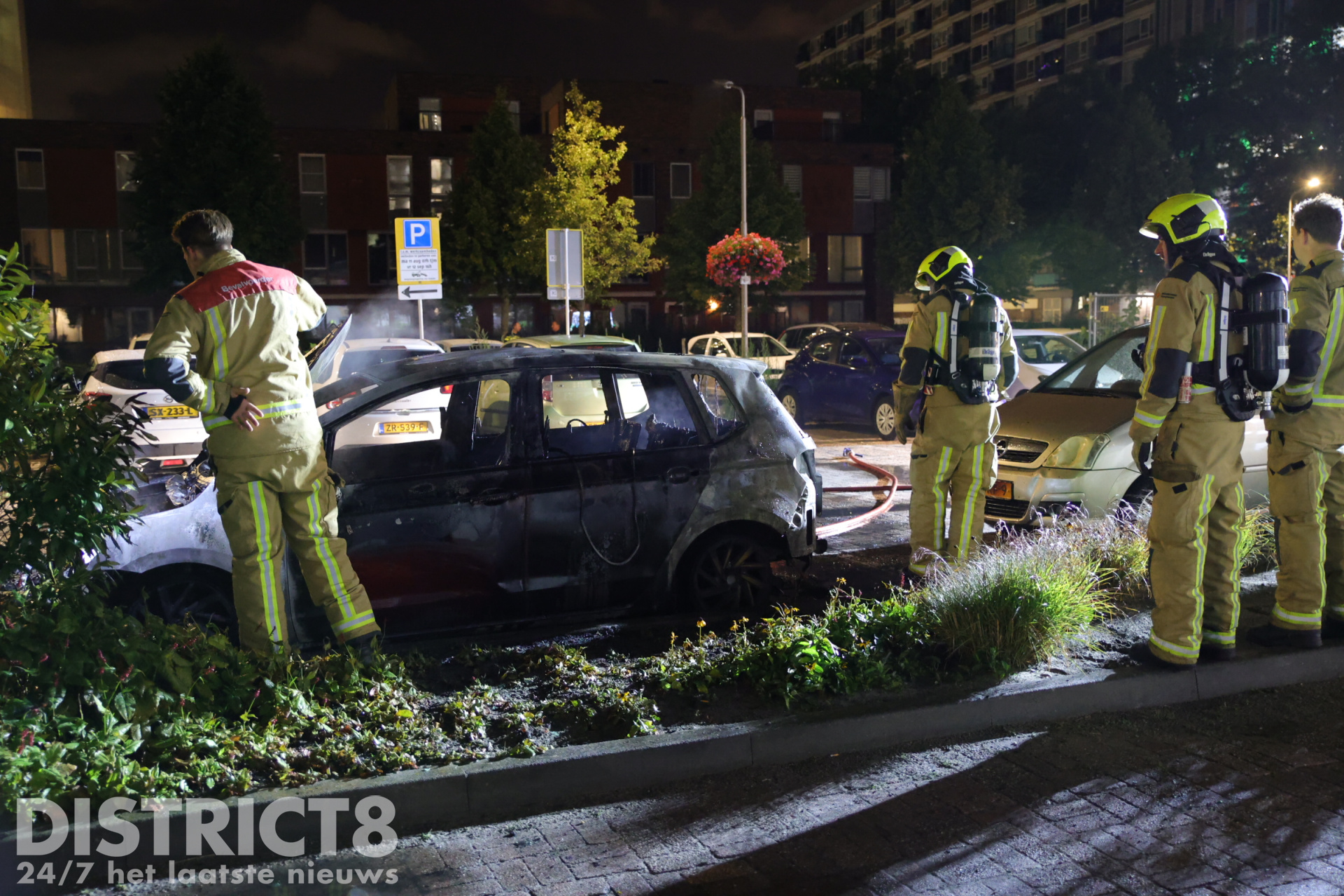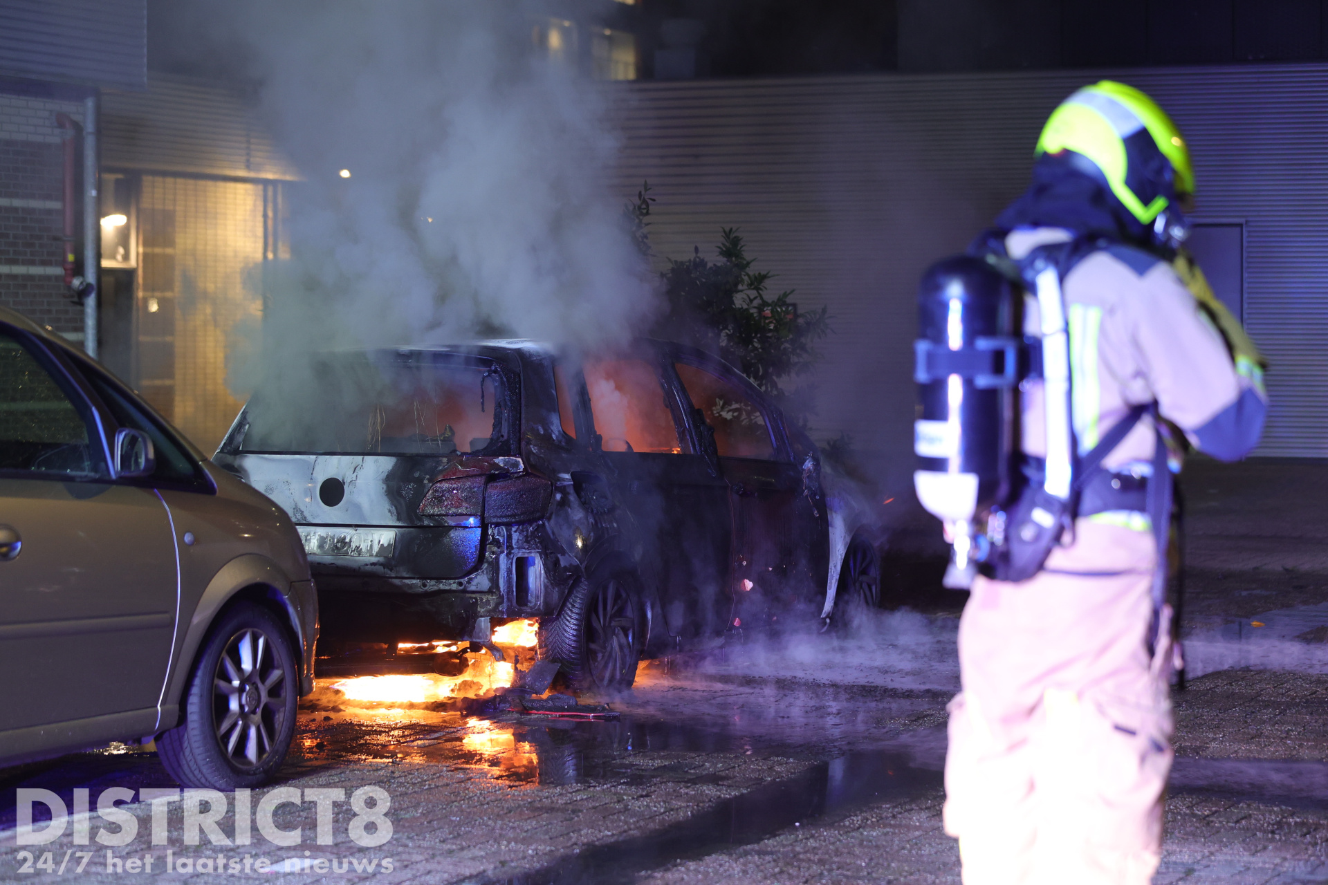 Bij aankomst stond de auto al volledig in brand. De brandweer is direct begonnen met het blussen van de vlammen en had veel water nodig om het vuur volledig onder controle te krijgen. Ondanks de snelle inzet kon niet worden voorkomen dat een naastgelegen auto lichte brandschade opliep aan de voorzijde. De brandende auto zelf werd volledig verwoest.